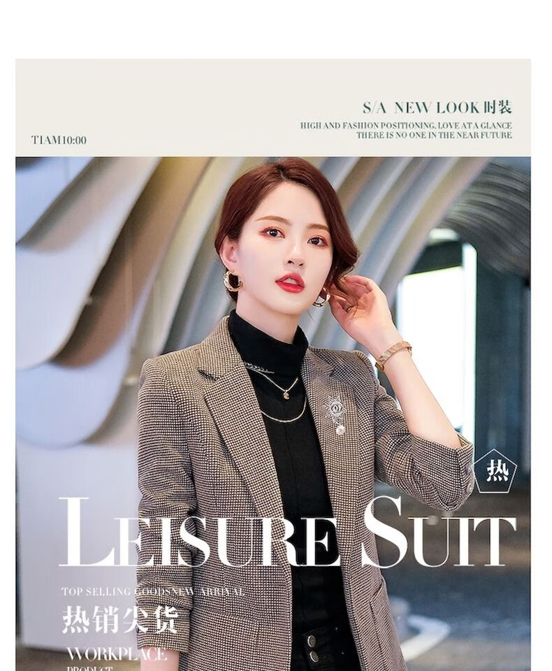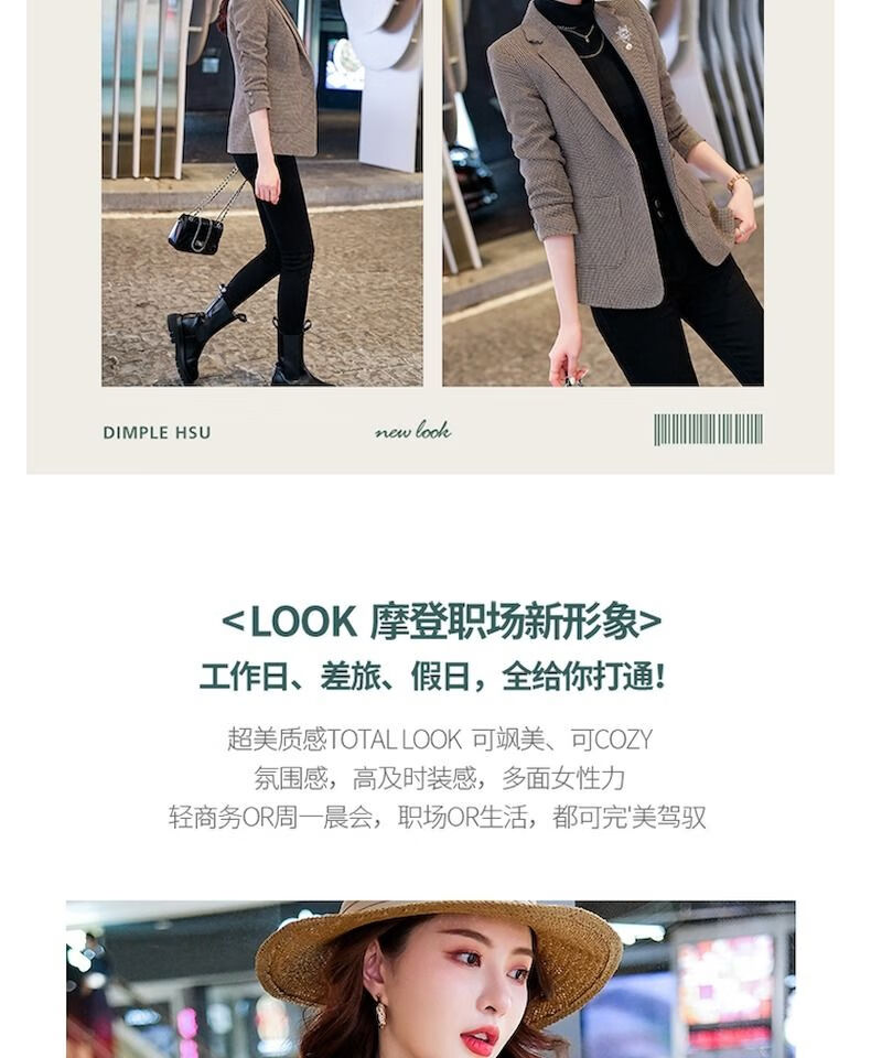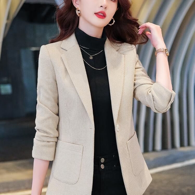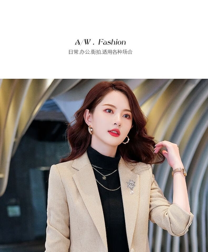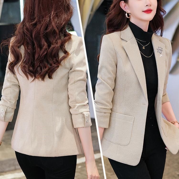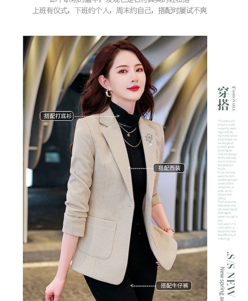Woodpecker (TUCANO) small suit jacket for women 2025 spring and autumn new high-end plaid classic houndstooth woolen suit men's suit autumn and winter coffee grid coffee grid plus cotton thickened S recommended 80-95