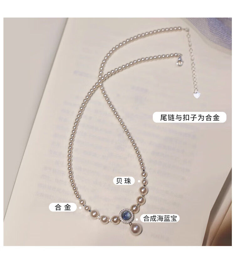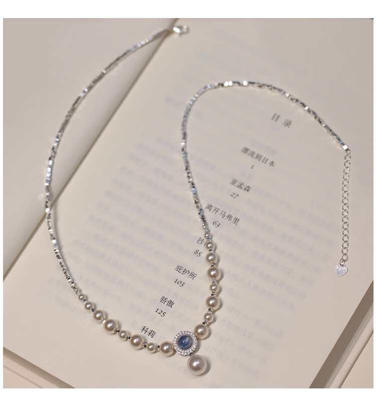 JALLOO Shijia Pearl Necklace Young Women's High-end Light Luxury Pendant Jewelry Female Birthday Gift for Girlfriend Broken Silver Shijia Beads Pearl Aquamarine Necklace