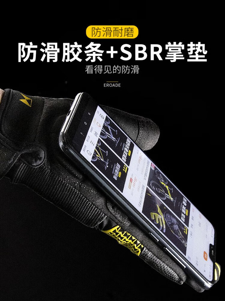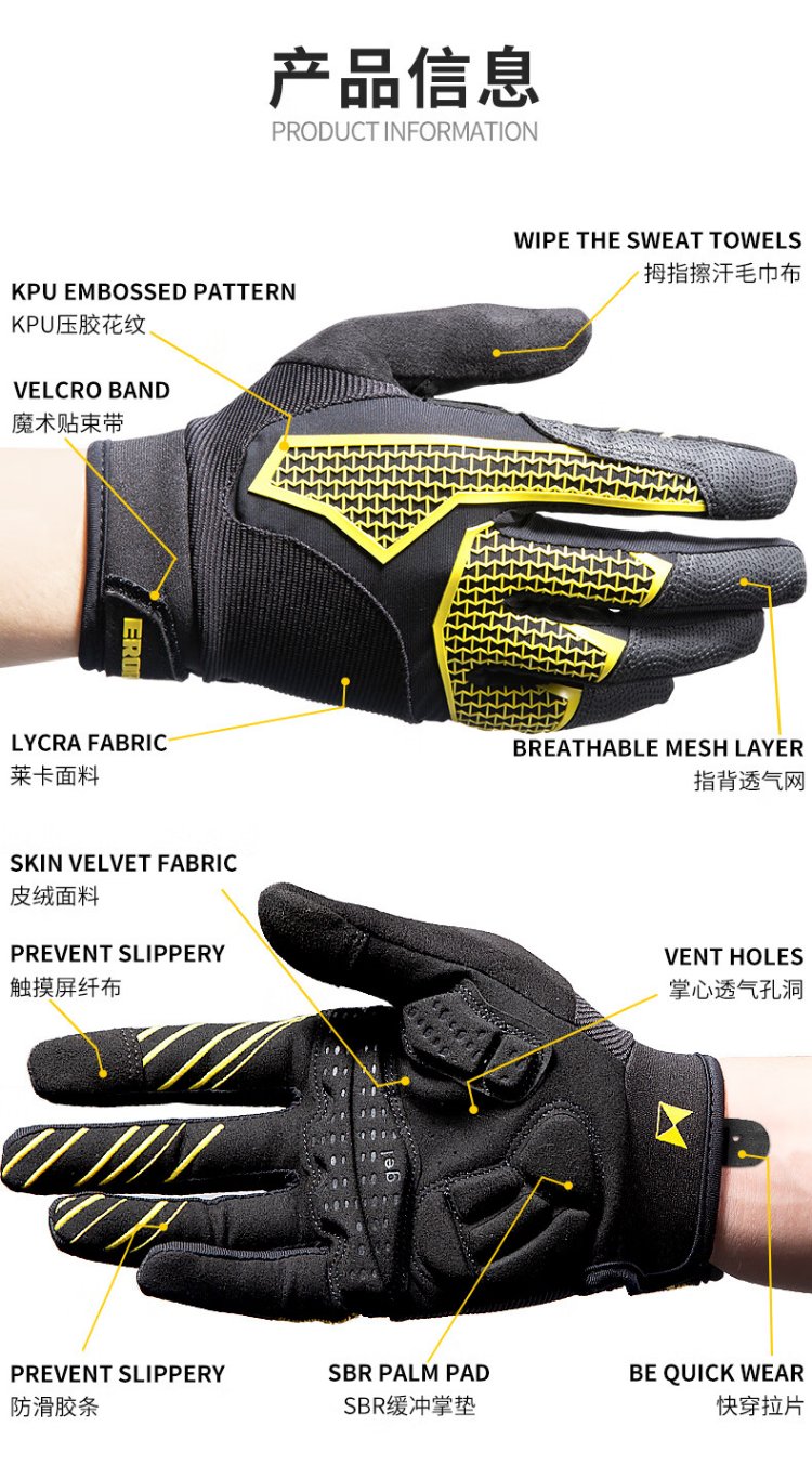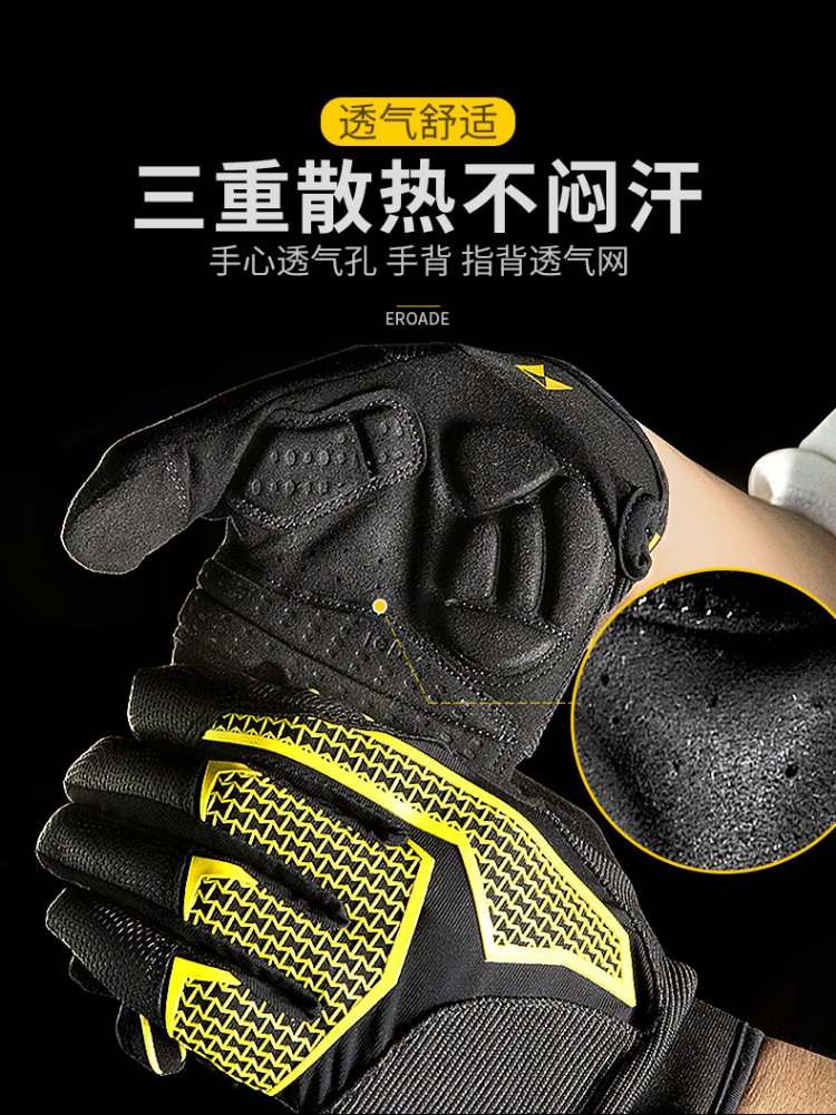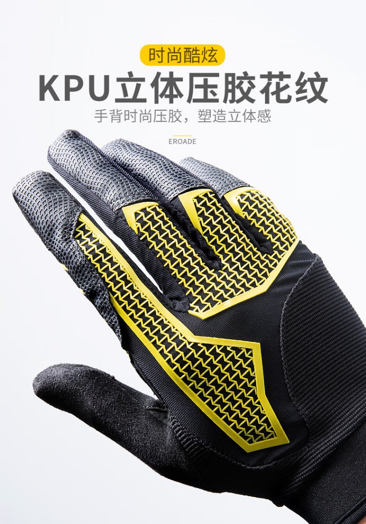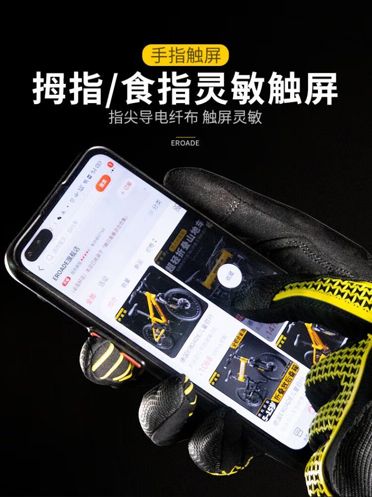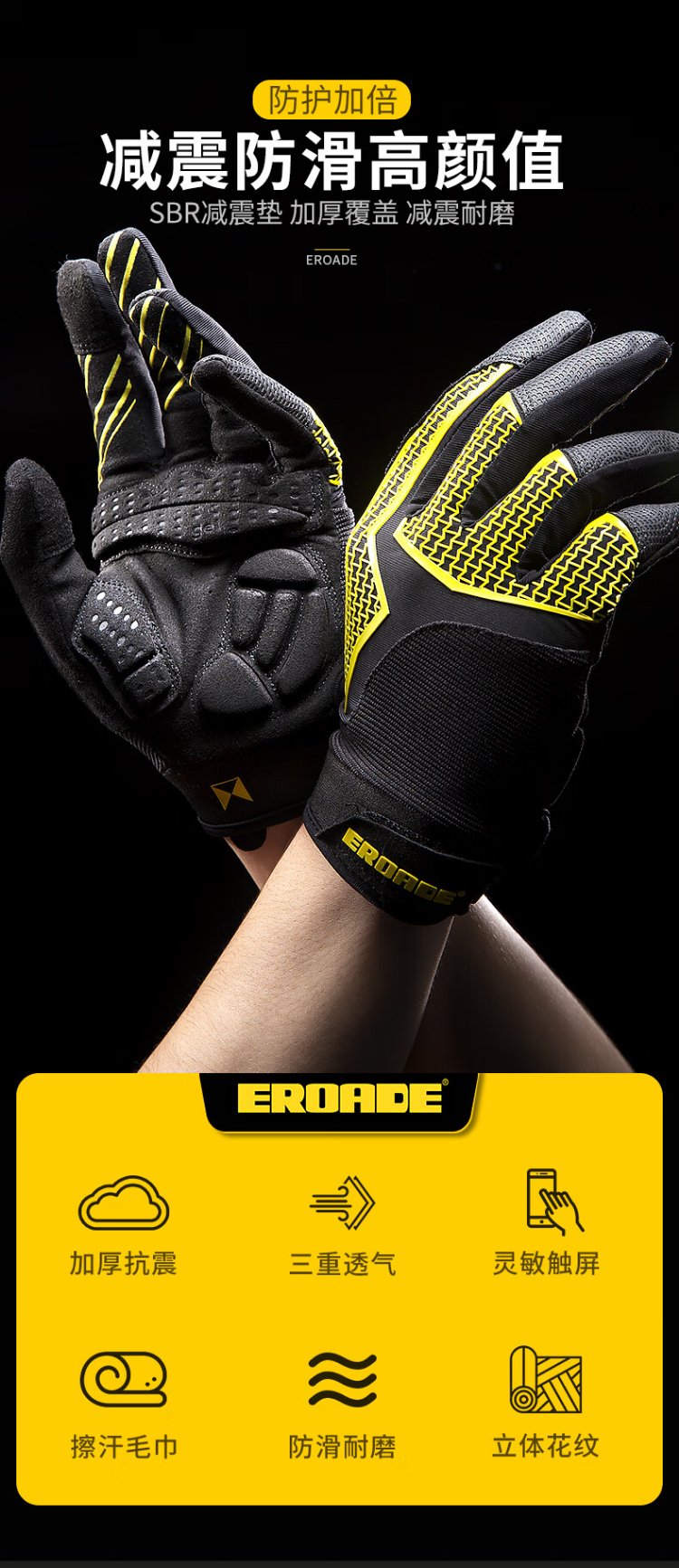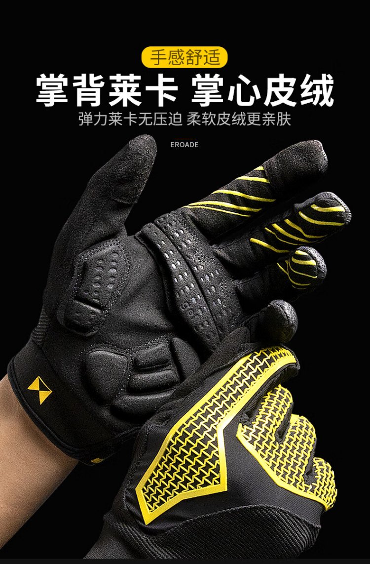 EROADE Cycling Gloves Autumn and Winter Warm Bike Mountain Bike Road Bike Anti-Slip Shock Absorption Full Finger Wipe Sweat Touch Screen Black Long Finger Gloves S15 L