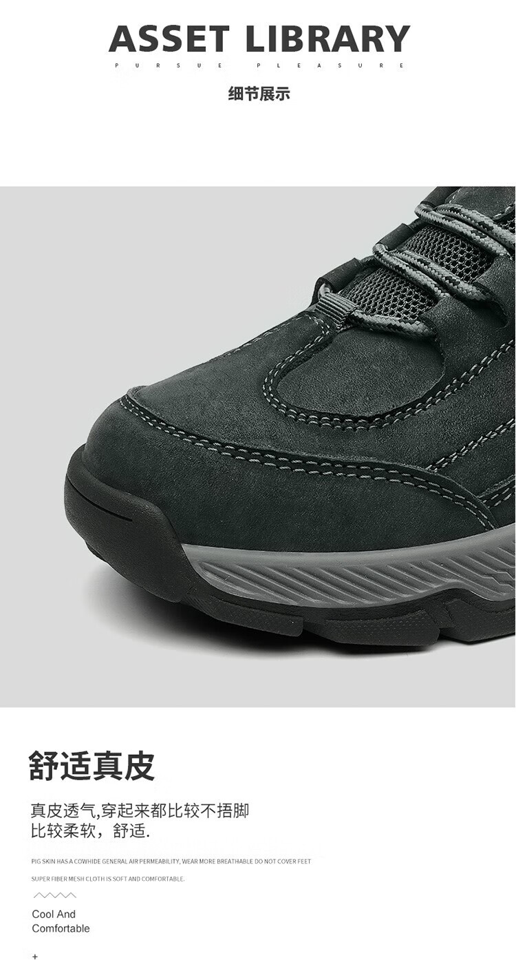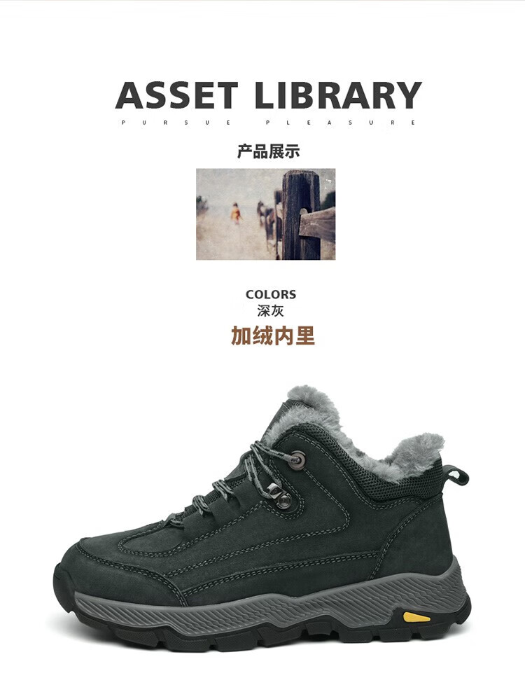 CARTELO crocodile (CARTELO) two-layer cowhide autumn and winter waterproof non-slip outdoor hiking shoes men's genuine leather shoes hiking and mountain climbing casual shoes plus velvet 2287 dark gray 39