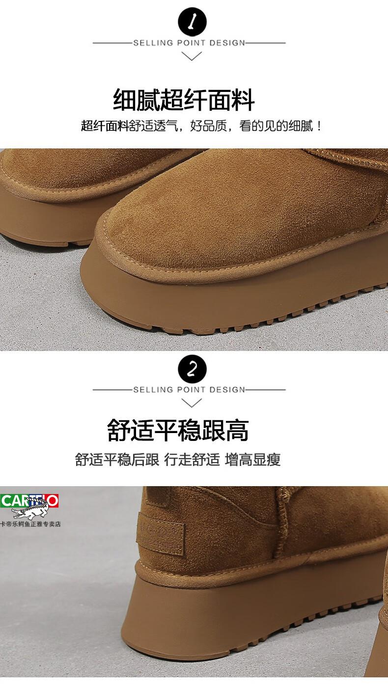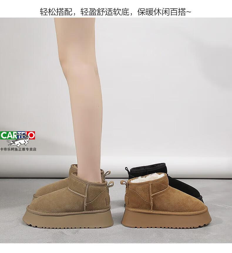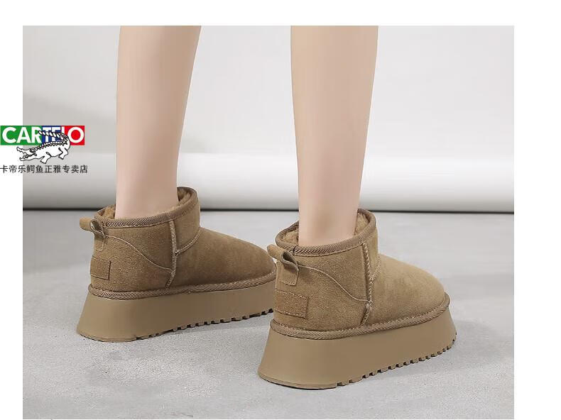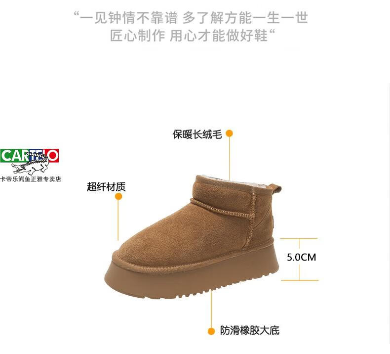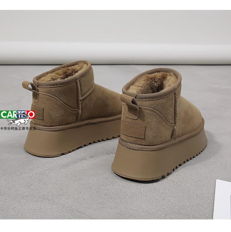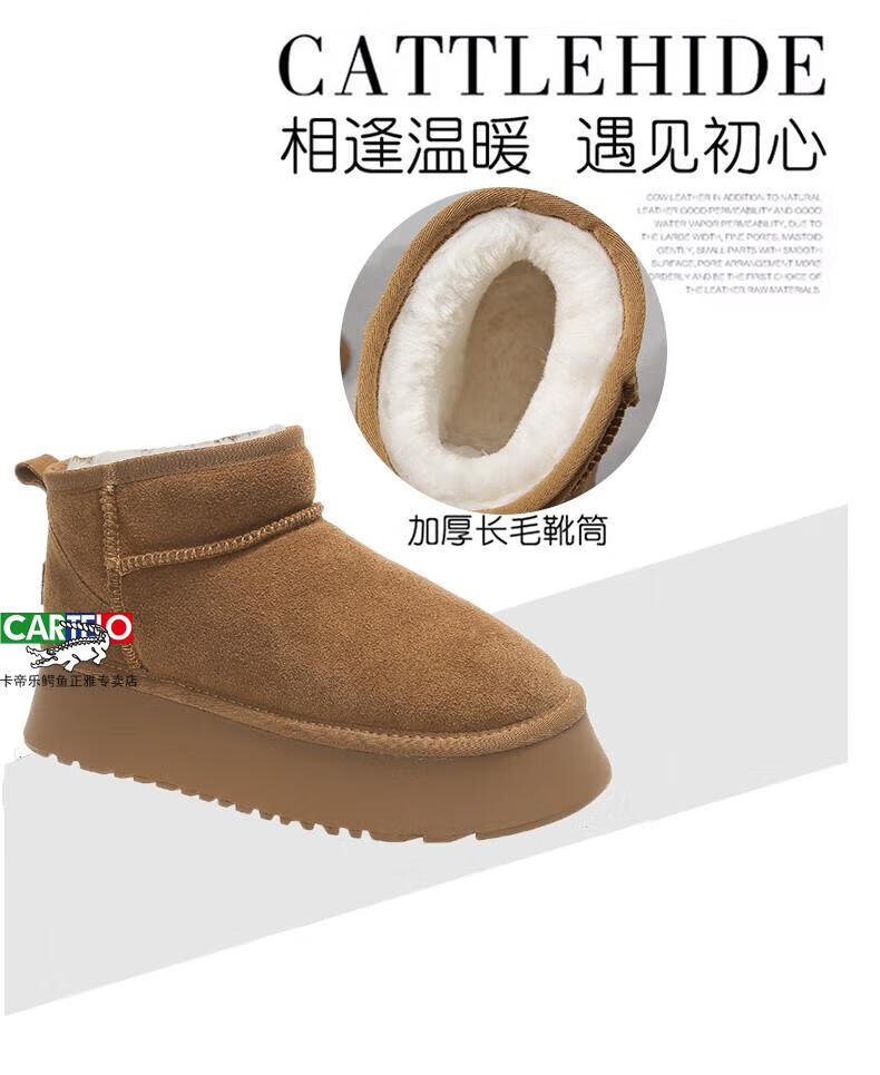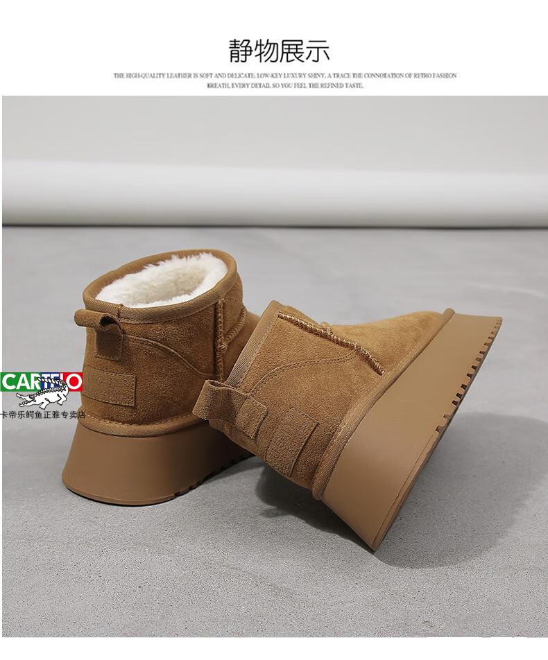CARTELO crocodile snow boots for women 2025 winter new fur integrated short boots thick sole plus velvet thickened warm snow cotton shoes antelope brown 37