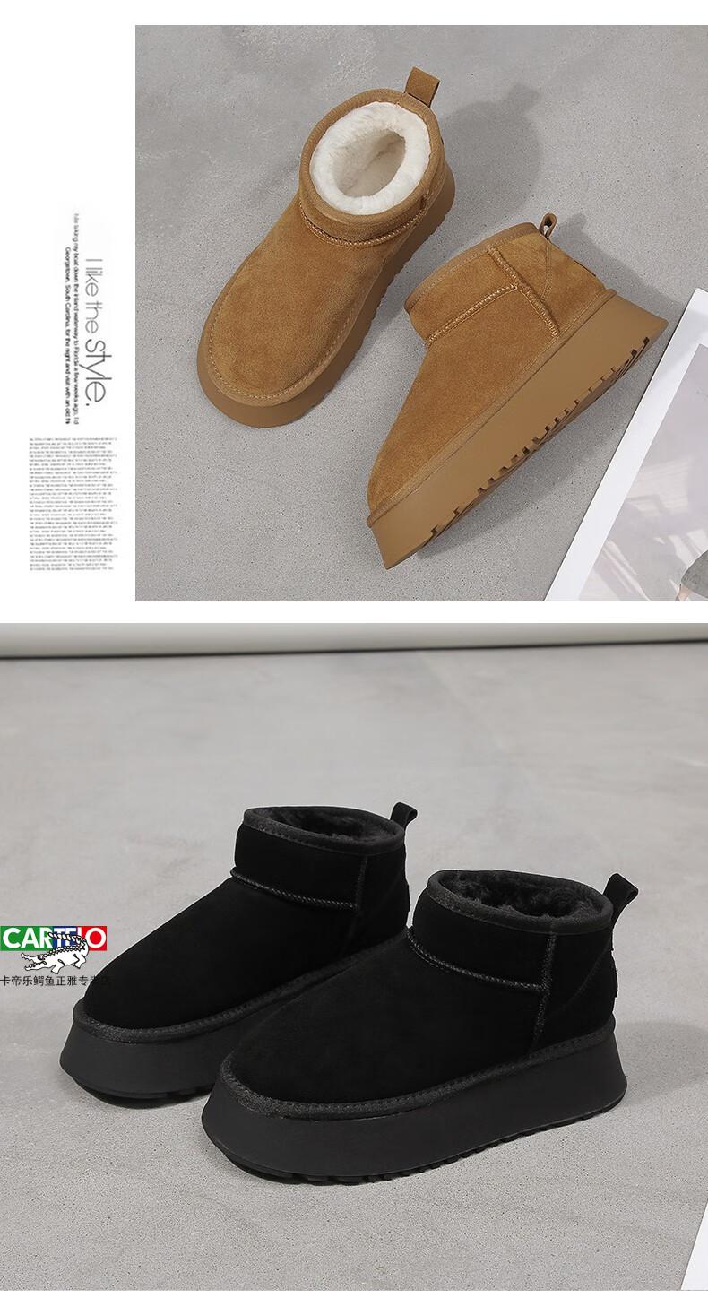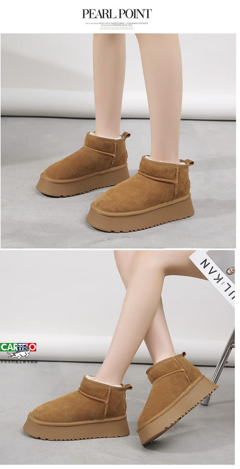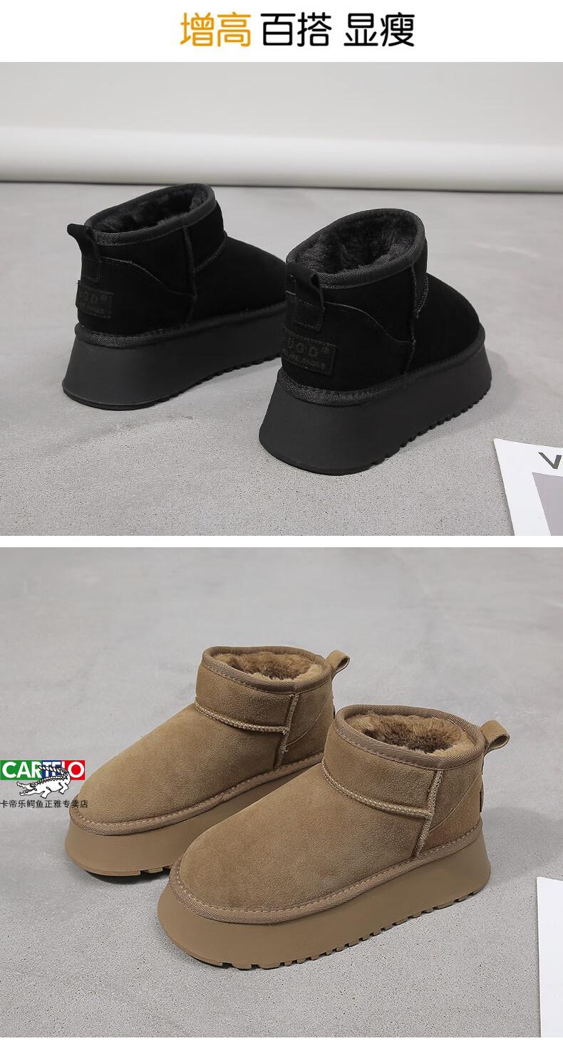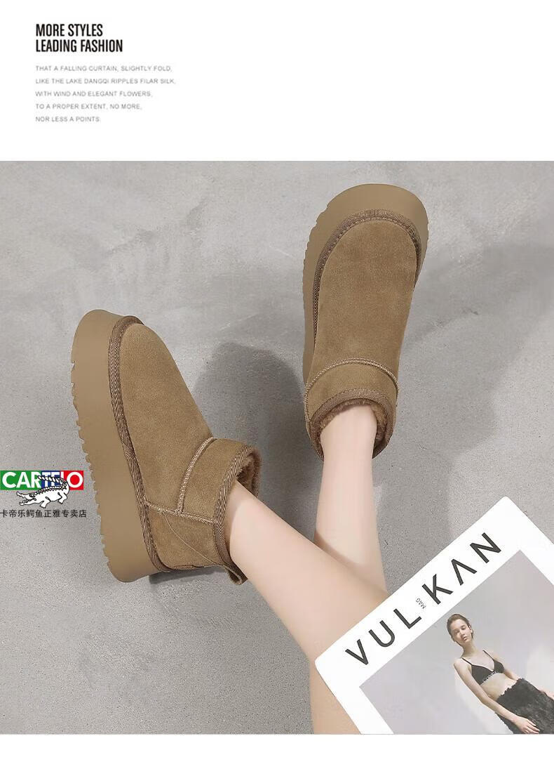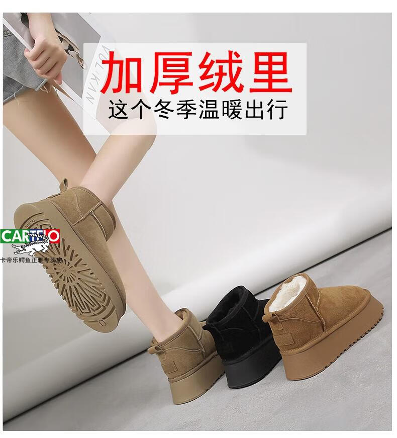 CARTELO crocodile snow boots for women 2025 winter new fur integrated short boots thick sole plus velvet thickened warm snow cotton shoes antelope brown 37