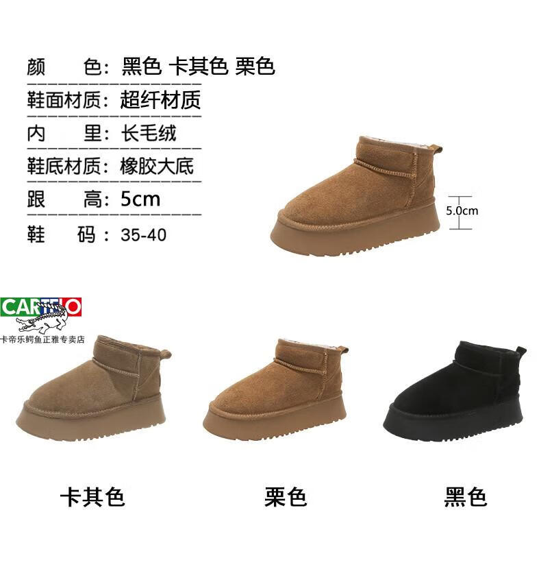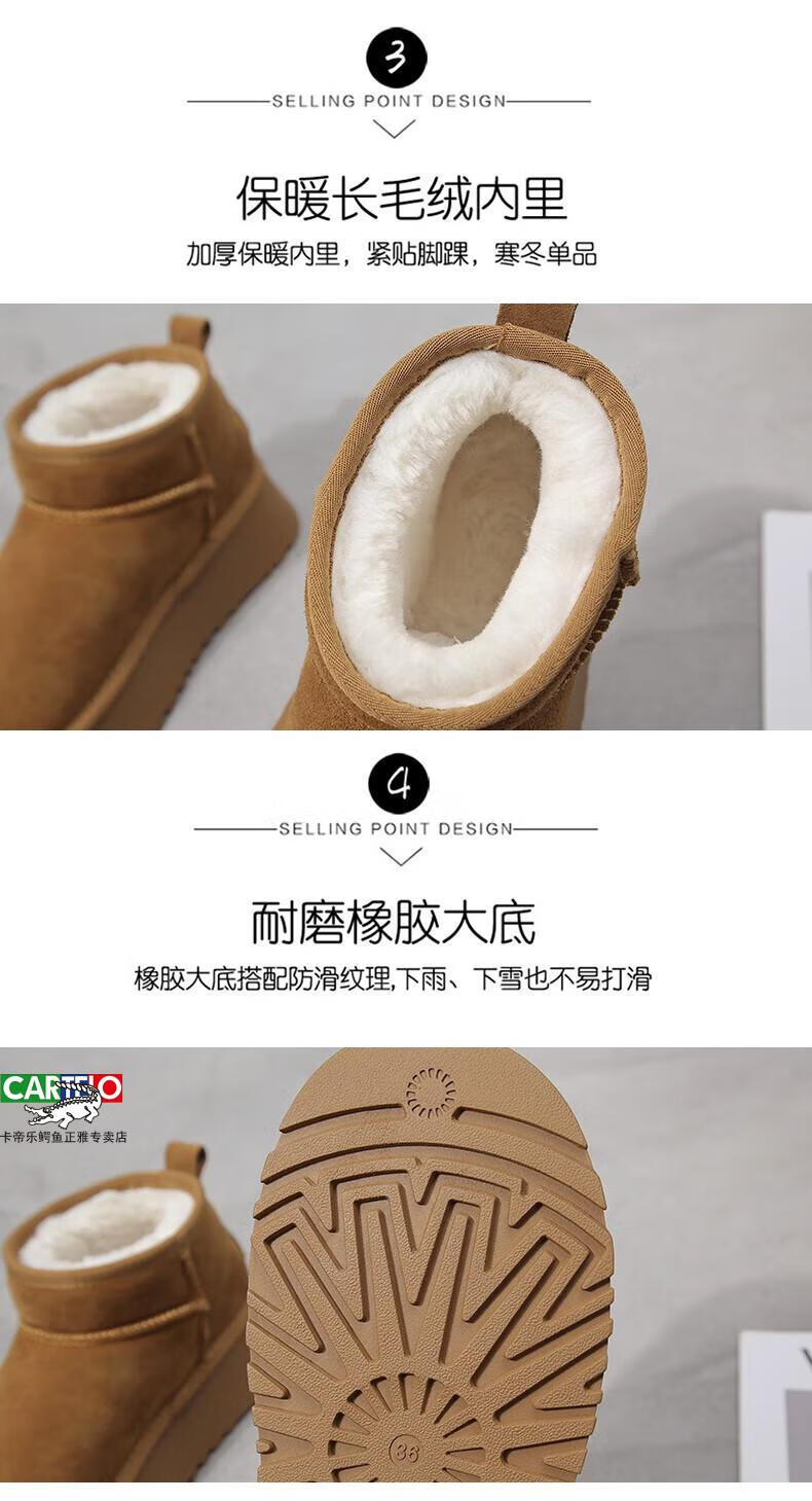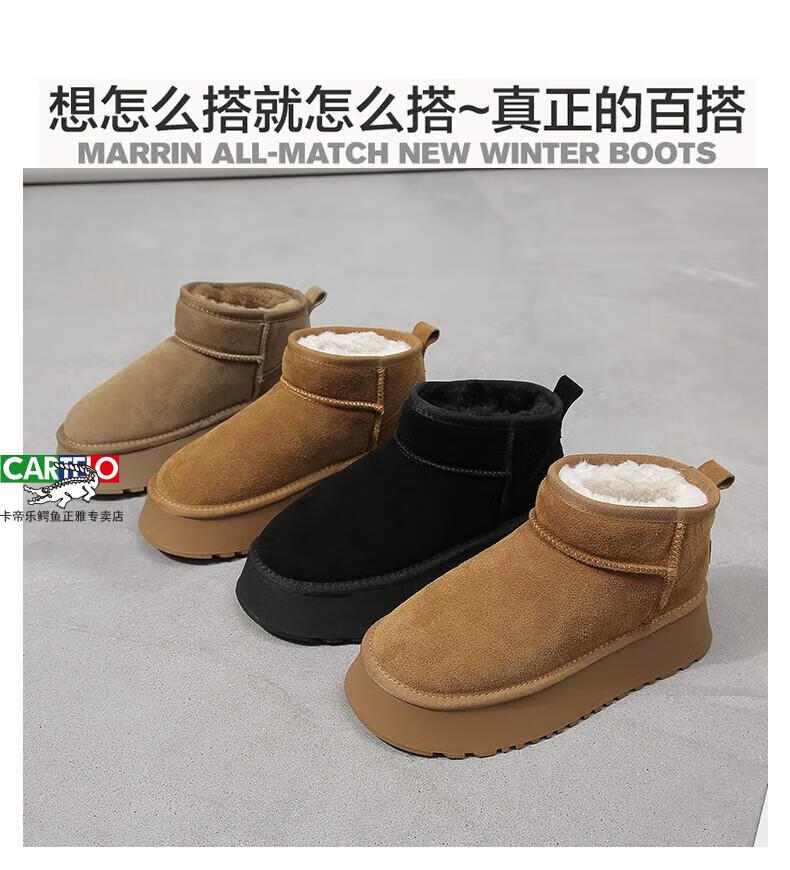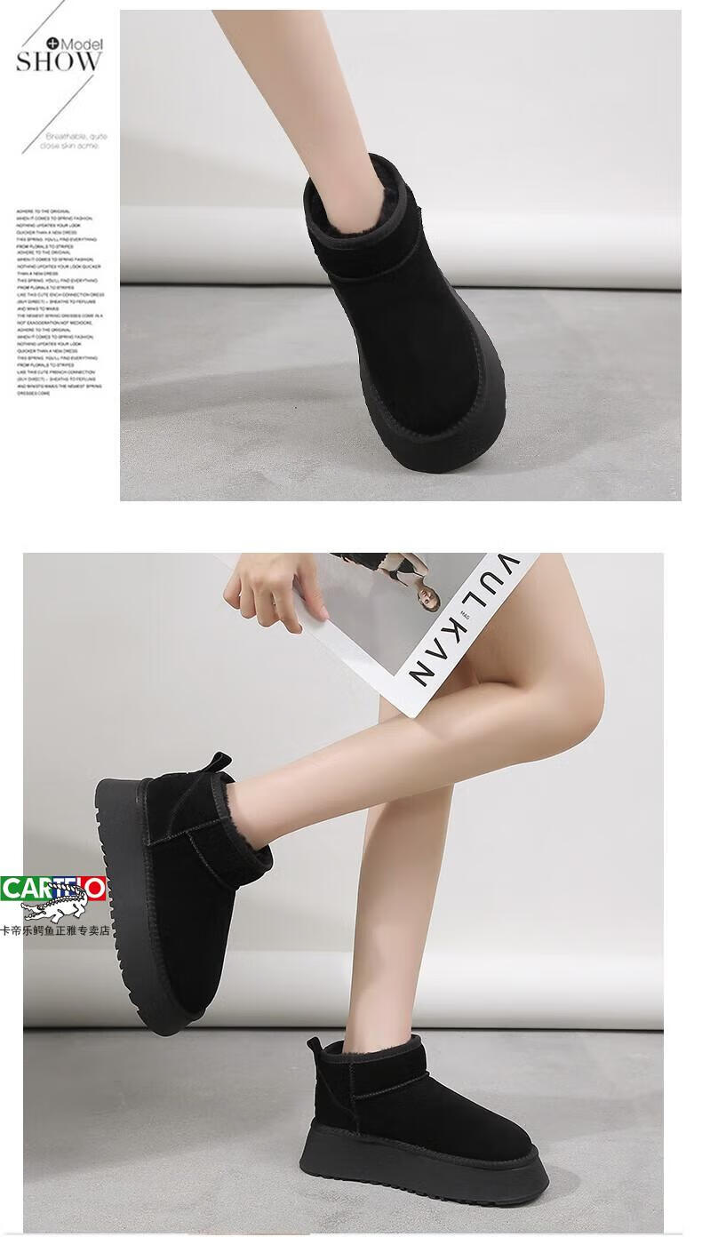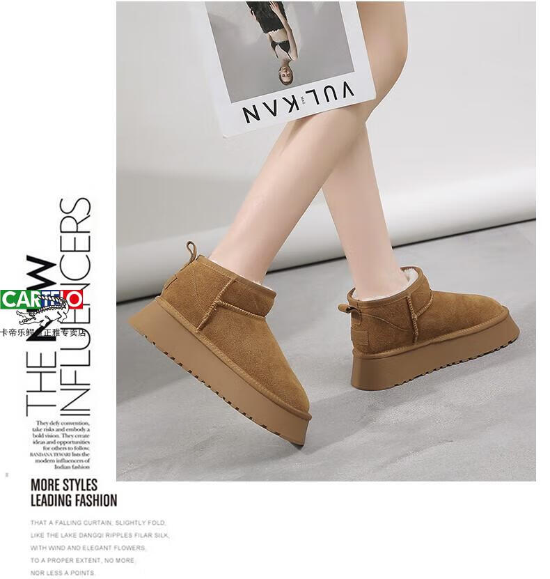 CARTELO crocodile snow boots for women 2025 winter new fur integrated short boots thick sole plus velvet thickened warm snow cotton shoes antelope brown 37