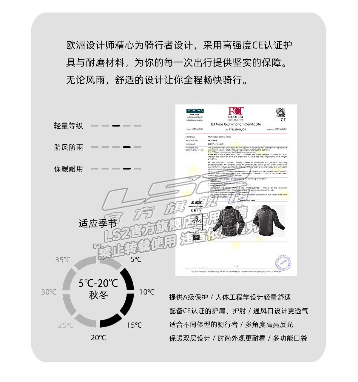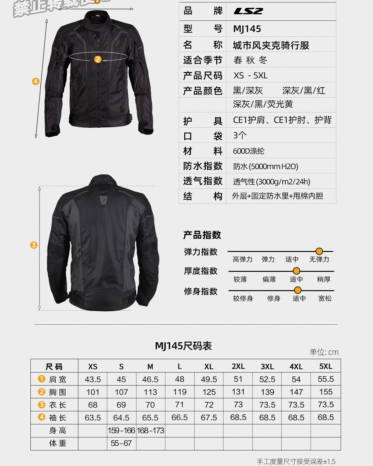 LS2 New Autumn and Winter Motorcycle Riding Suit Set for Men and Women Motorcycle Racing Waterproof, Wear-Resistant, Fall-proof and Warm in All Seasons 145 Men's Style - Black/Dark Gray MJ145 XL