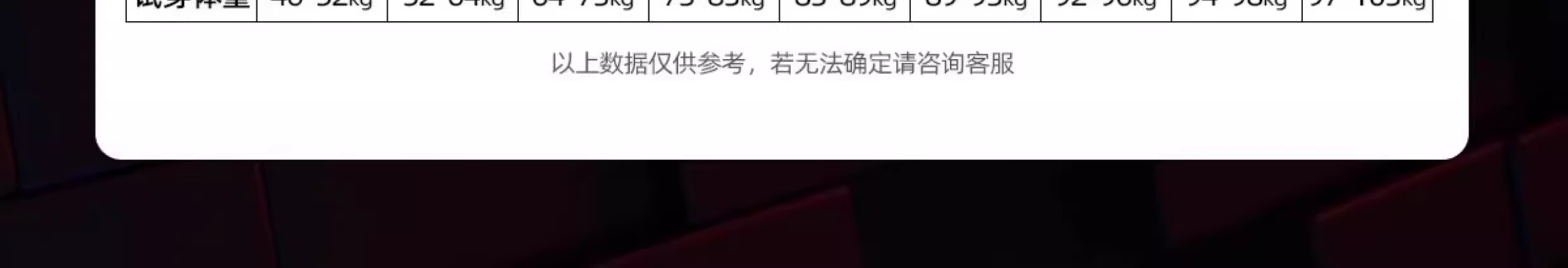 China (cm) 165 / 88-90 170 / 96-98 175 / 108-110 180 / 118-122 185 / 126-130
