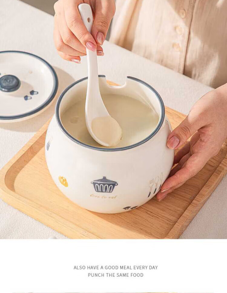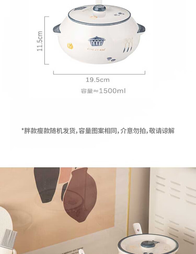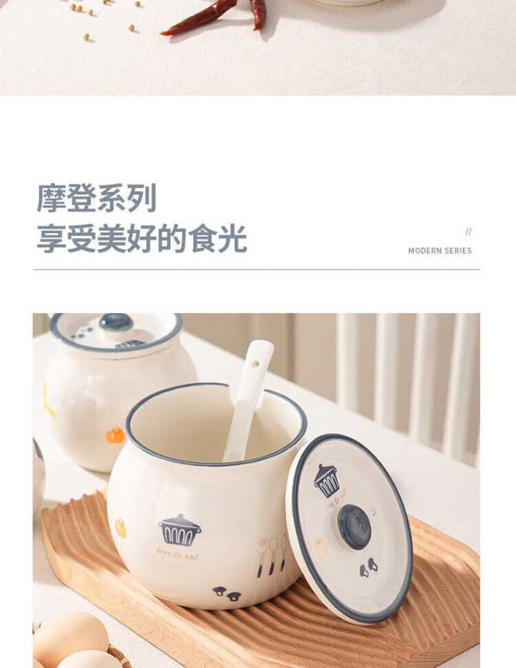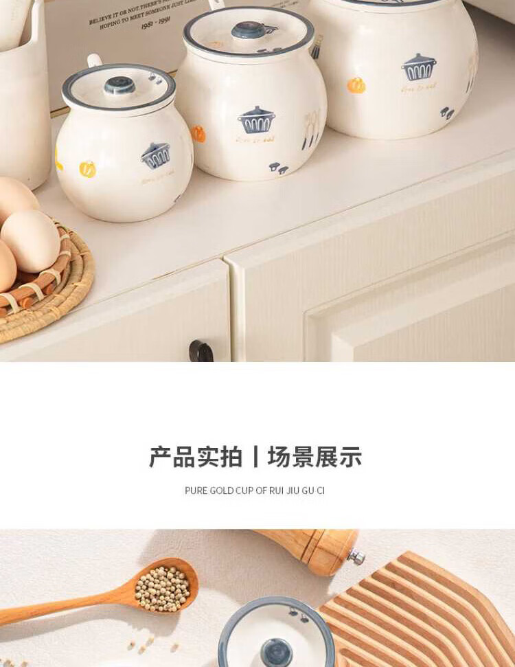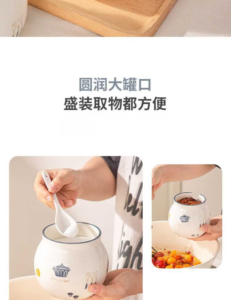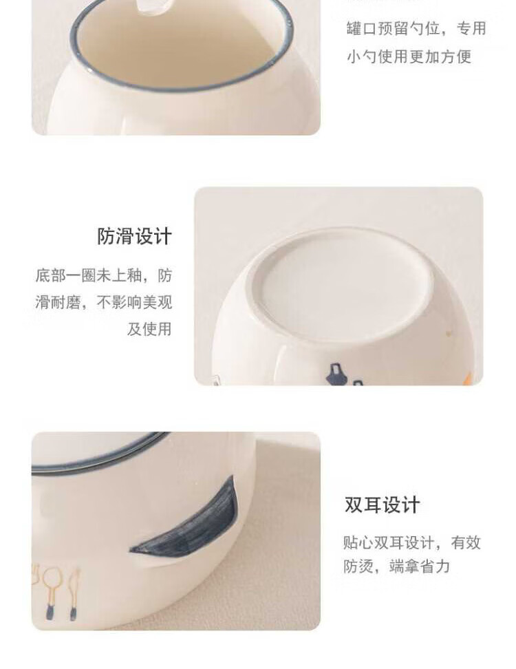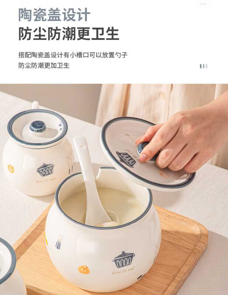 Man丂 double-eared lard jar with spoon large capacity 1.5L high temperature resistant and anti-scalding seasoning jar ceramic lard jar kitchen seasoning jar double-eared large lard jar with spoon white and blue