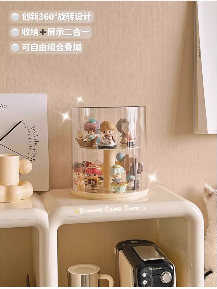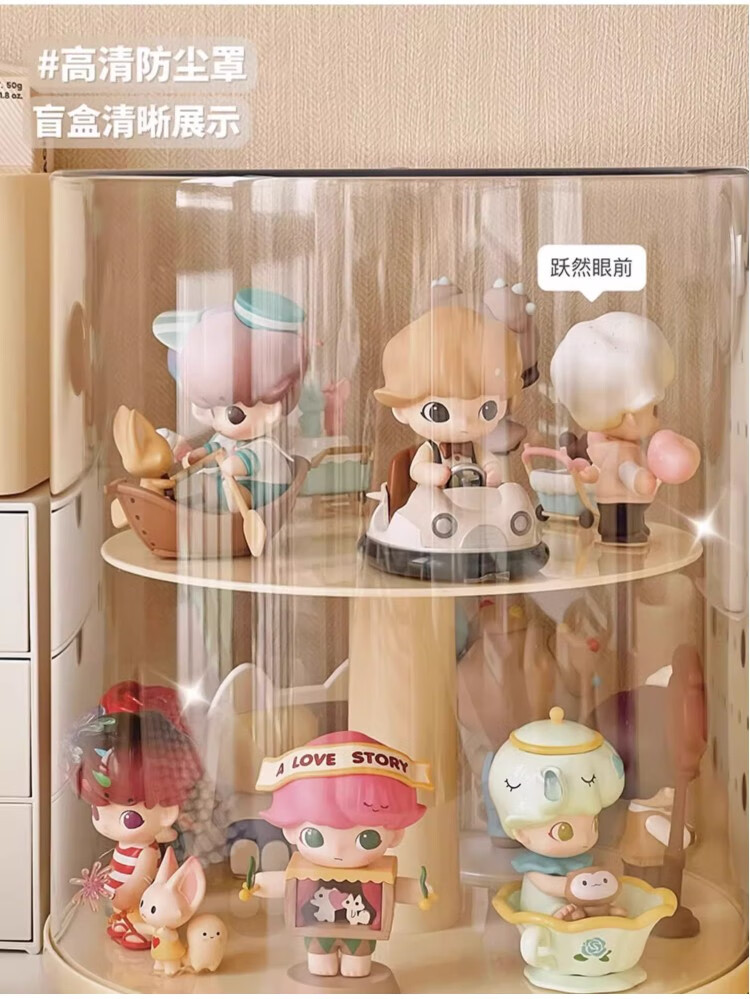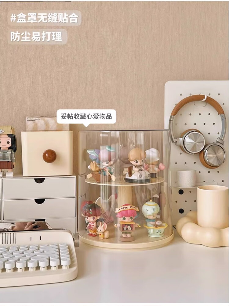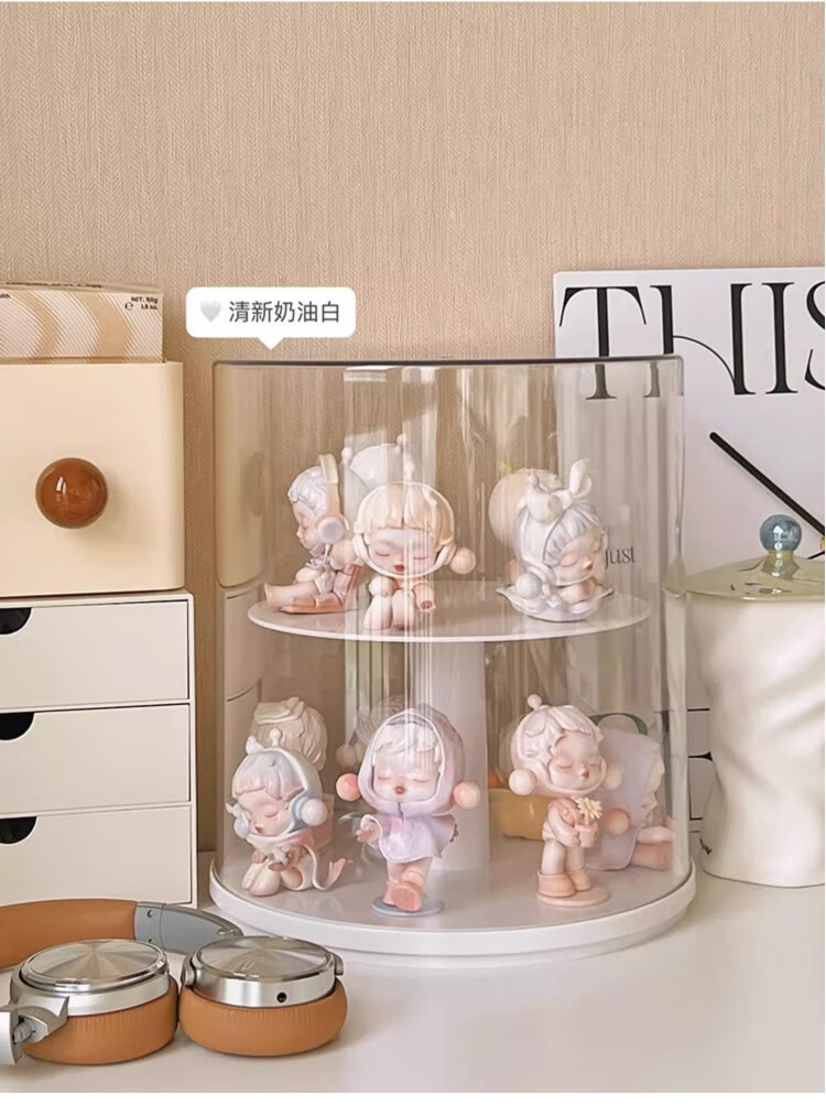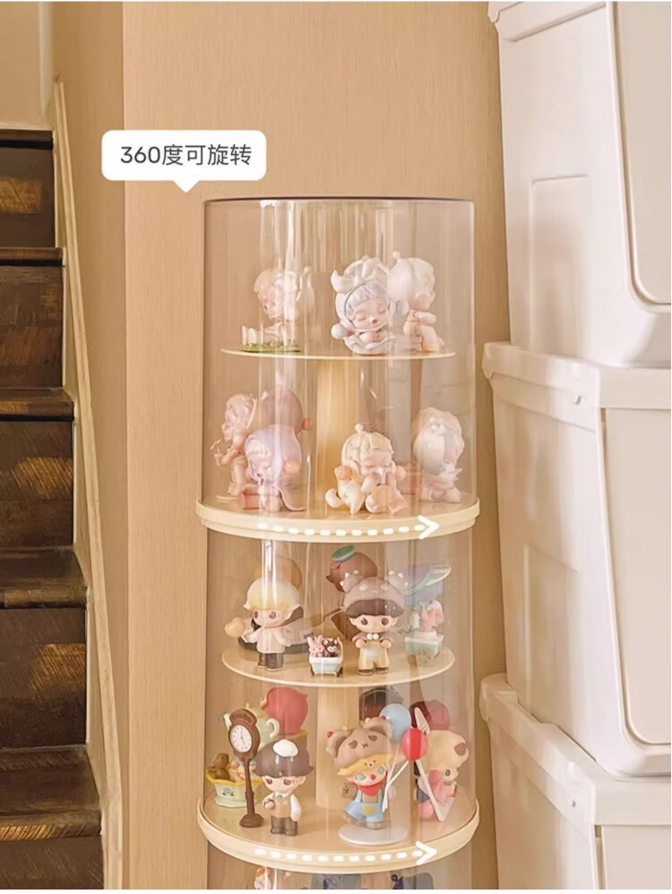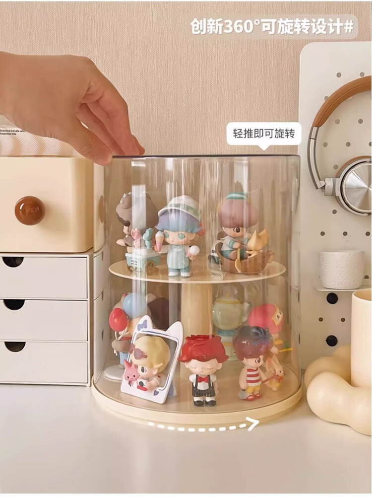 Jiuli rotating blind box storage display stand multi-layer LEGO figure display cabinet dustproof suitable for Bubble Mart display box cream yellow + dust cover rotatable - single large size