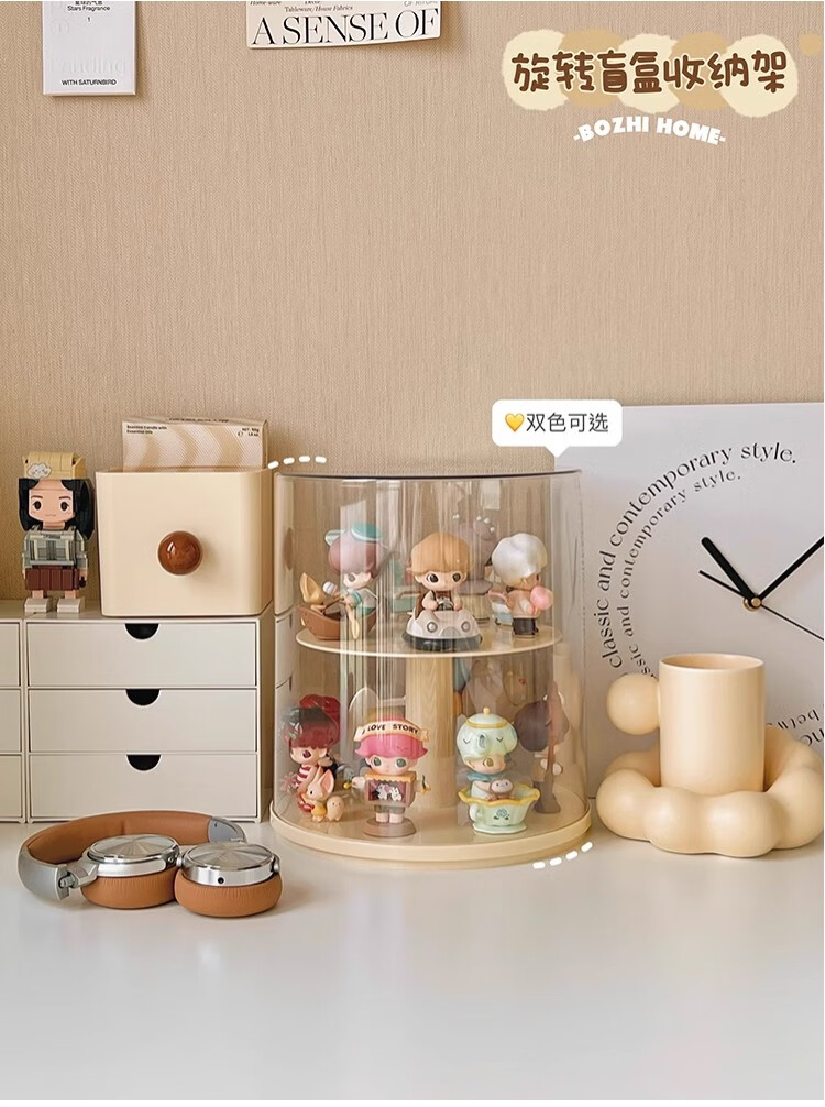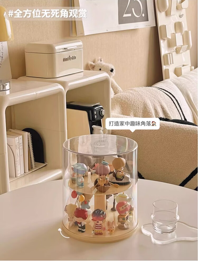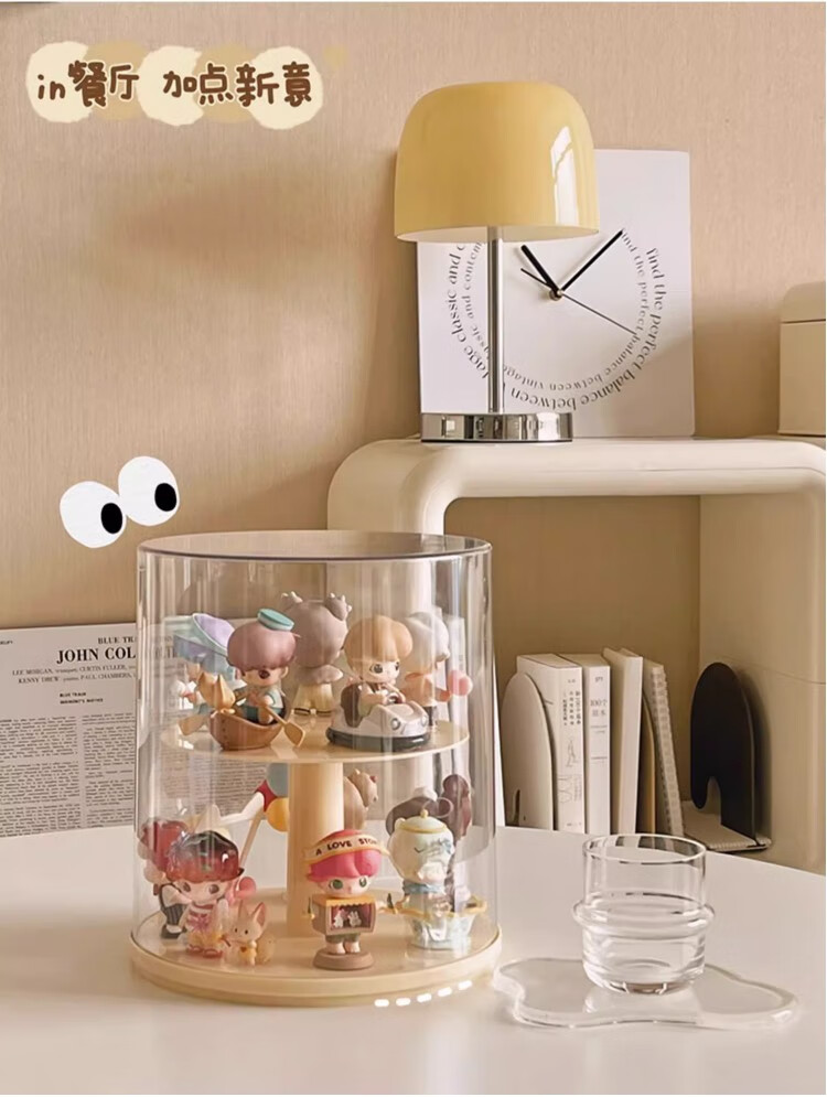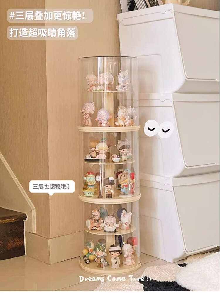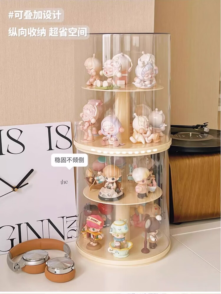 Jiuli rotating blind box storage display stand multi-layer LEGO figure display cabinet dustproof suitable for Bubble Mart display box cream yellow + dust cover rotatable - single large size