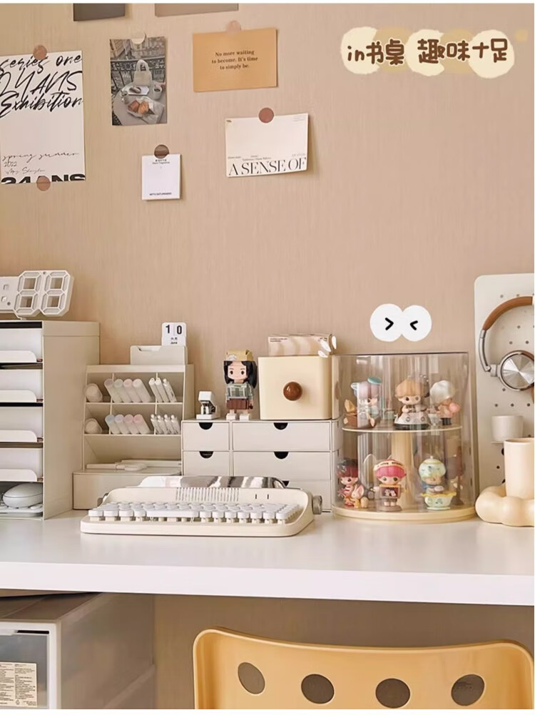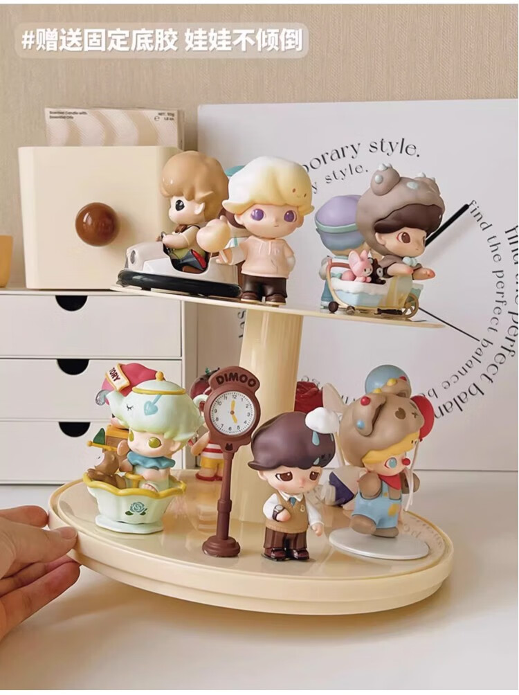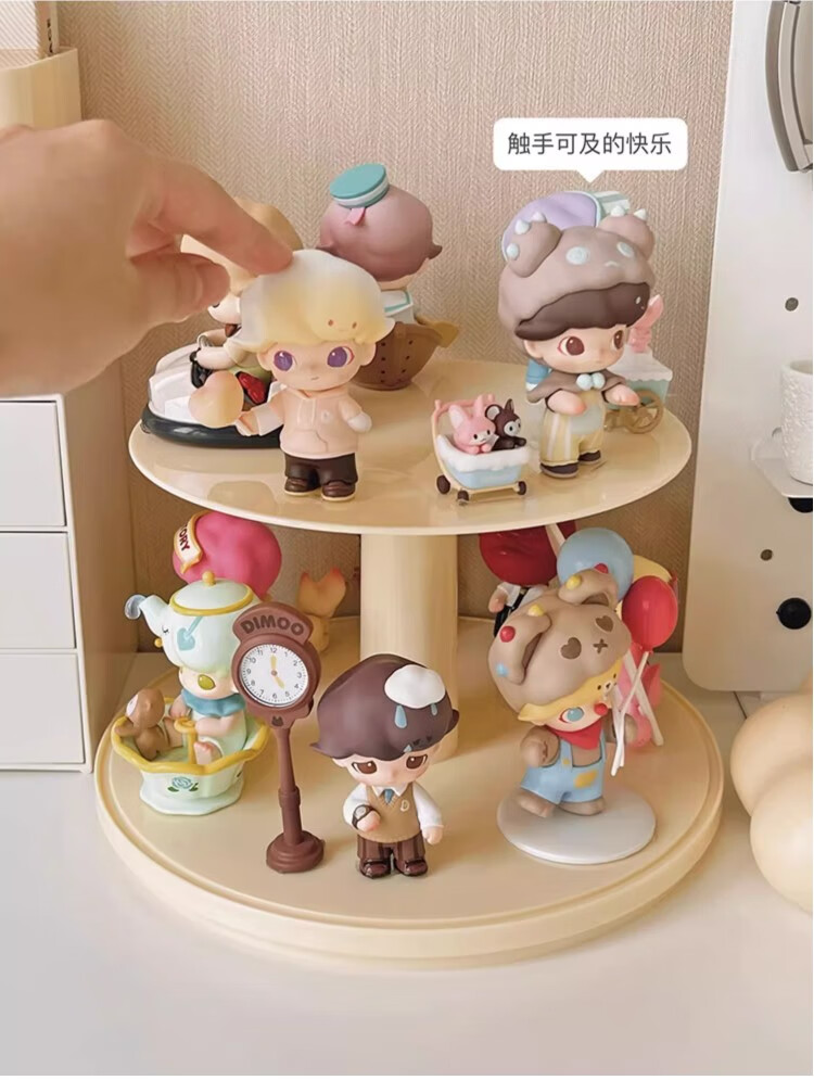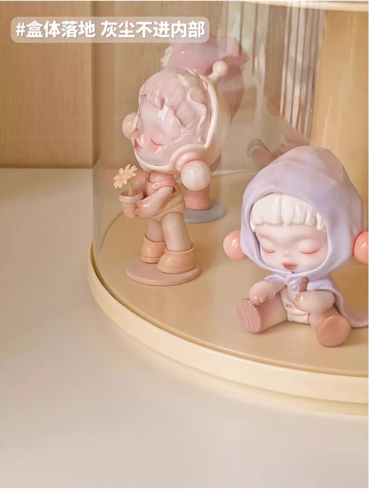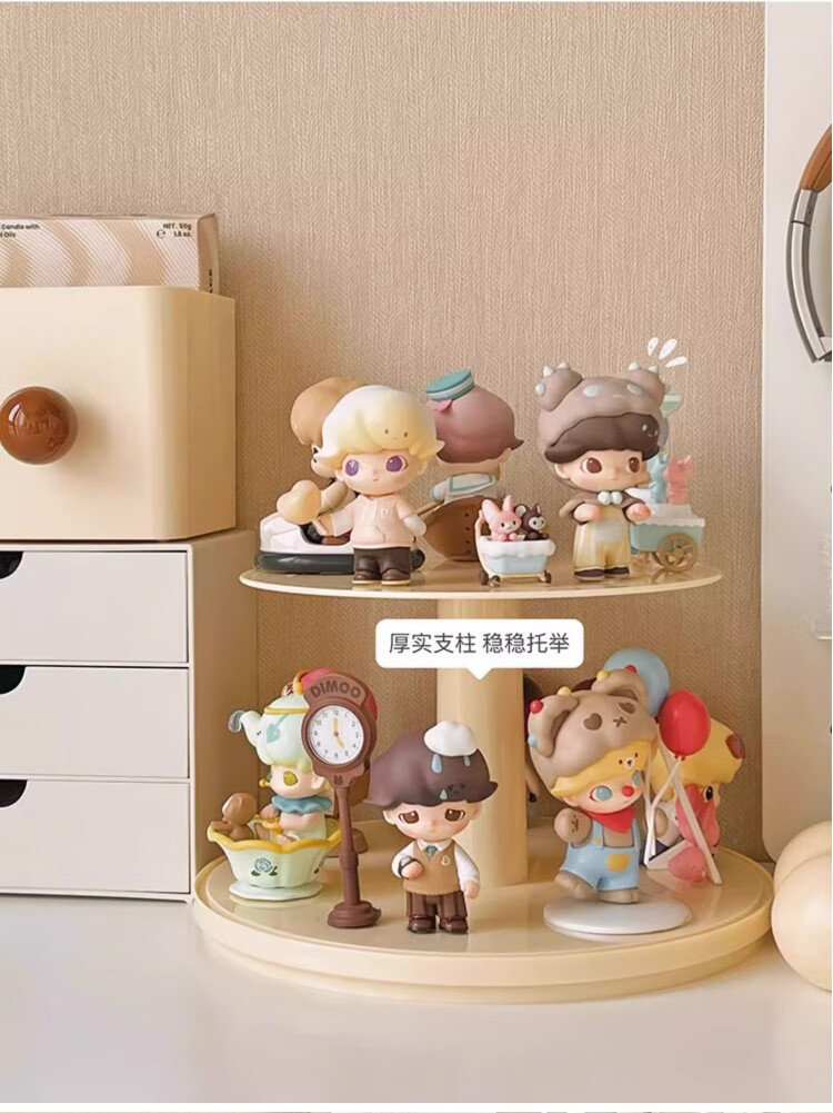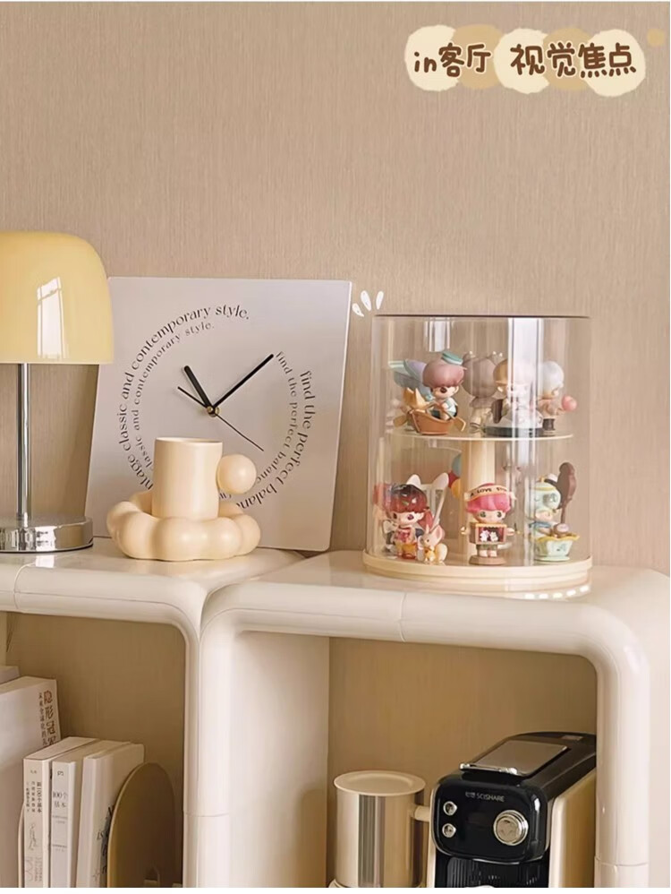 Jiuli rotating blind box storage display stand multi-layer LEGO figure display cabinet dustproof suitable for Bubble Mart display box cream yellow + dust cover rotatable - single large size