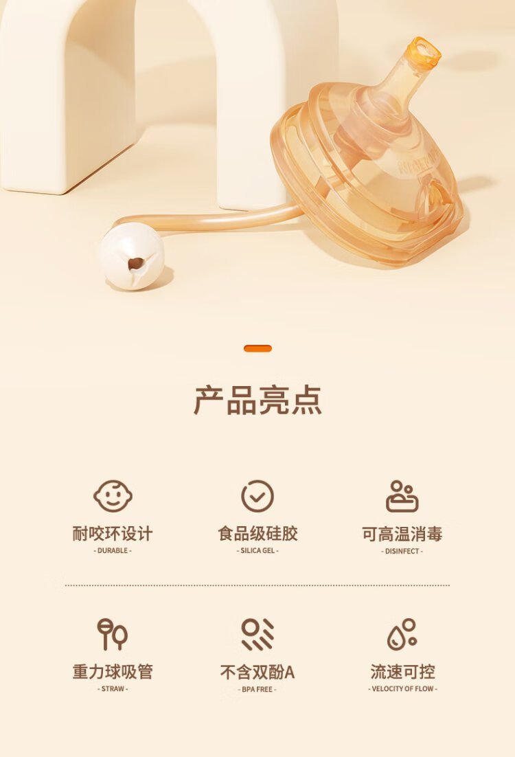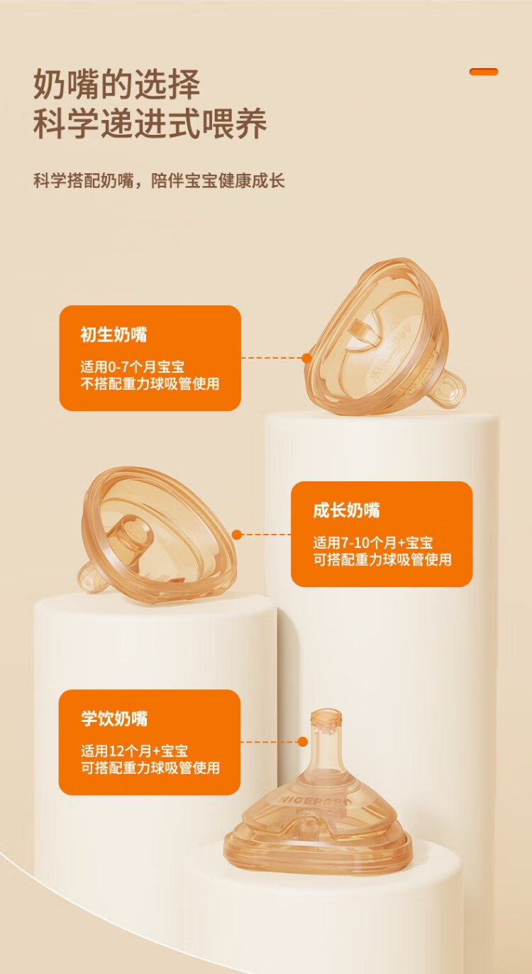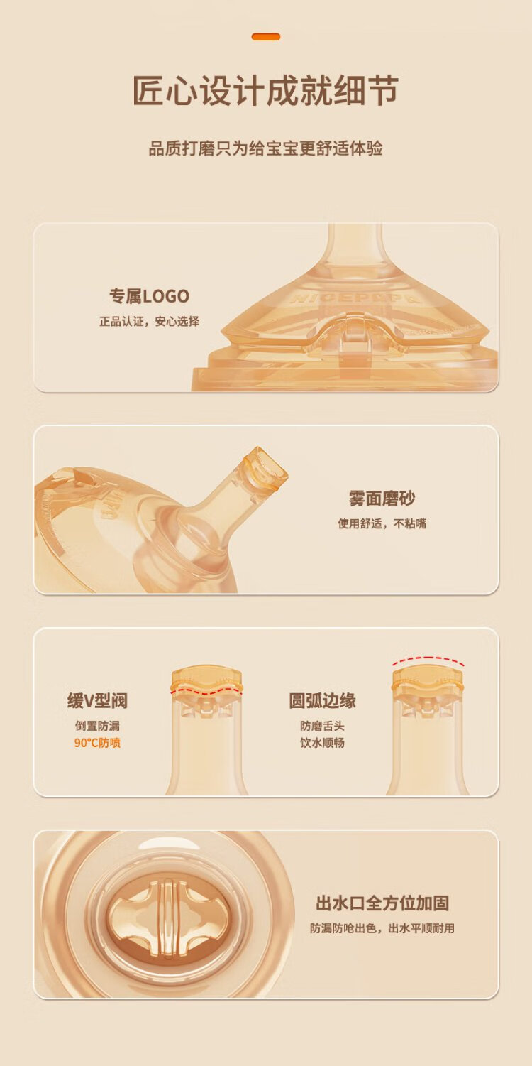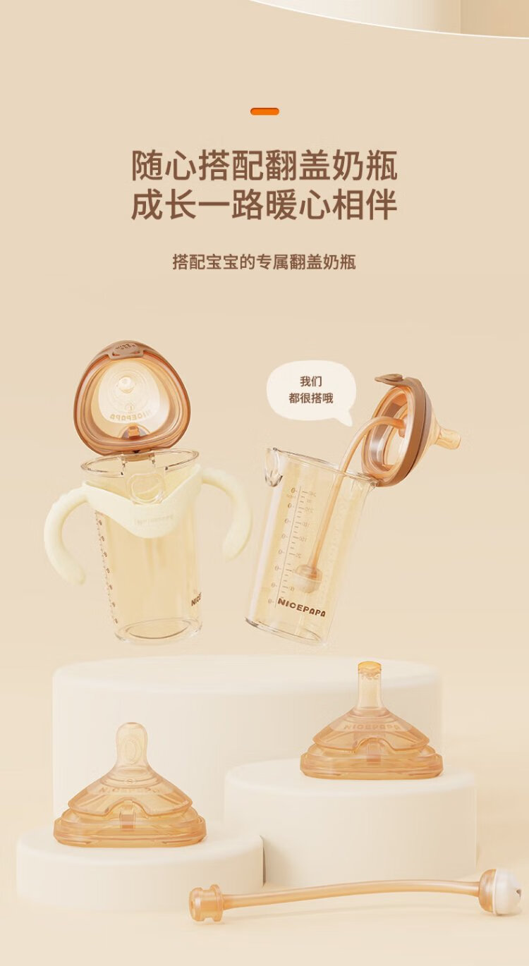Nicepapa flip-top PPSU new version, special silicone pacifier, straw, imitation breast milk touch pacifier, one-hole spout (12 months+) without straw