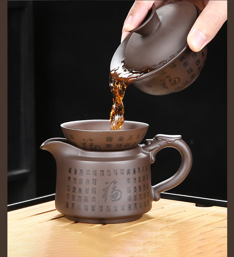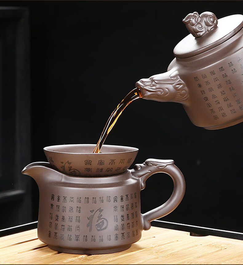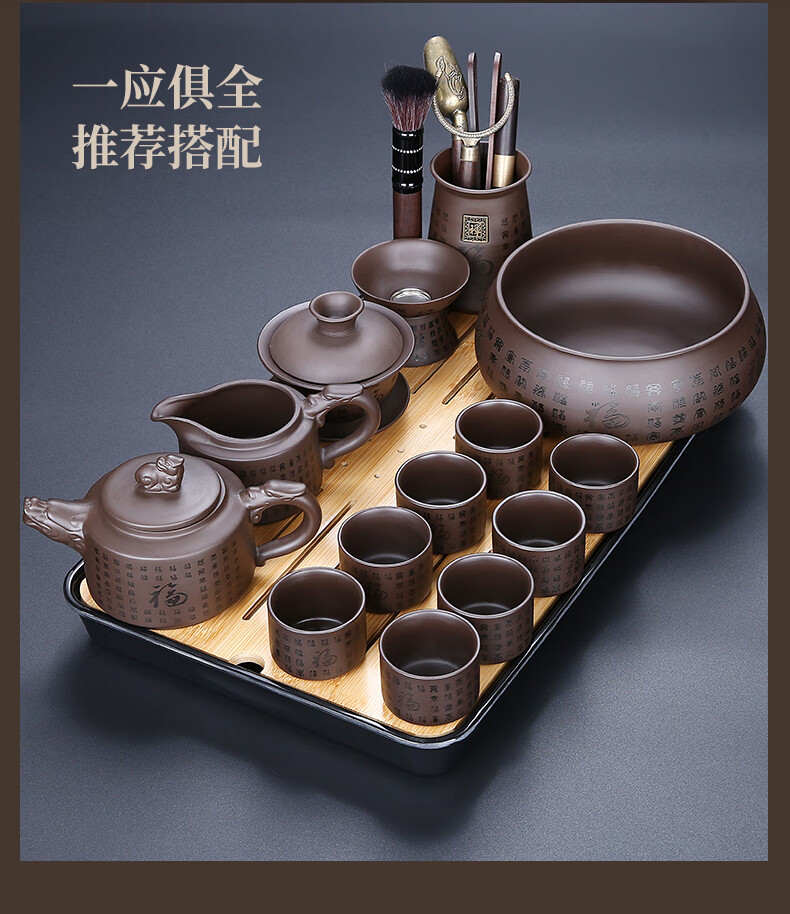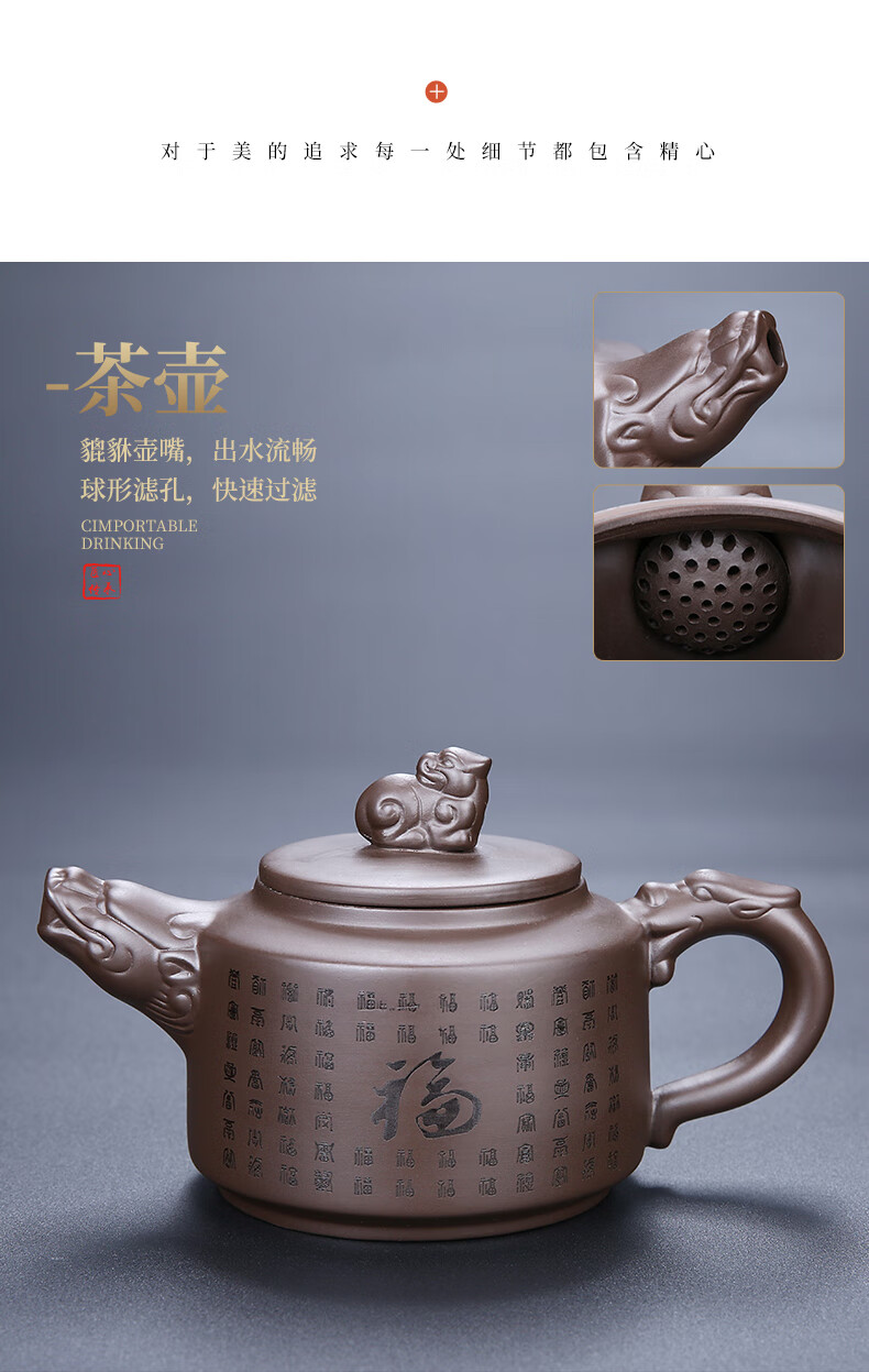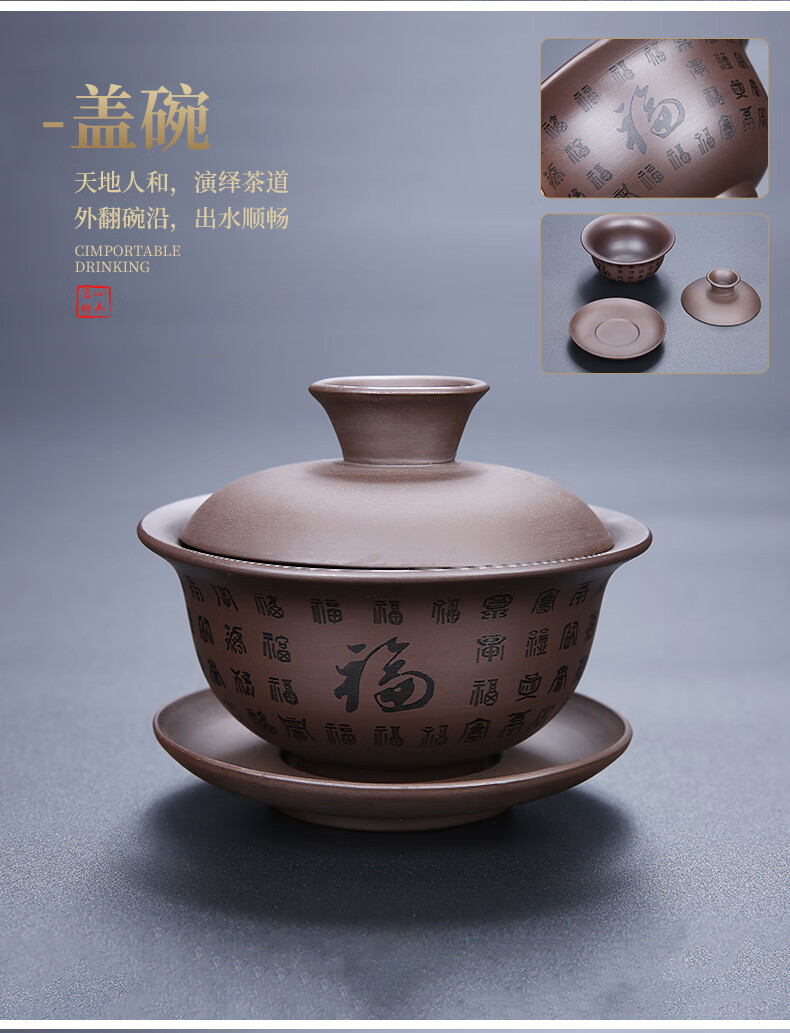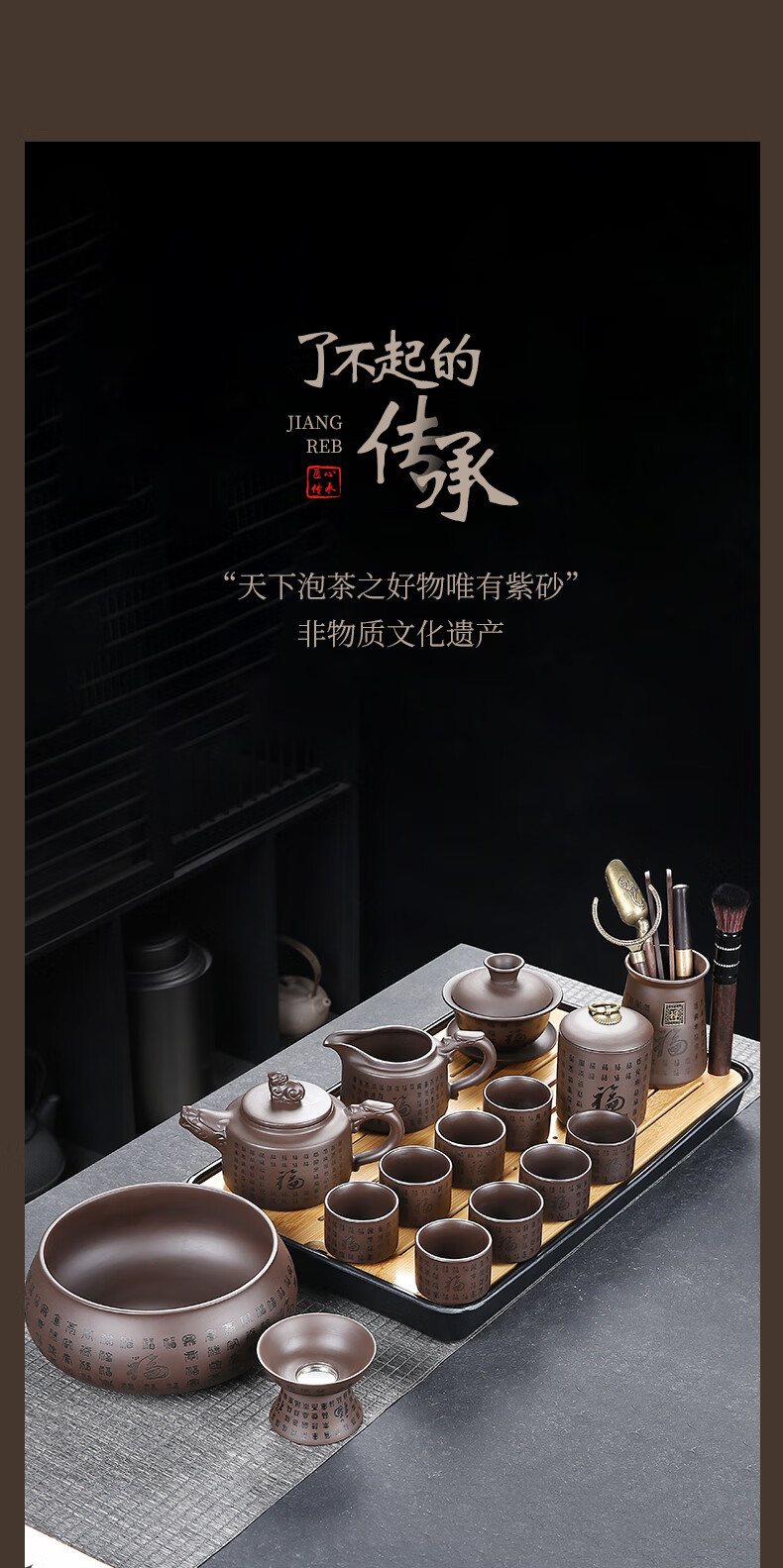 Yanhuang Zisha Tea Set Home 2025 New Light Luxury Kung Fu Teacup Teapot Office Teapot Cover Bowl Zisha Baifu Pixiu Pot 9 Pieces