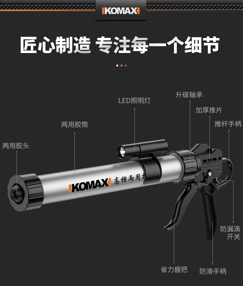 Komax glass glue gun, automatic glue-breaking, labor-saving structural glue glue gun, beautiful seam glue gun, silicone gun, squeeze glue gun, enhanced 10-inch glue gun