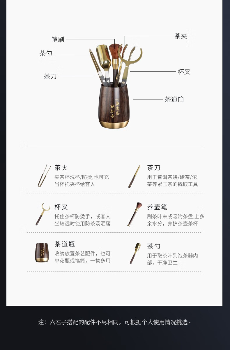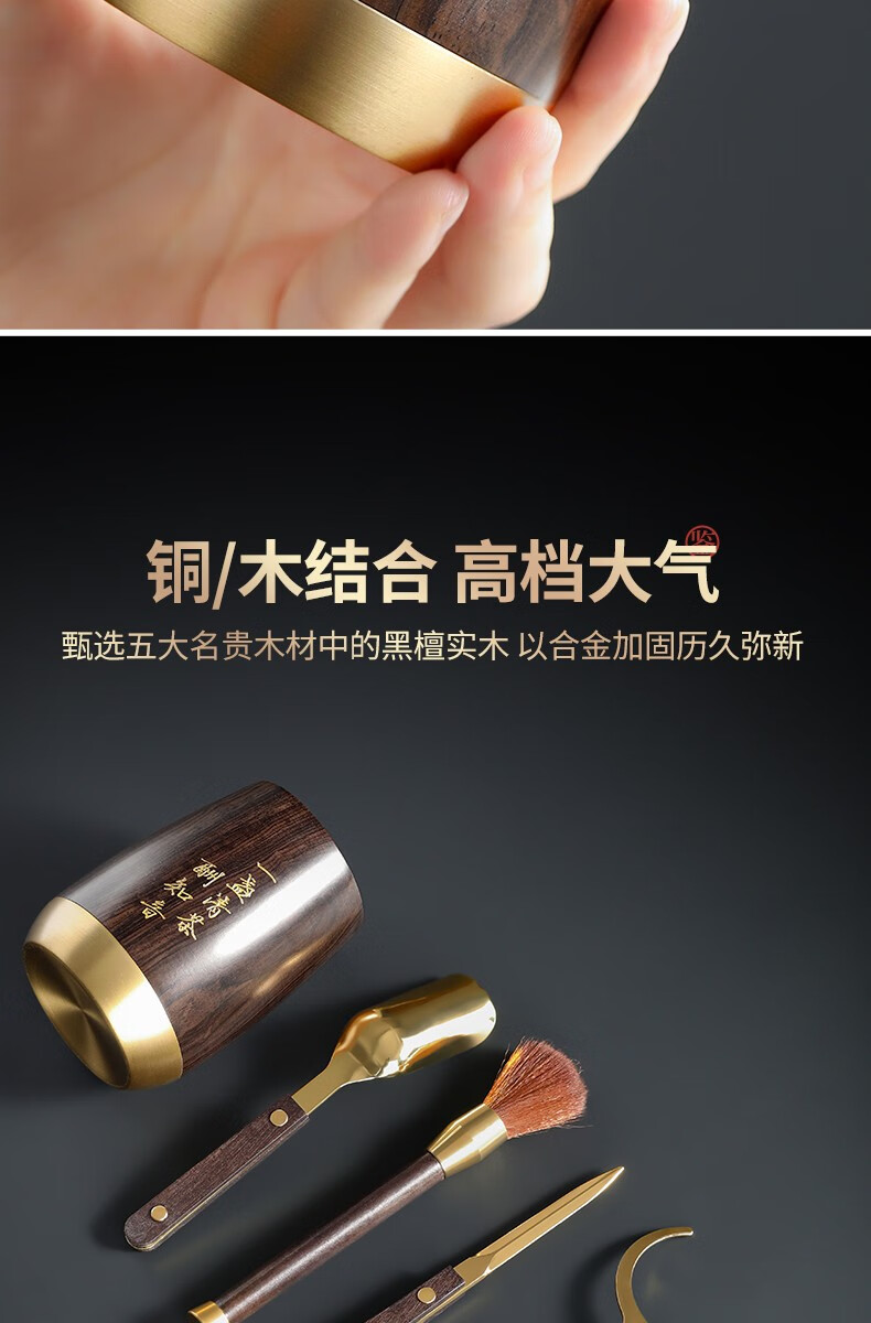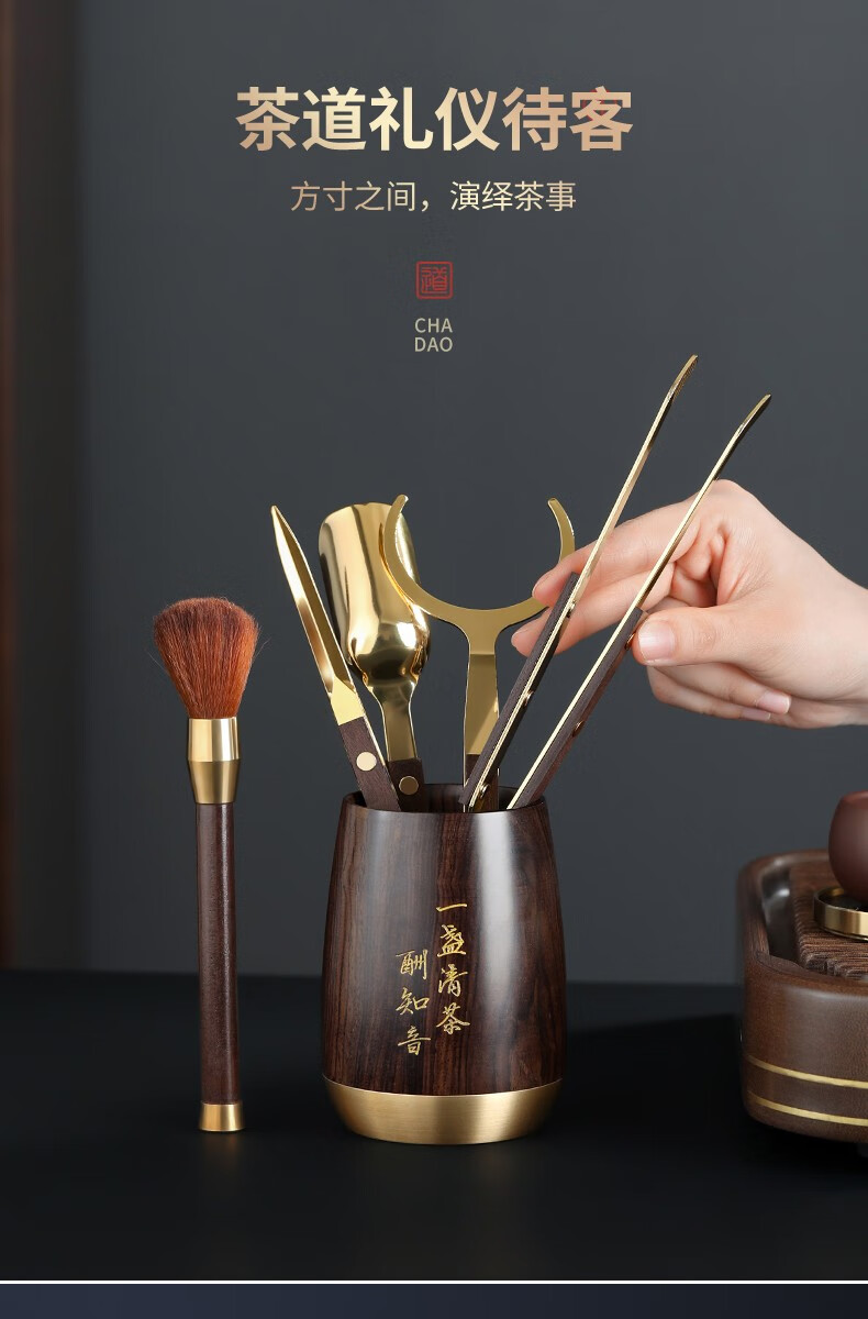 Buchuo Tea Set Accessories Tea Ceremony Six Gentlemen Tea Making Set Tea Knife Tea Clamp Tea Needle Teaspoon Tea Making Tools Three-piece Set 1-Ebony Zhiyin Houze Tea Ceremony Six Gentlemen