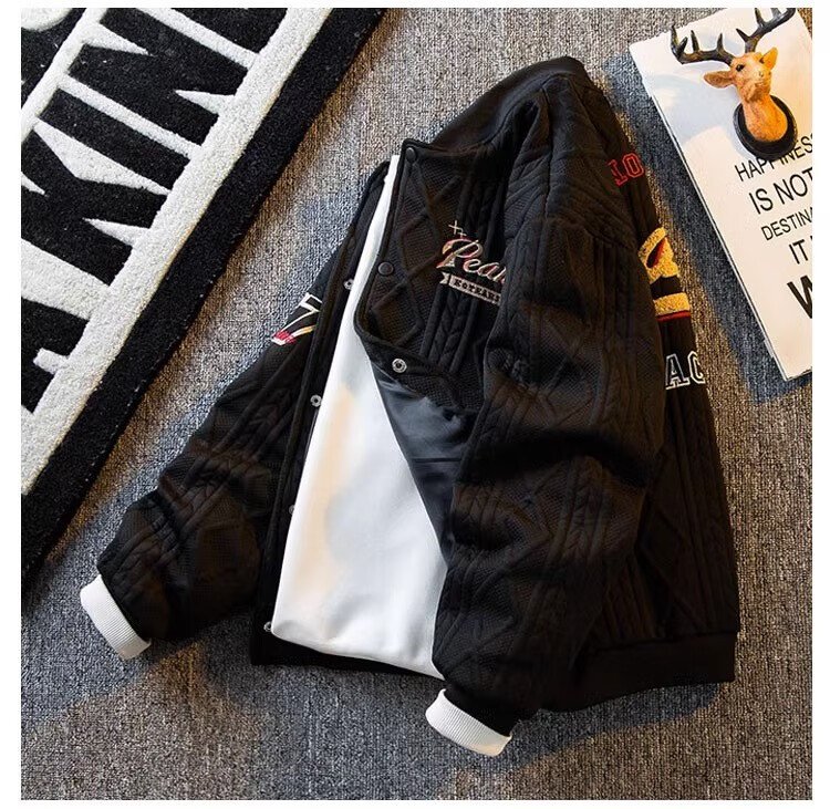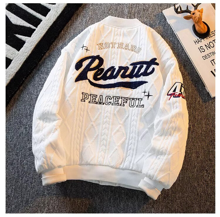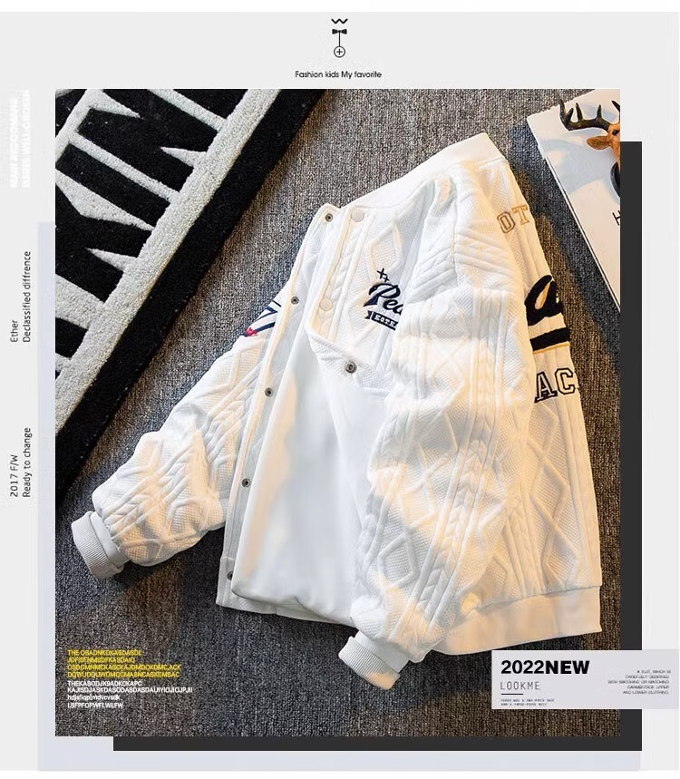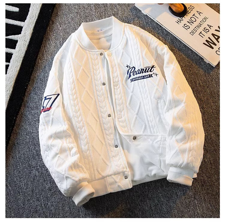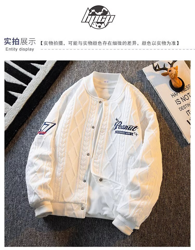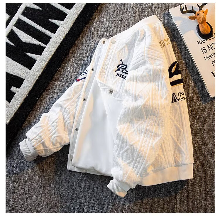 Kuraishi Kazuki trendy American retro baseball jacket men's 2025 new heavyweight spring and autumn men's bomber jacket top white L