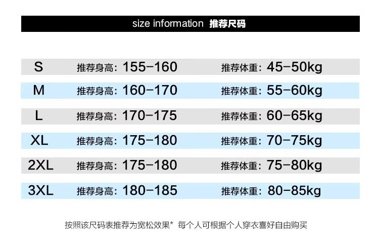 China (cm) 165 / 88-90 170 / 96-98 175 / 108-110 180 / 118-122 185 / 126-130