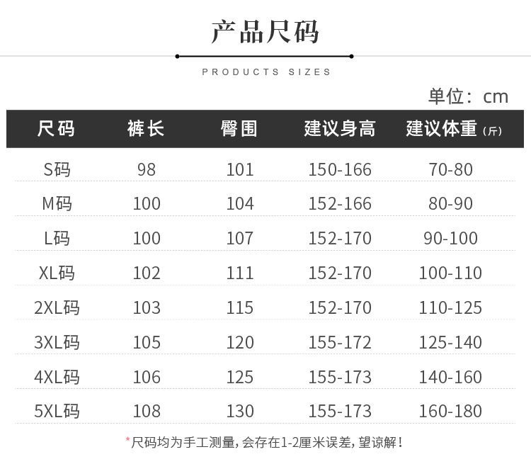 Outseam (cm) 99 cm 101.5 cm 104 cm 106.5 cm 109 cm