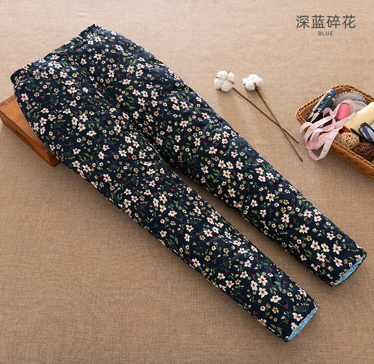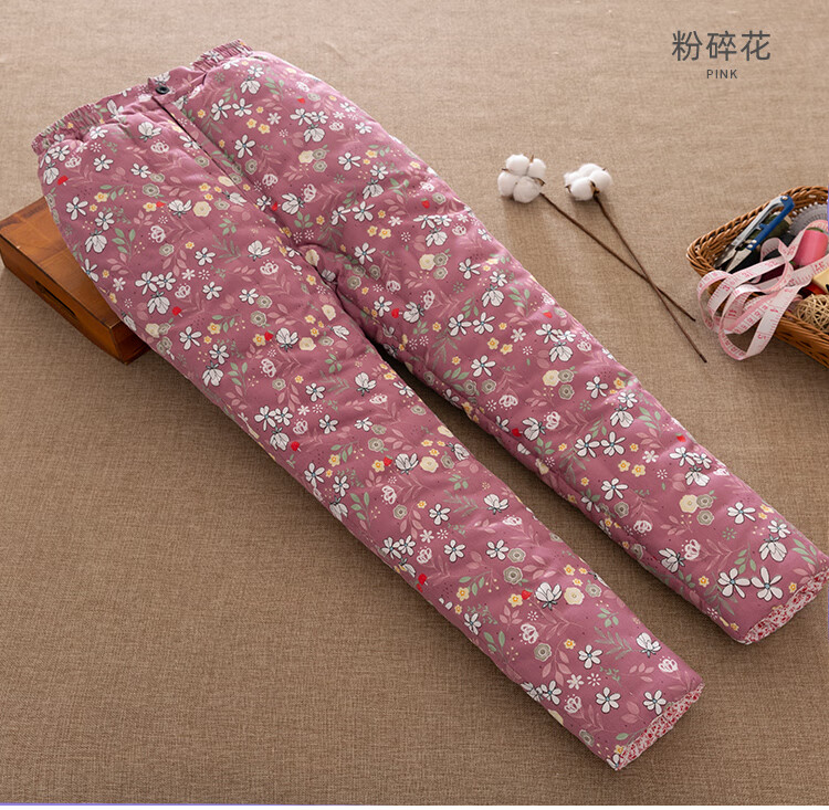 Muqi pure cotton handmade cotton pants for women, thickened high-waisted thermal pants for middle-aged and elderly mothers, loose casual outer wear winter clothes, pink sunflower 3XL height 155~172CM 125~140Jin Jin is equal to 0.5 kg