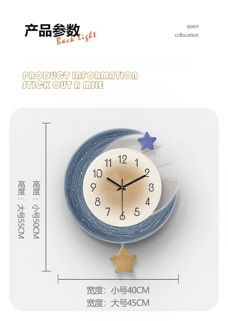 Qiaoran home clock wall clock living room 2024 new simple modern atmosphere home restaurant fashion creative clock T319/small size 40X50 cm