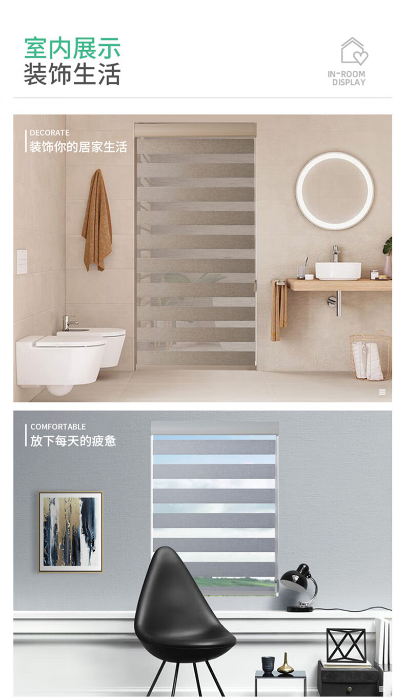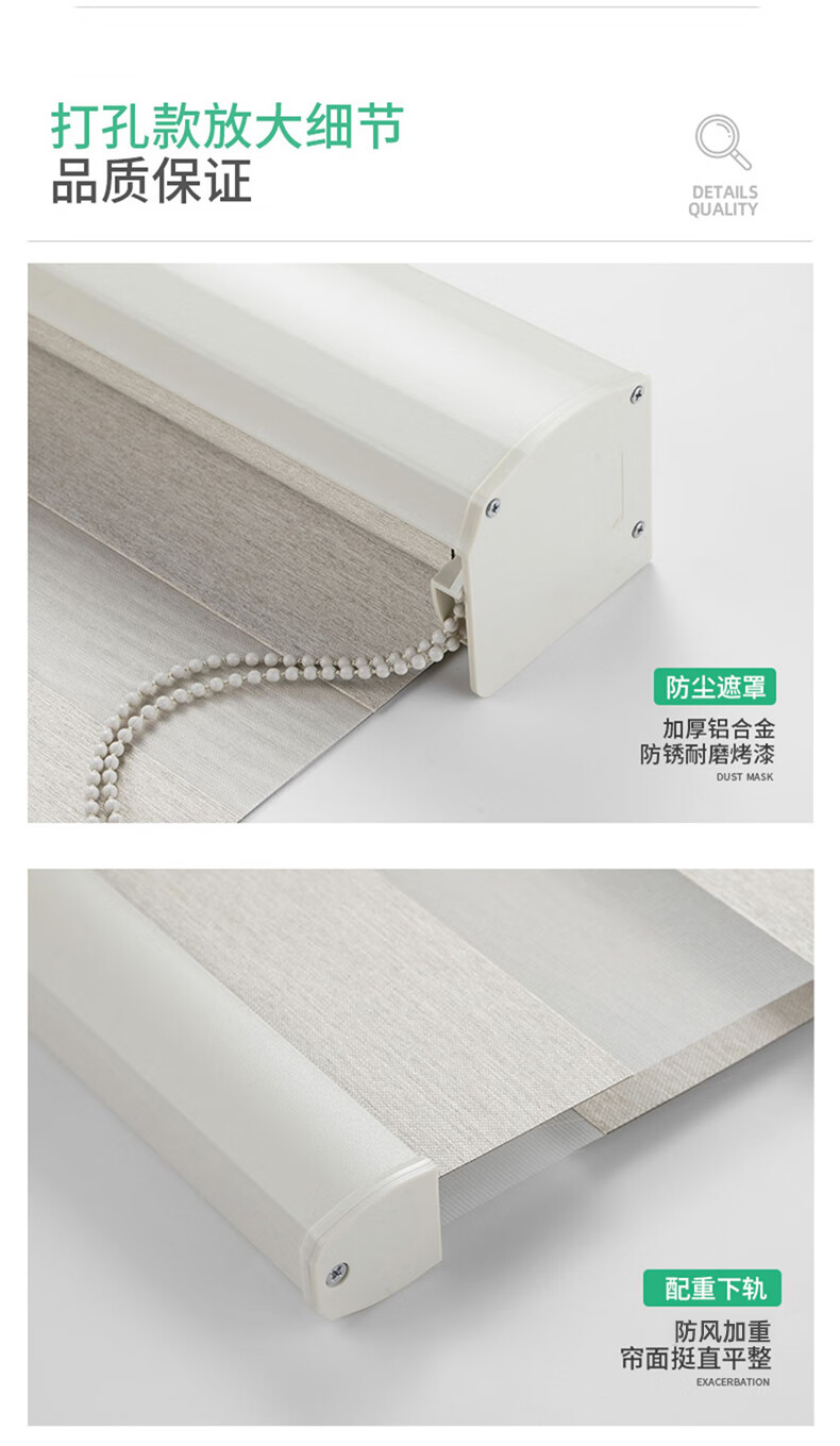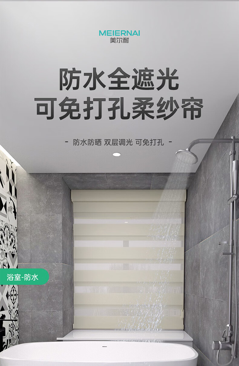 Mernai soft gauze roller blind curtain waterproof and environmentally friendly lifting blackout bathroom bedroom bathroom fabric luxury curtain cover customization 8023 luxury thickened full blackout beige no punching type / per square