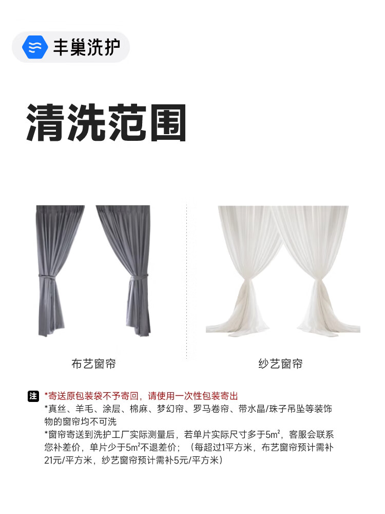 Fengchao Cleaning and Care Curtain Cleaning Fabric/Gauze Curtains Free Pickup and Delivery by SF Express High Temperature Disinfection and Sterilization Door-to-Door Curtain Washing Service Door-to-door Cleaning Two Pieces of Fabric Curtains Click to customize and select the door-to-door time