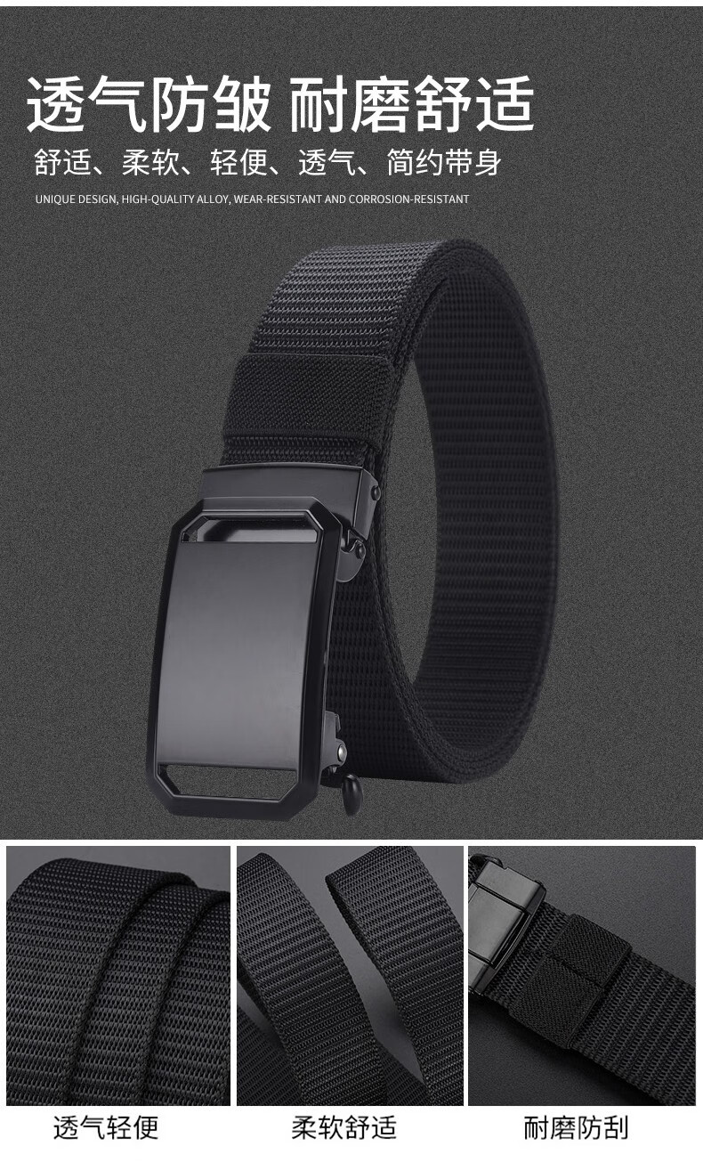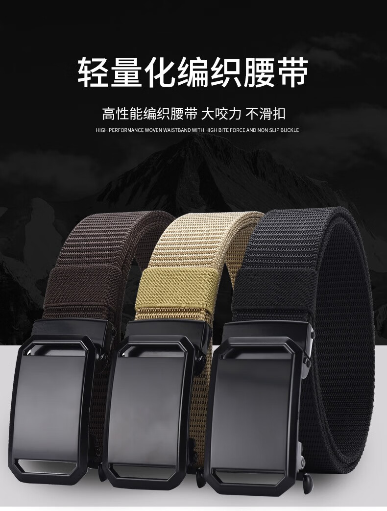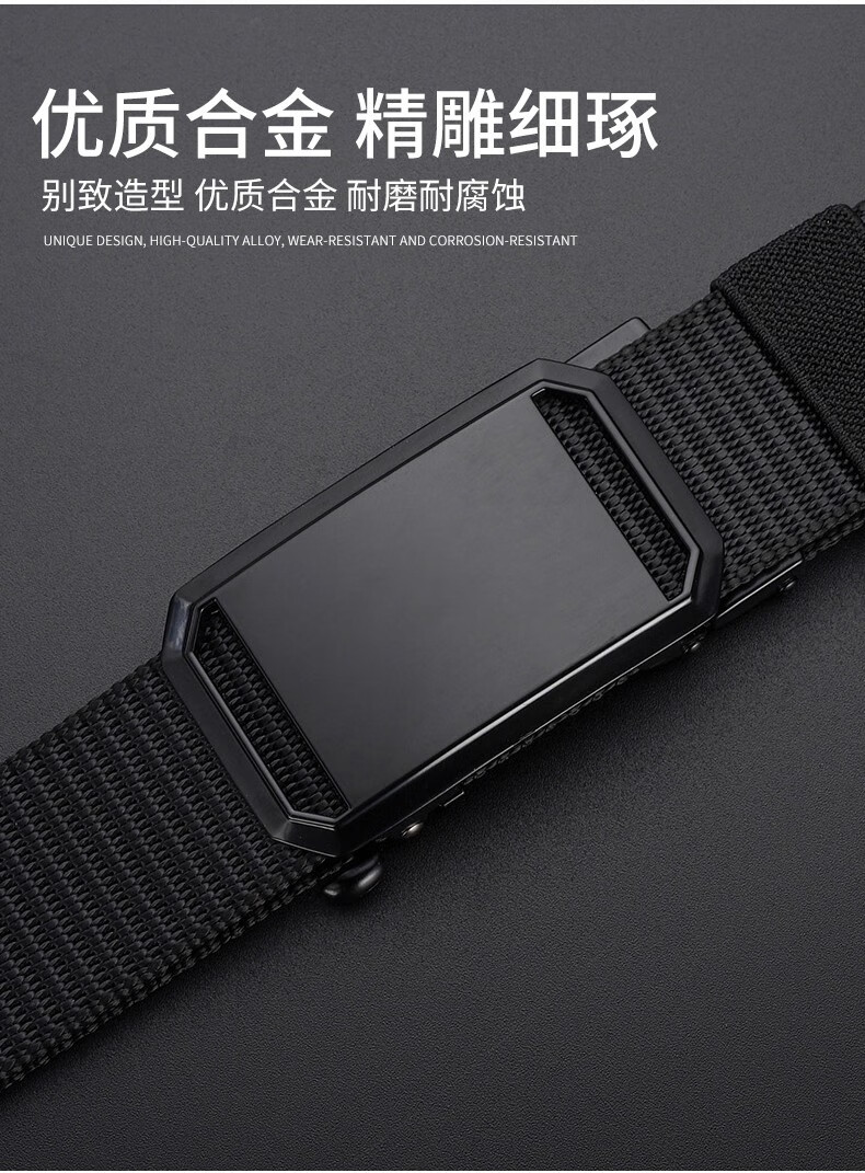 CALWAN KLSEN belt men's tactical functional belt work wear trendy casual automatic buckle simple versatile young man military training pants youth black face buckle black belt body