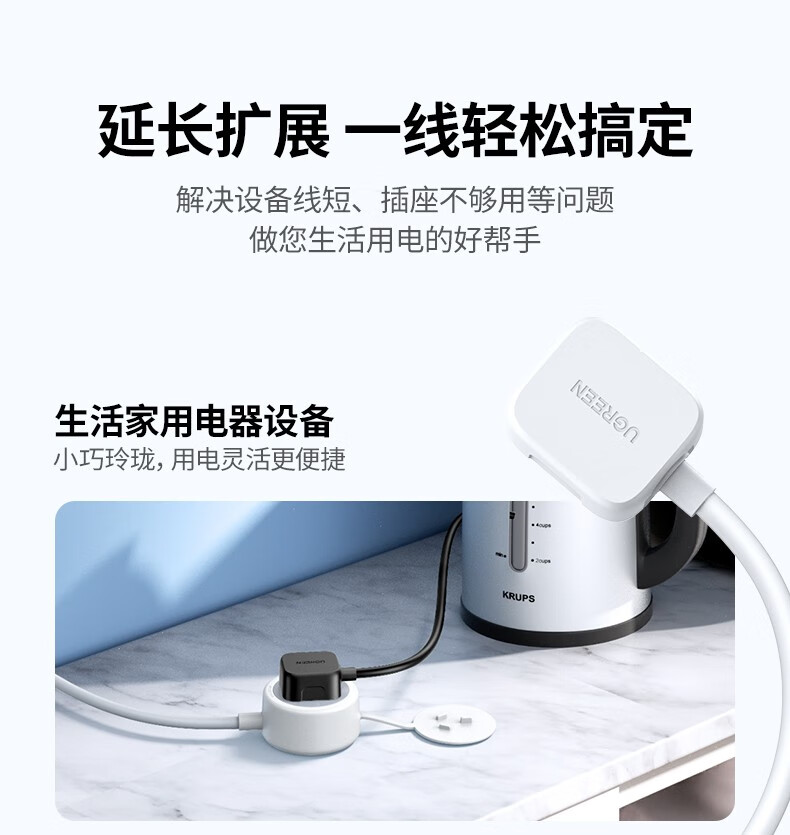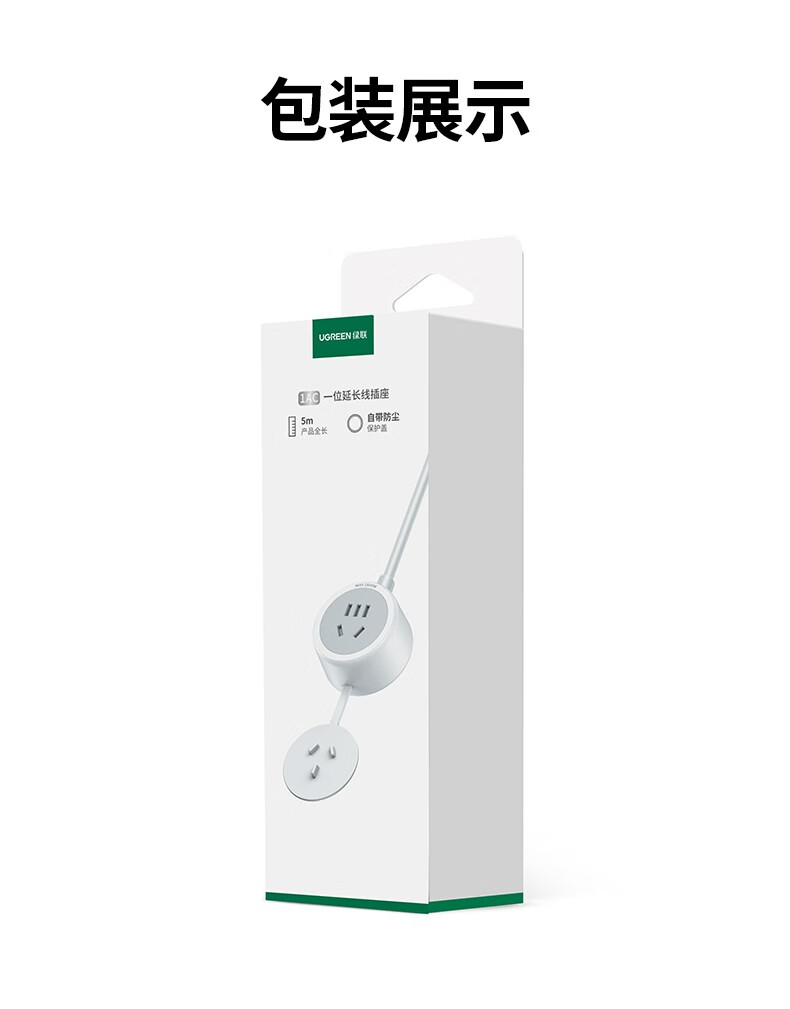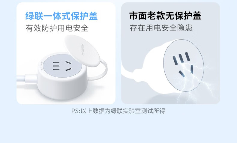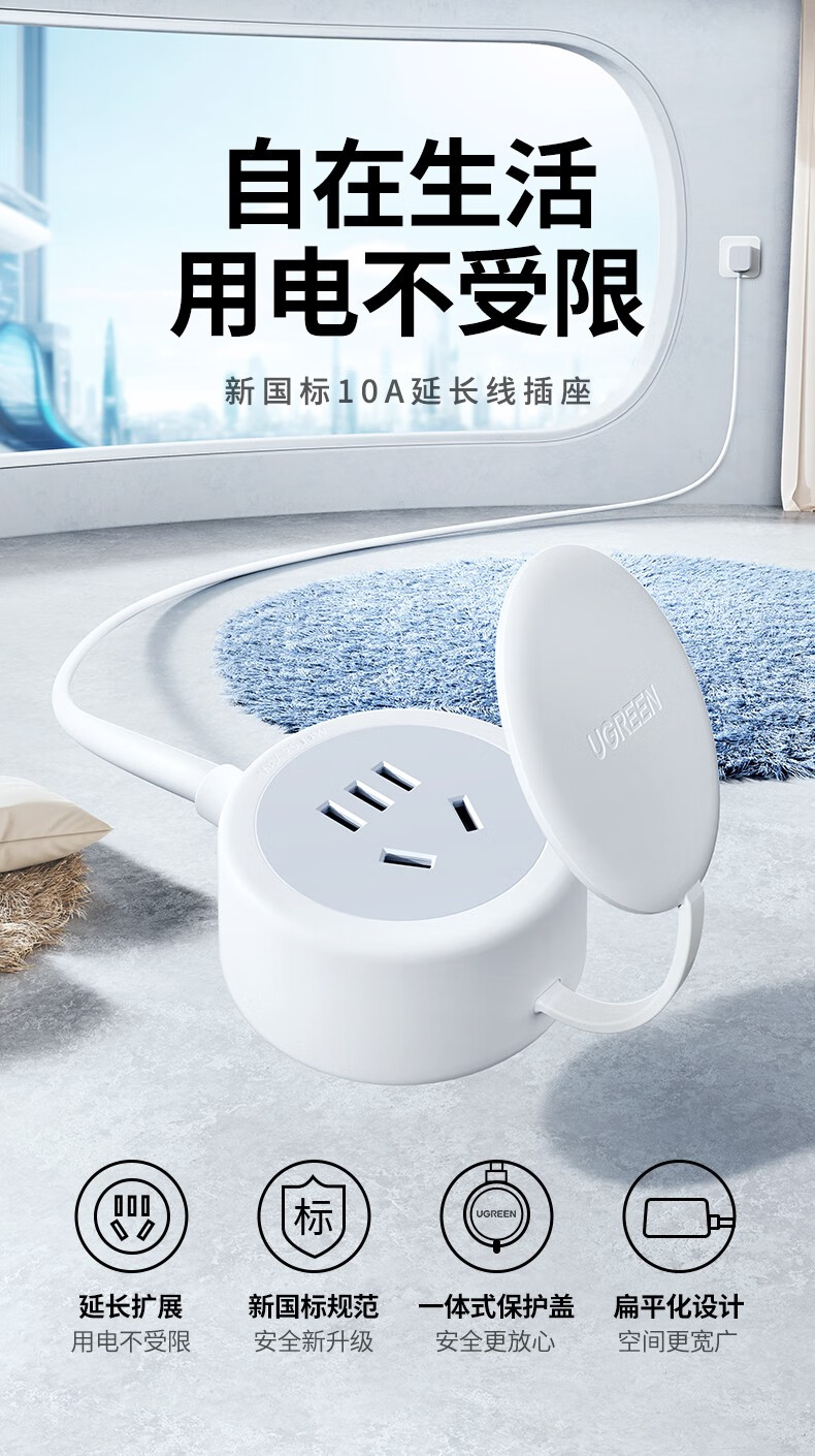 Greenlink power socket extension cord/socket strip/multi-function mini power strip/terminal strip/pull cord board/dormitory strip electric vehicle charging three holes with dust cover, kitchen ready, total length 1 meter, 10A
