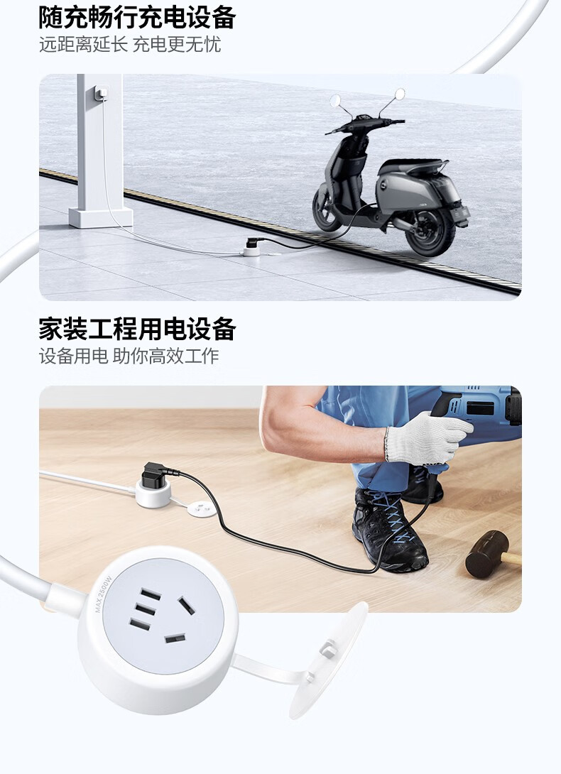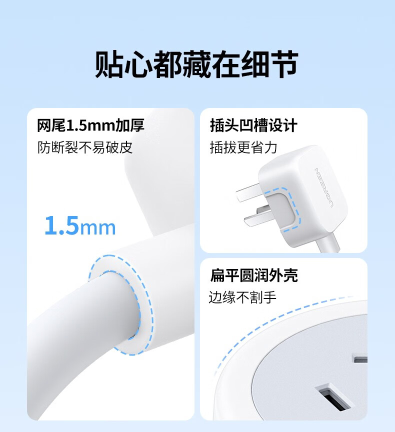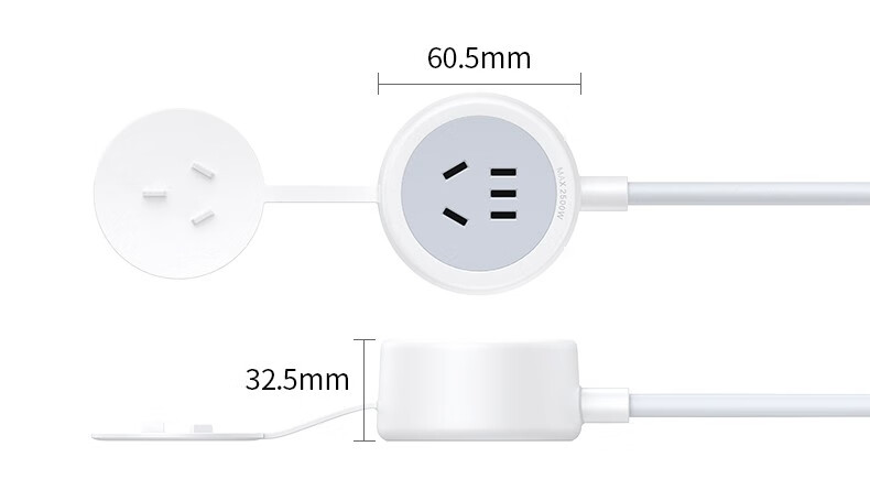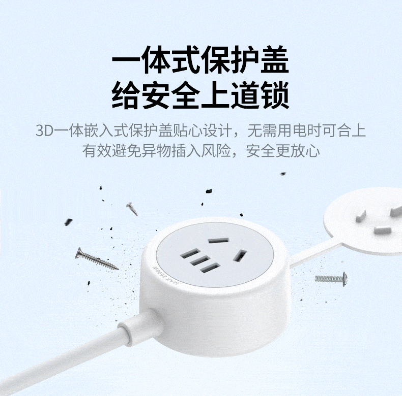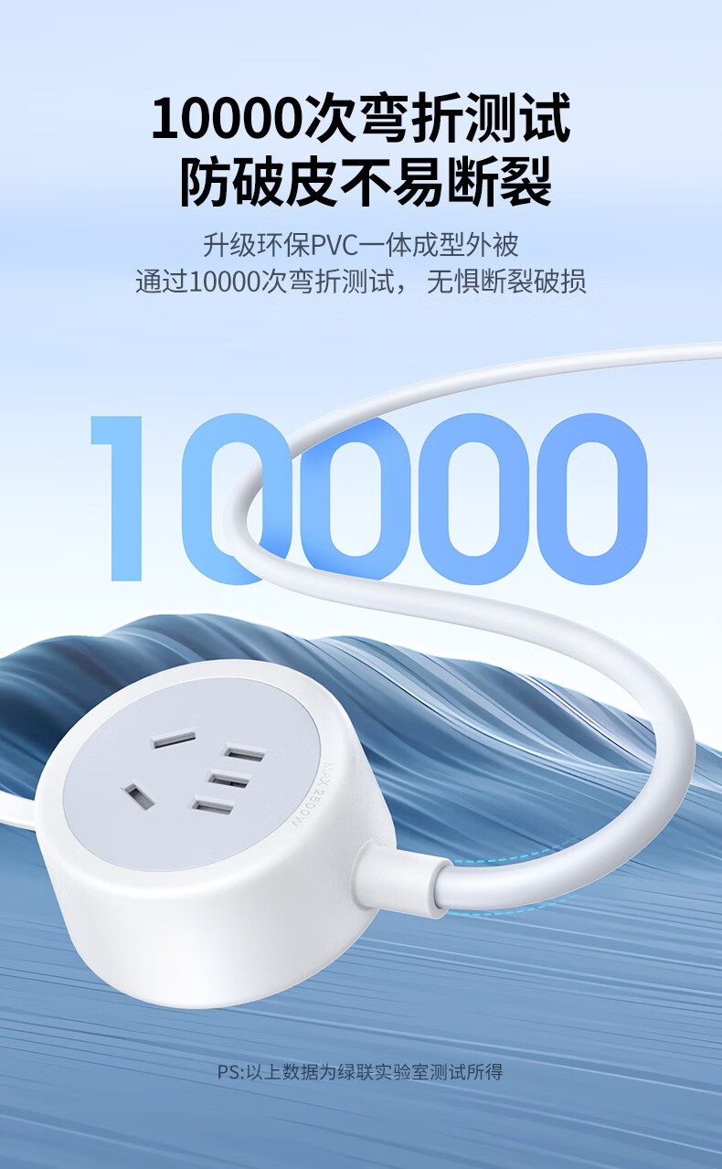 Greenlink power socket extension cord/socket strip/multi-function mini power strip/terminal strip/pull cord board/dormitory strip electric vehicle charging three holes with dust cover, kitchen ready, total length 1 meter, 10A