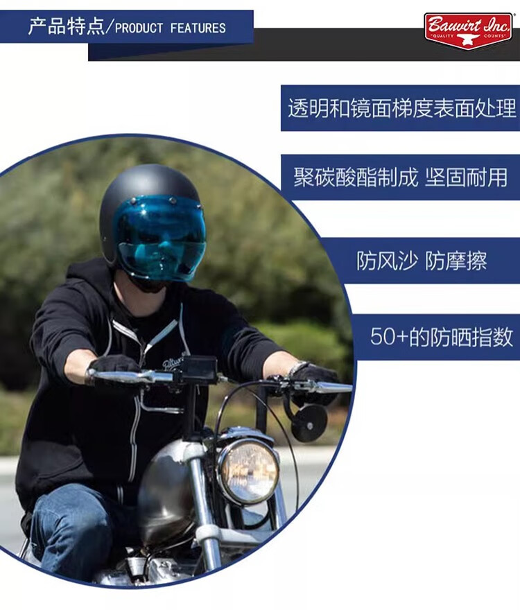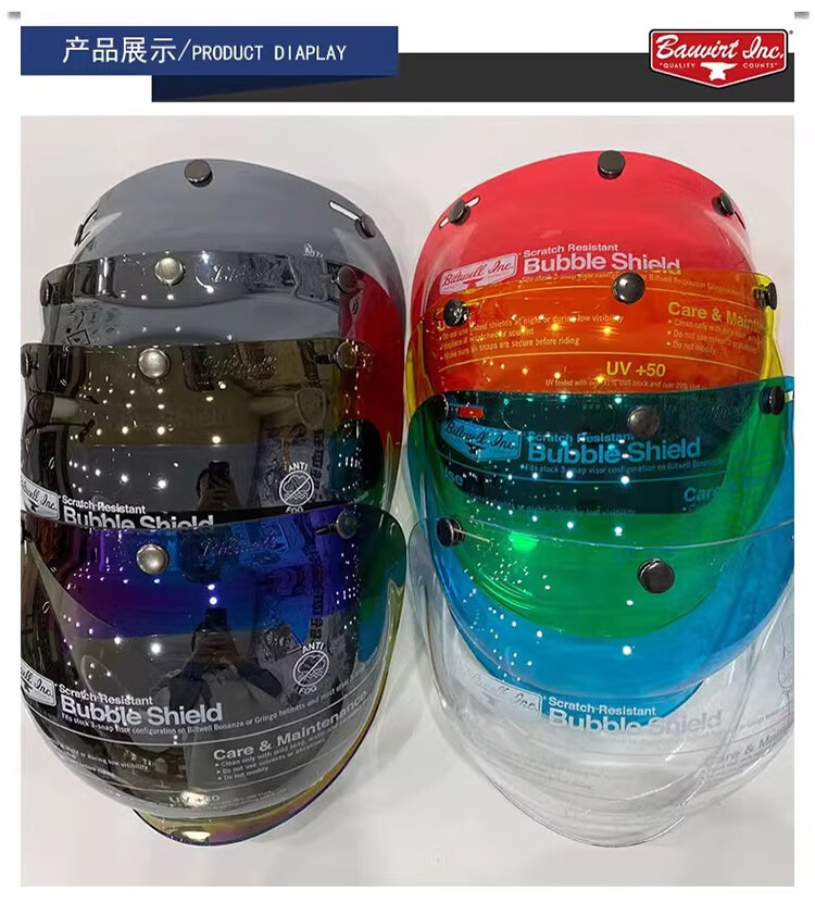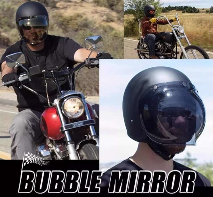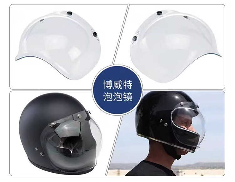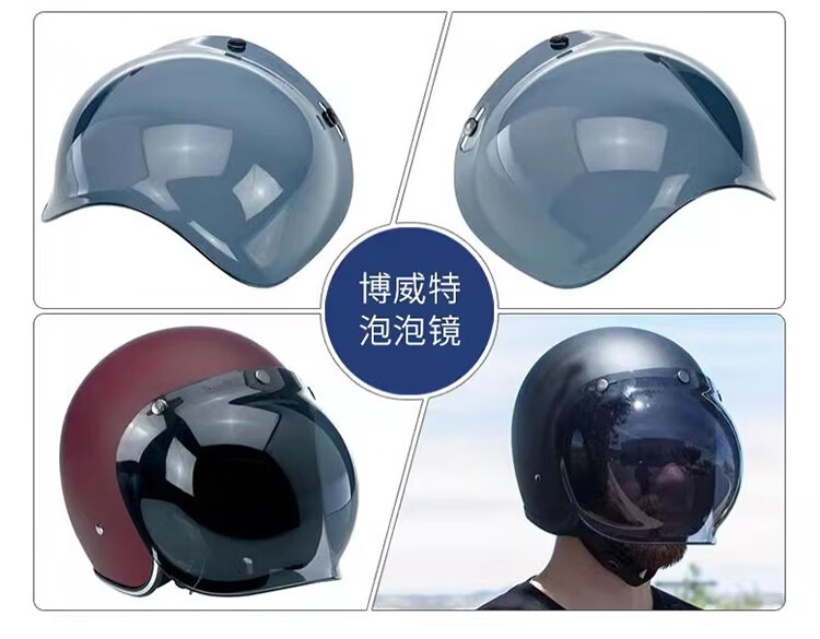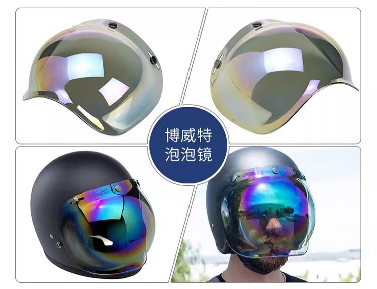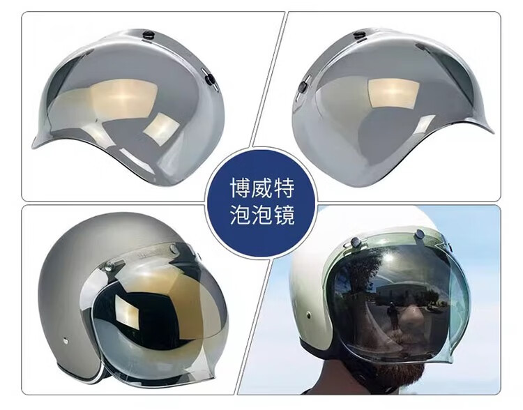 BELL bubble mirror helmet retro half helmet lens three-quarter helmet sun protection mask windshield goggles three-button silver-plated free transparent bracket