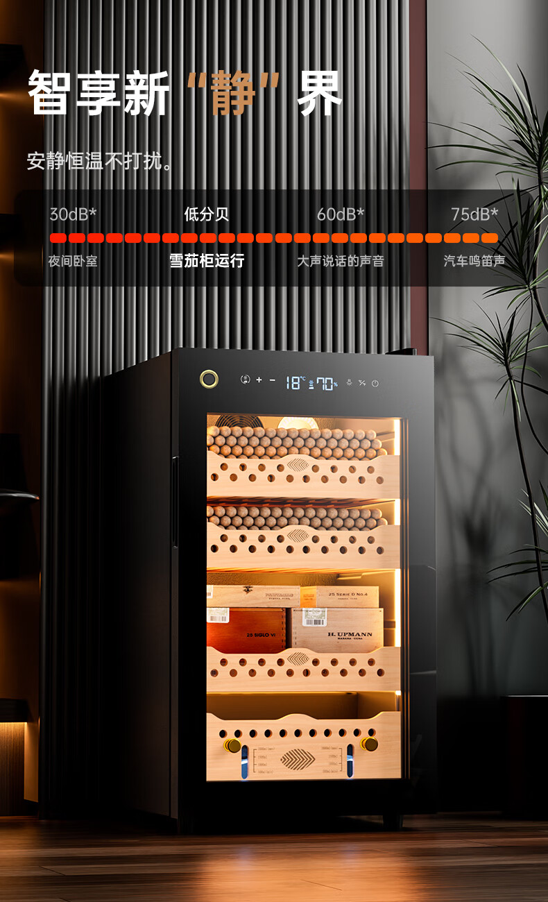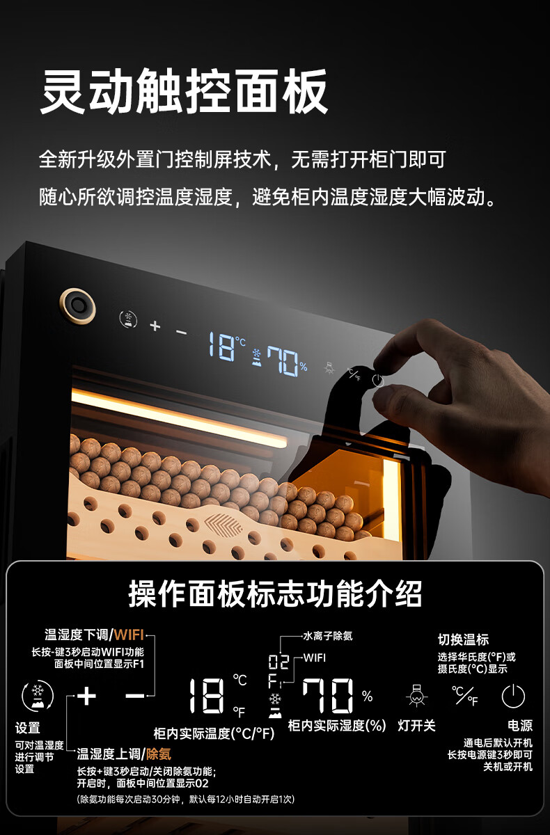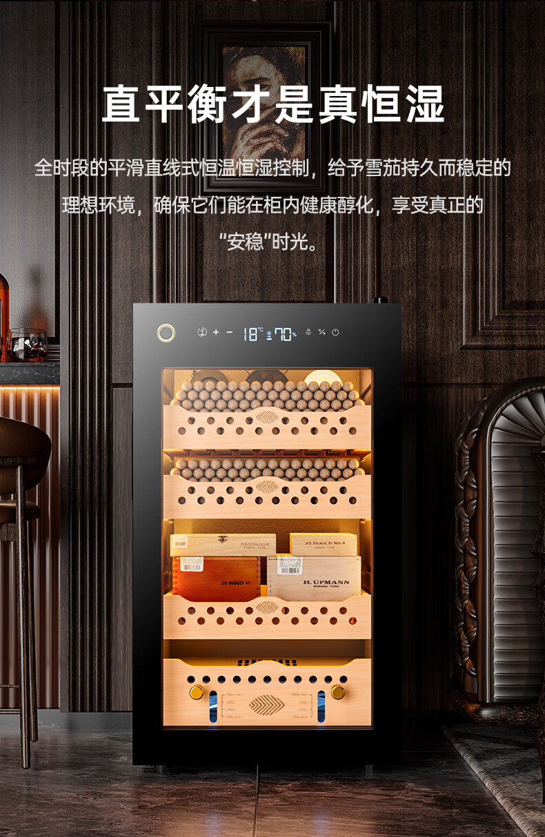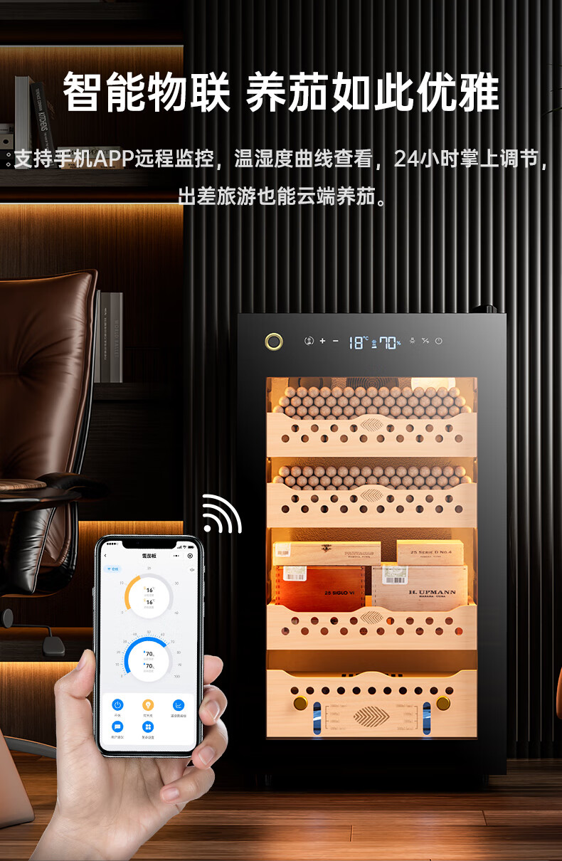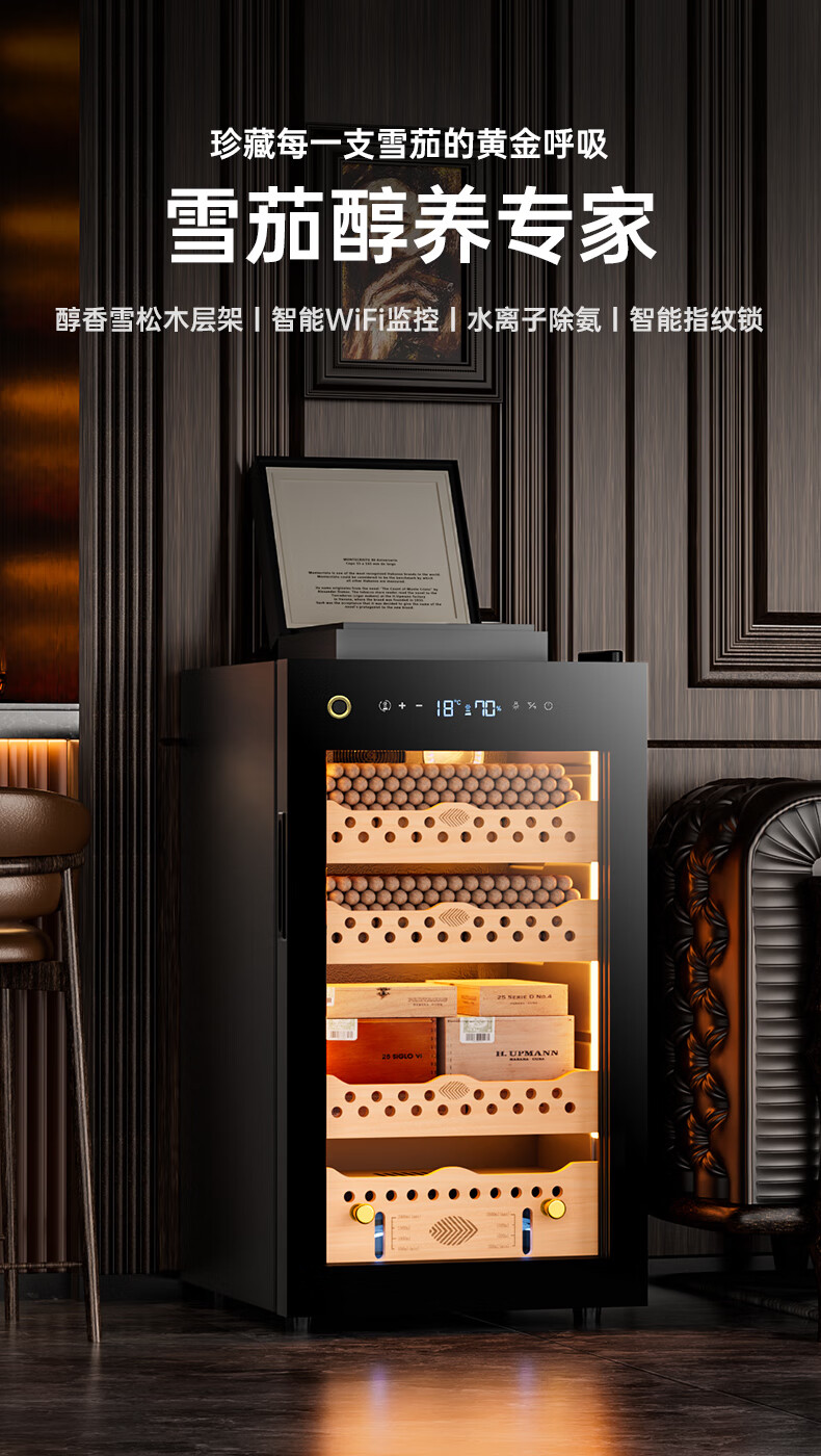 Fuke 70C cigar cabinet compressor energy-saving constant temperature and humidity alcoholized cigar water ion purification ammonia WiFi remote intelligent control fingerprint lock natural cedar wood shelf cigar cabinet 70C cigar basket model
