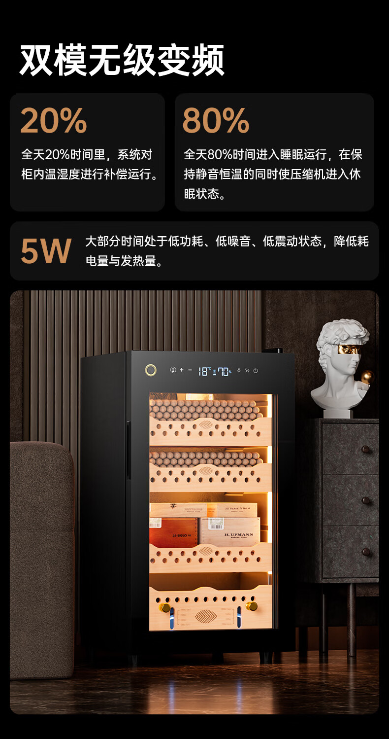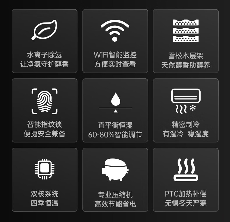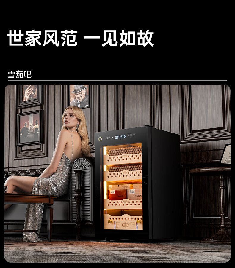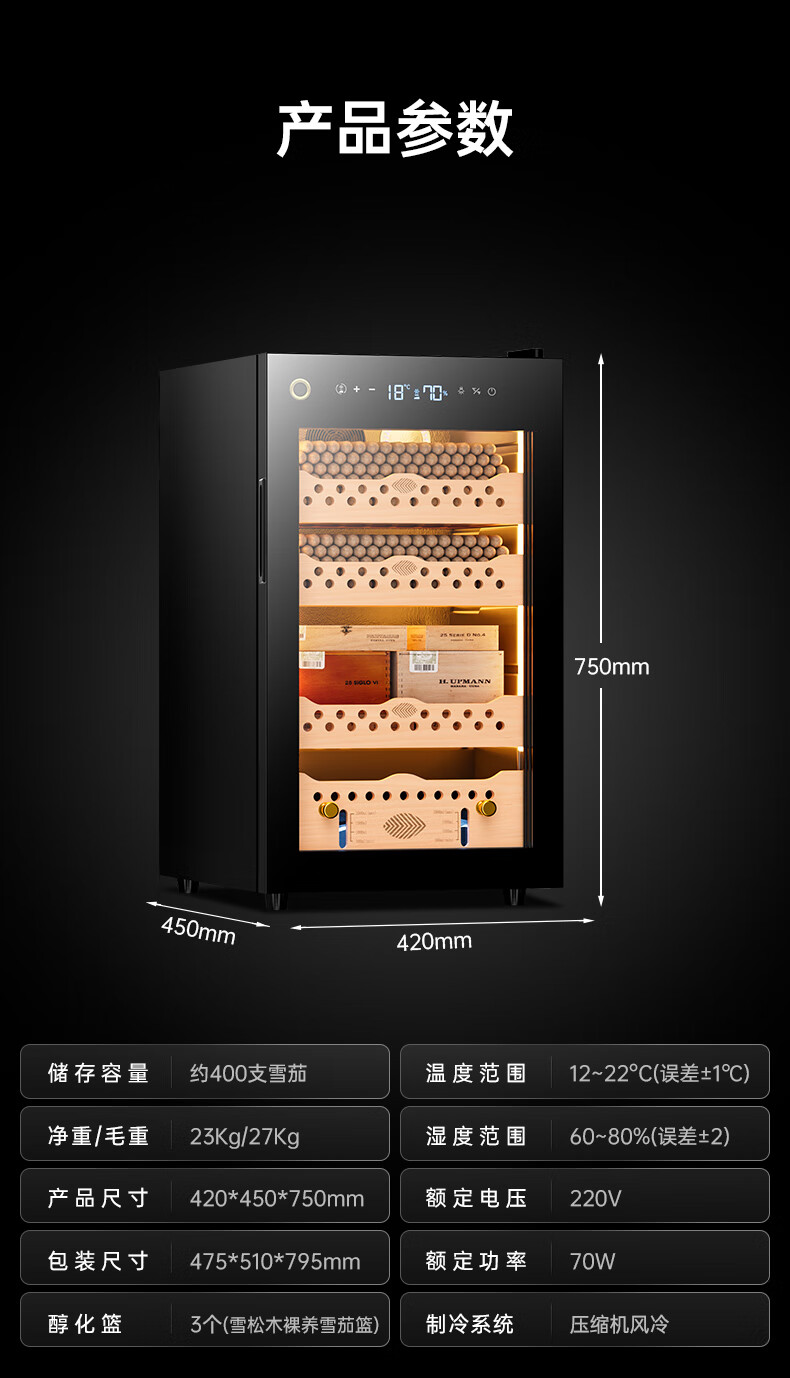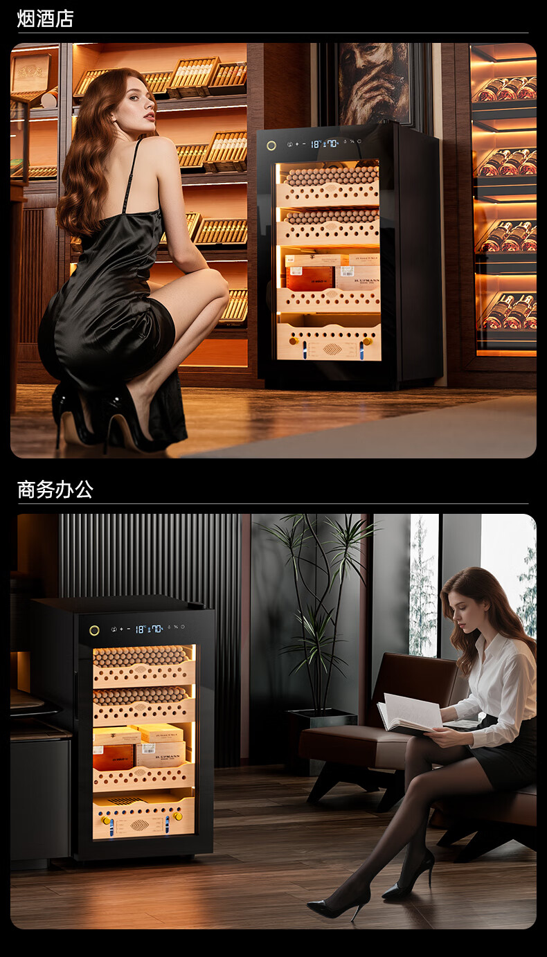Fuke 70C cigar cabinet compressor energy-saving constant temperature and humidity alcoholized cigar water ion purification ammonia WiFi remote intelligent control fingerprint lock natural cedar wood shelf cigar cabinet 70C cigar basket model