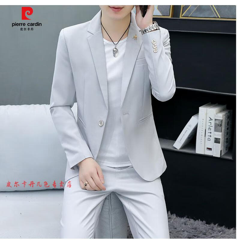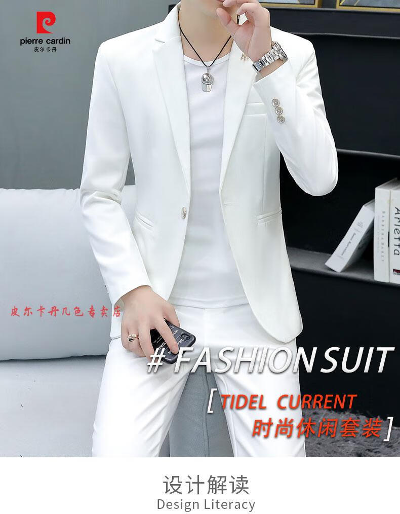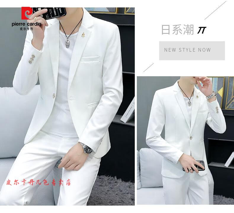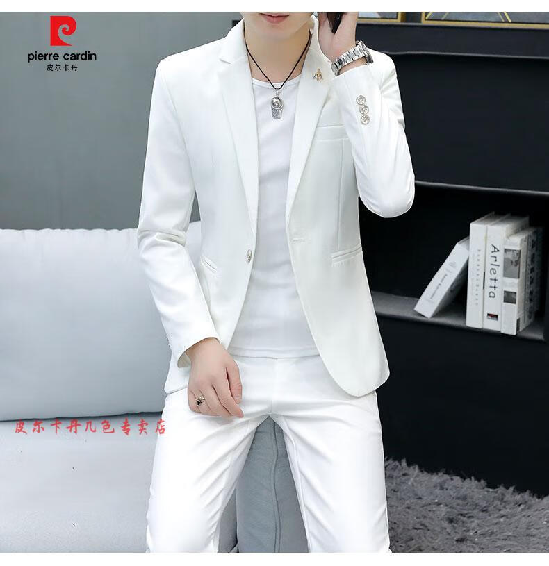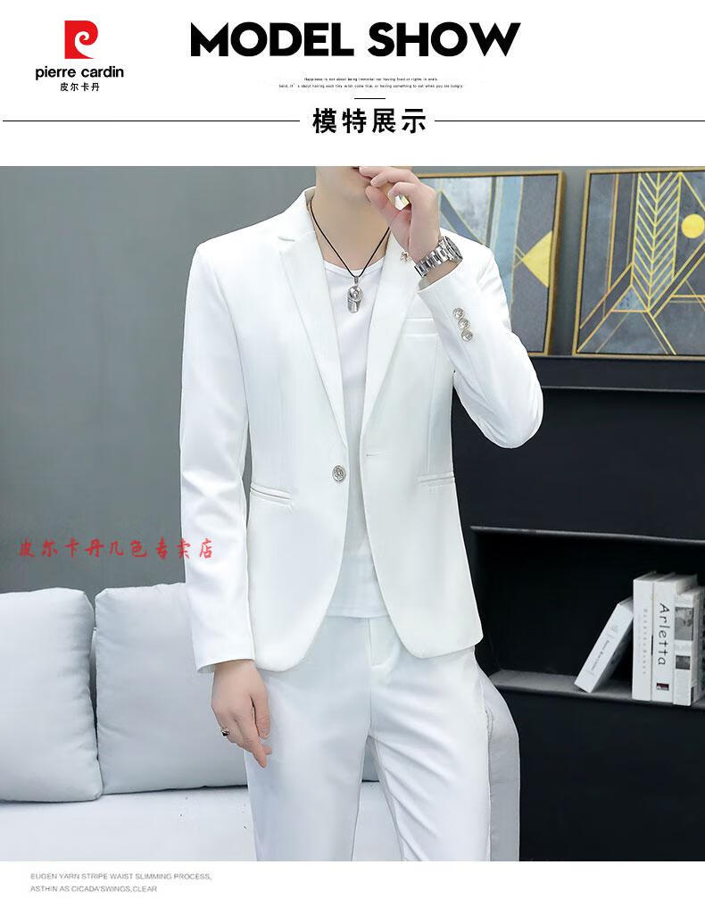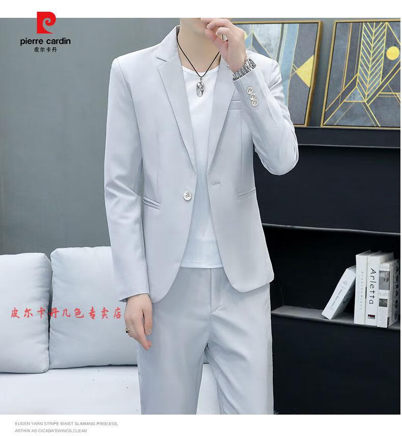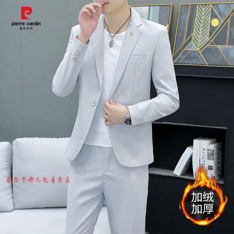 Pierre Cardin Korean style casual spring and autumn suit men's slim business formal suit groom handsome British casual small suit for men white - velvet thickened (three-piece suit - top + pants 4XL 165-175Jin Jin equals 0.5 kg