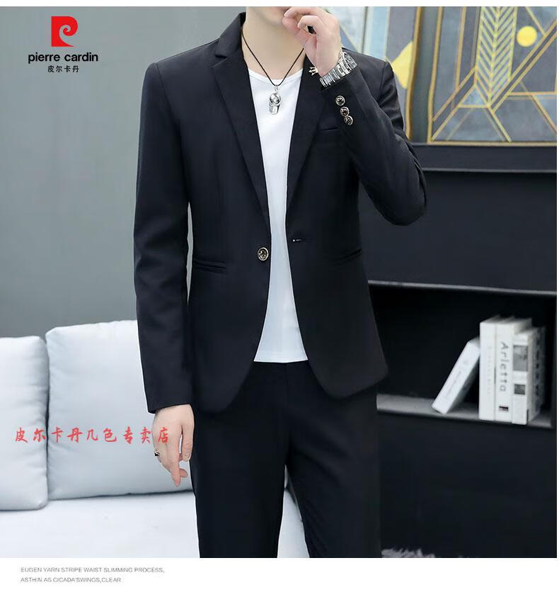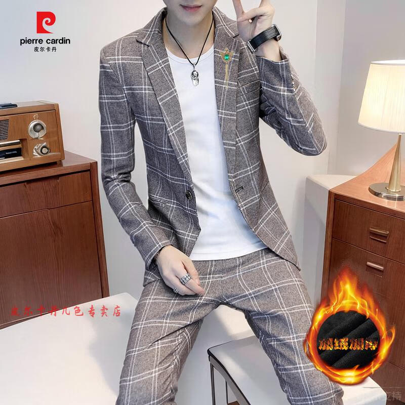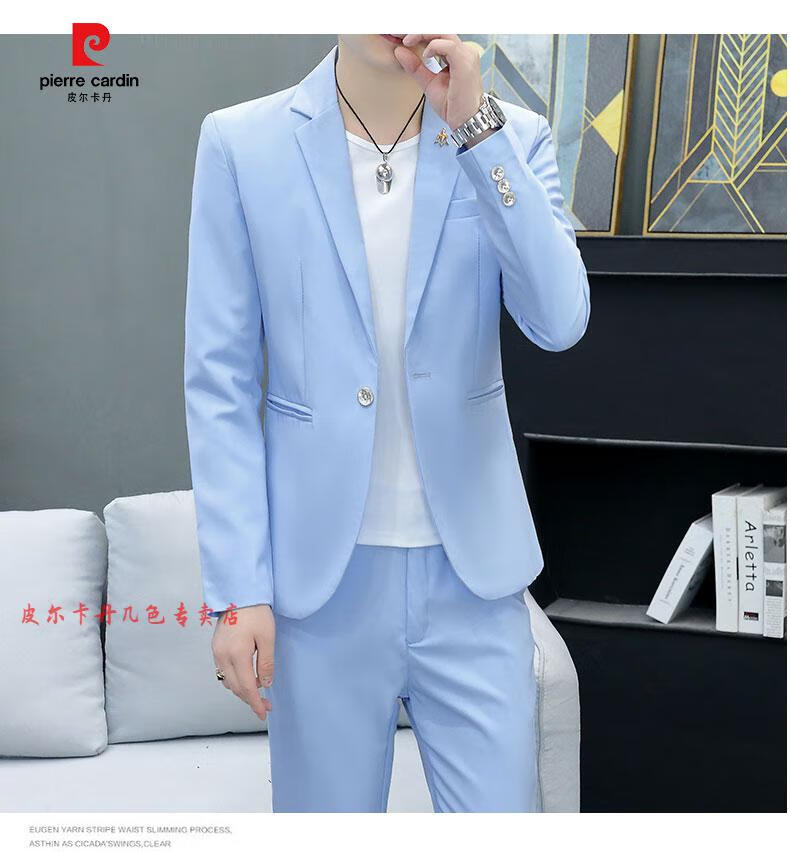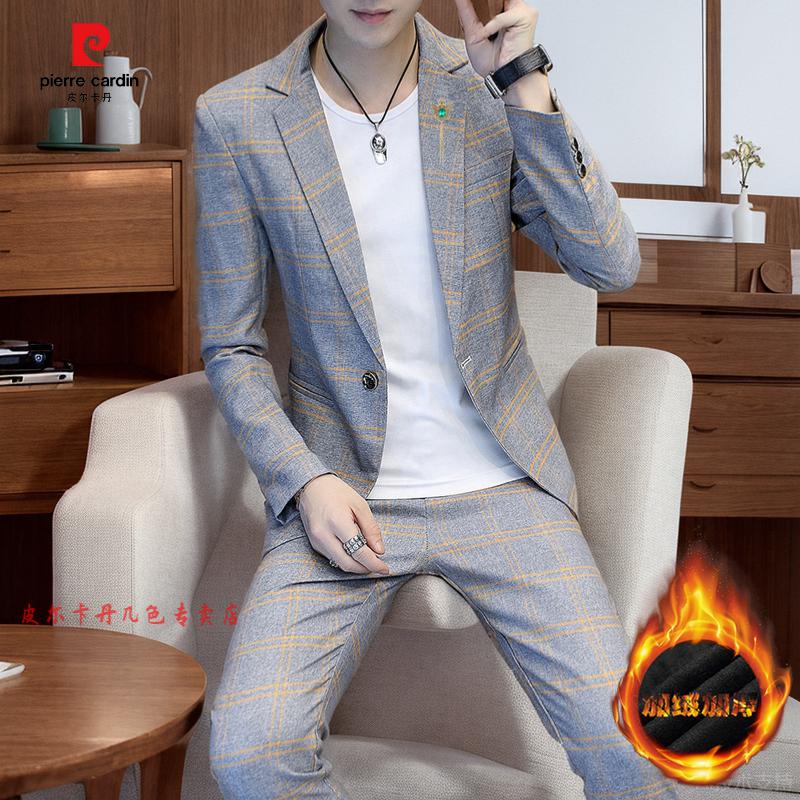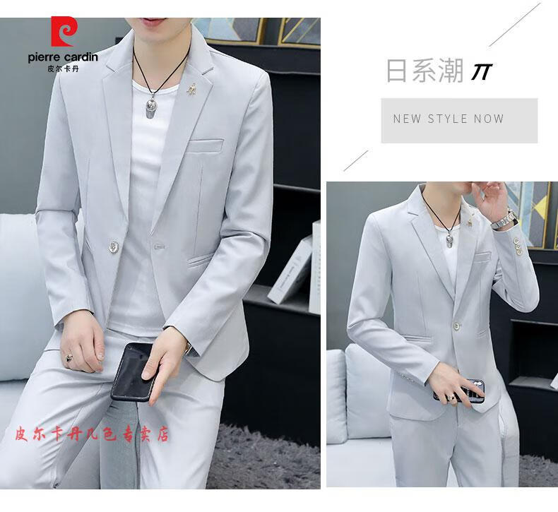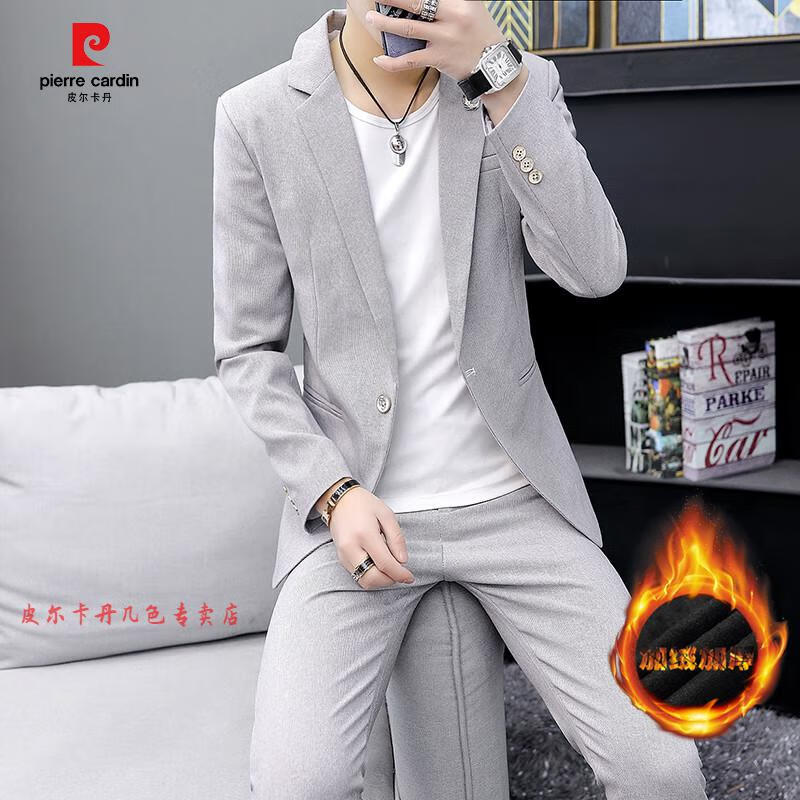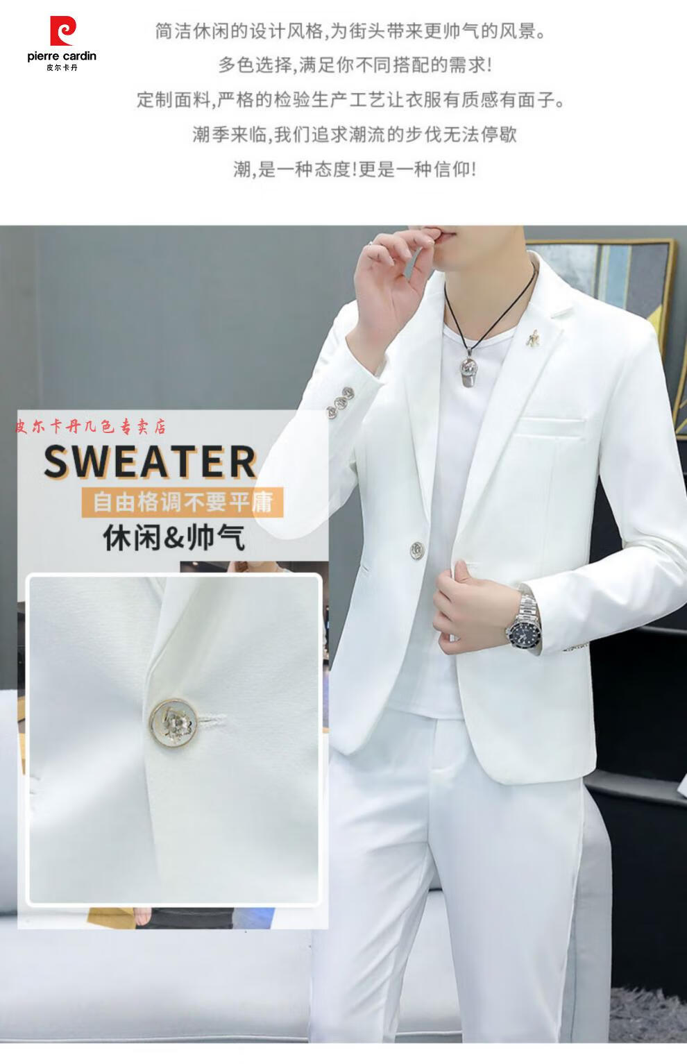 Pierre Cardin Korean style casual spring and autumn suit men's slim business formal suit groom handsome British casual small suit for men white - velvet thickened (three-piece suit - top + pants 4XL 165-175Jin Jin equals 0.5 kg