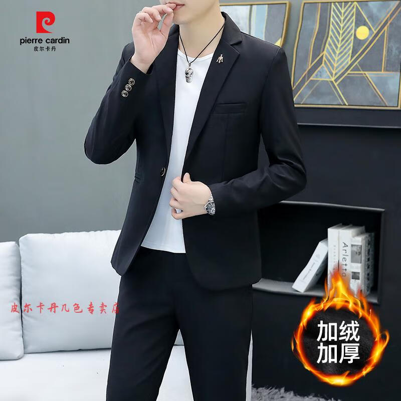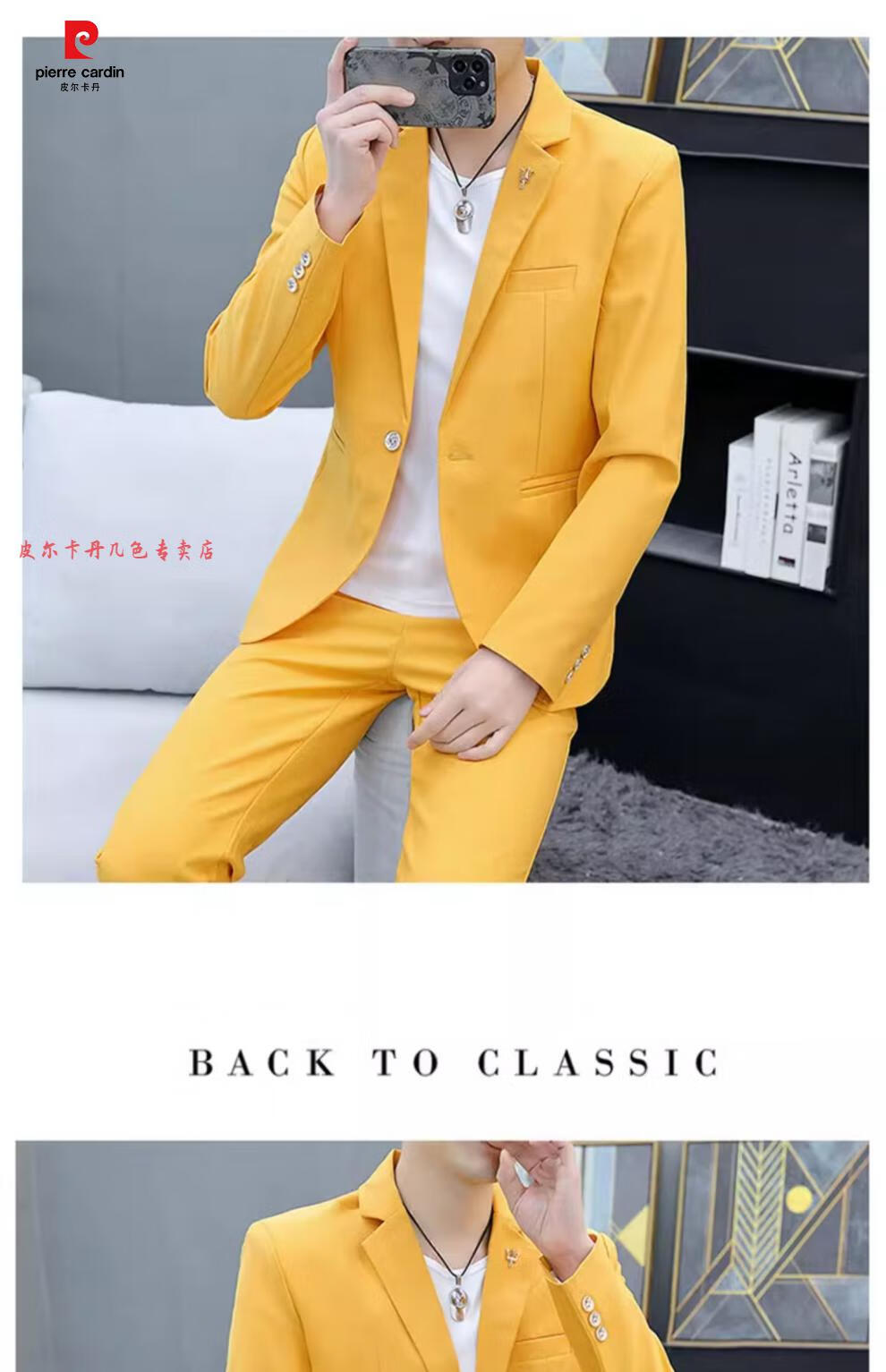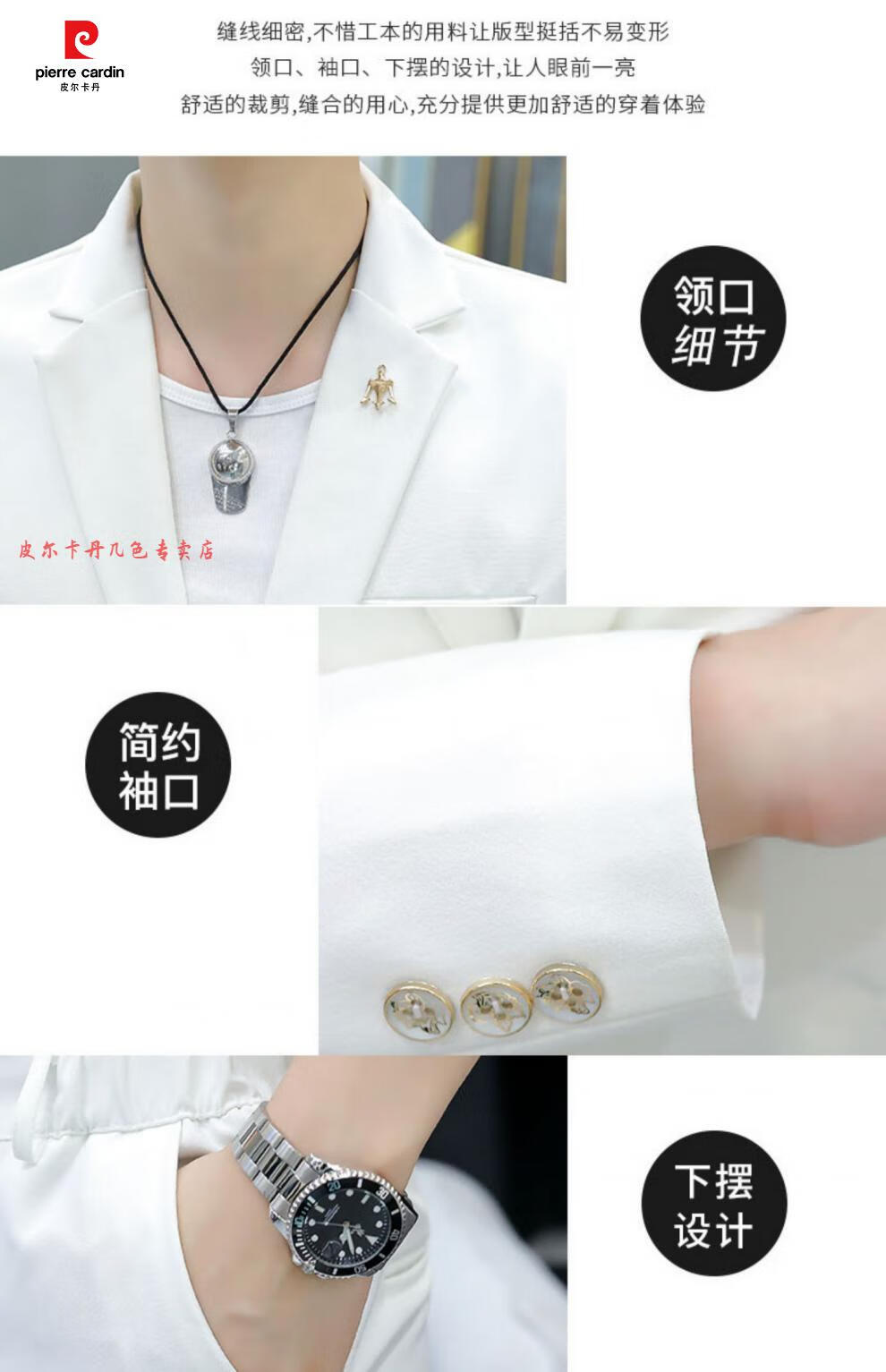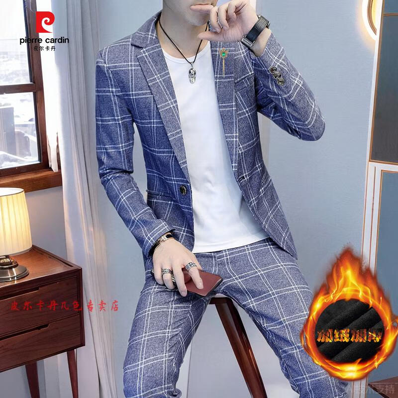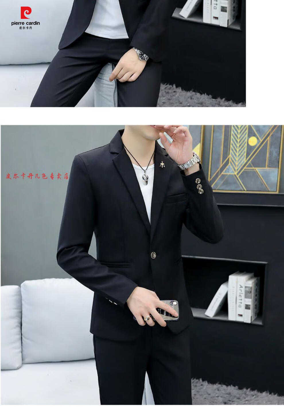 Pierre Cardin Korean style casual spring and autumn suit men's slim business formal suit groom handsome British casual small suit for men white - velvet thickened (three-piece suit - top + pants 4XL 165-175Jin Jin equals 0.5 kg