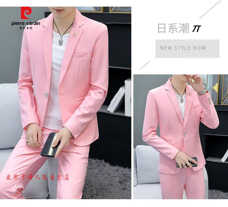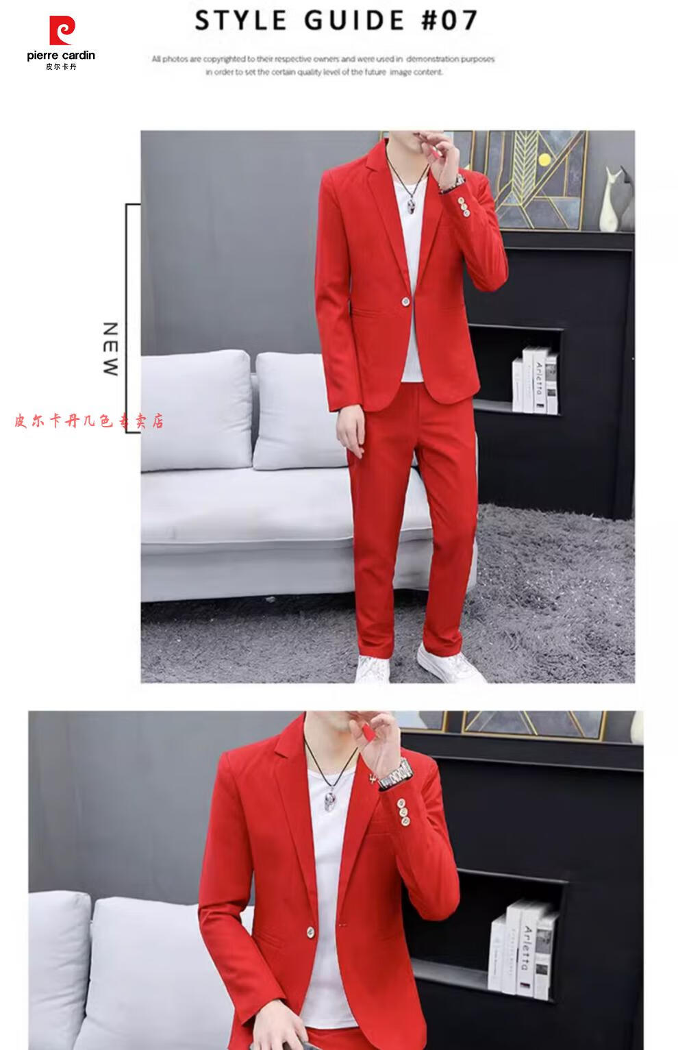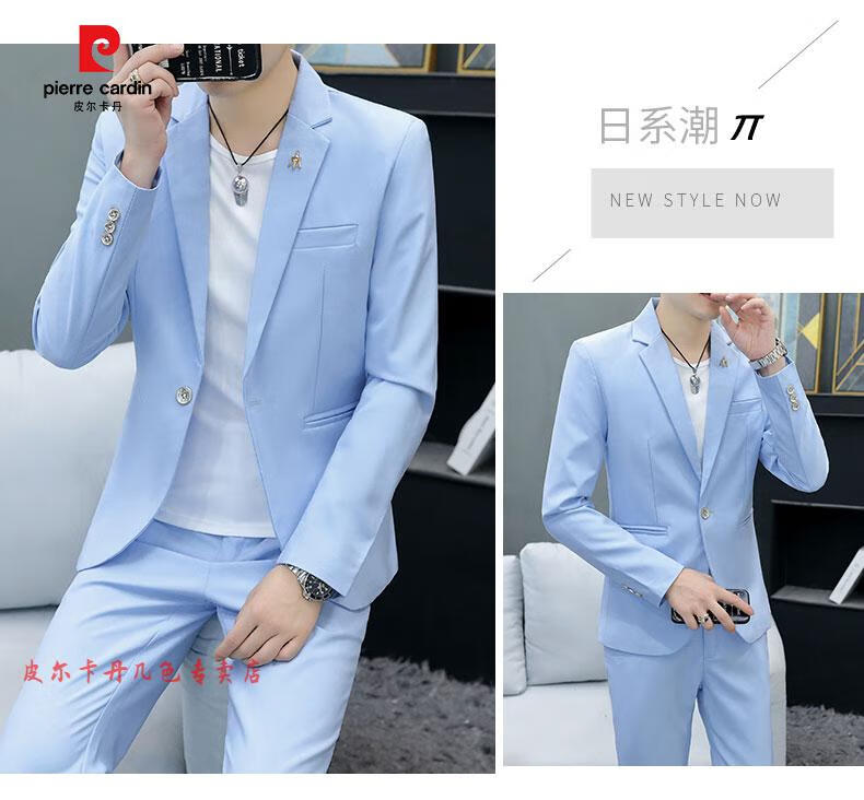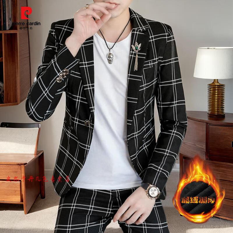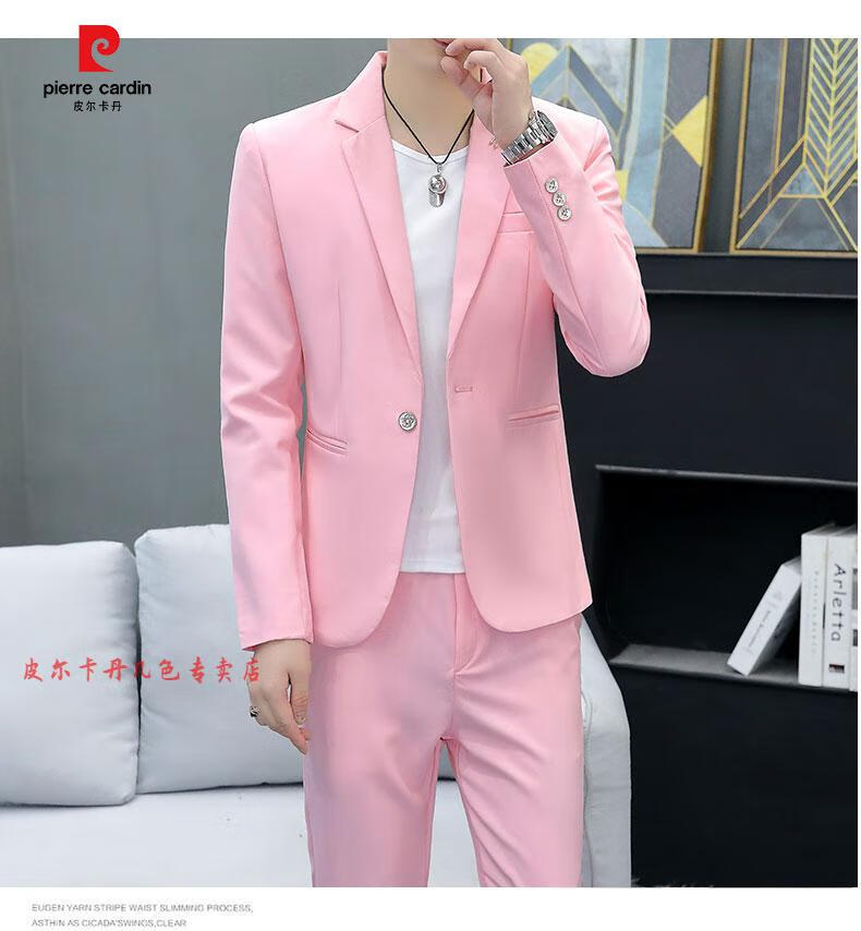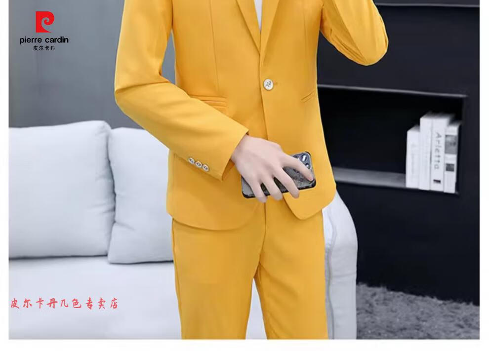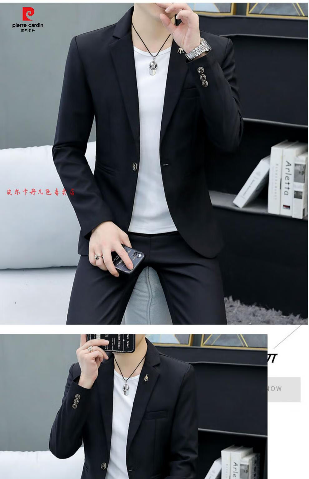 Pierre Cardin Korean style casual spring and autumn suit men's slim business formal suit groom handsome British casual small suit for men white - velvet thickened (three-piece suit - top + pants 4XL 165-175Jin Jin equals 0.5 kg