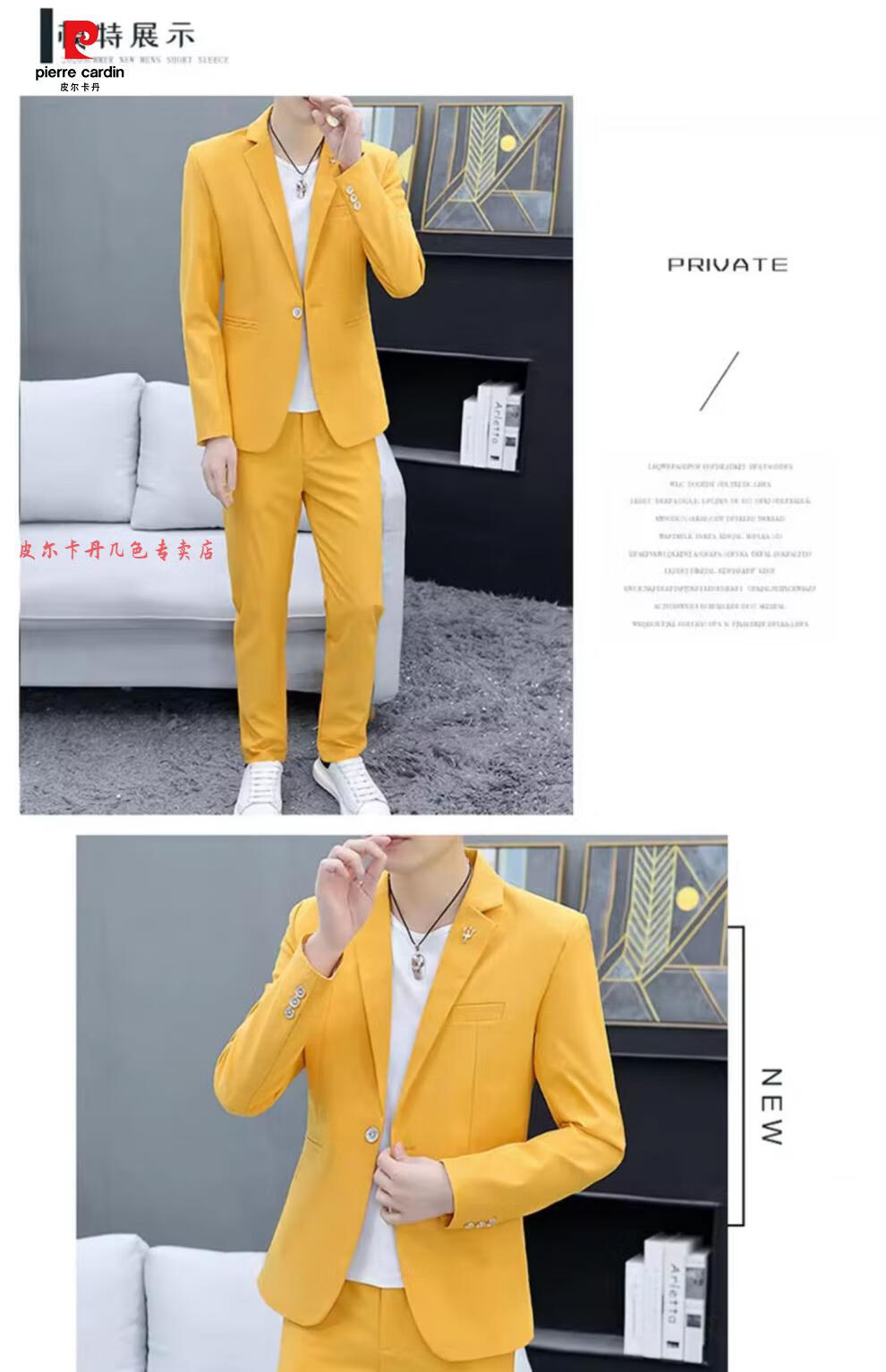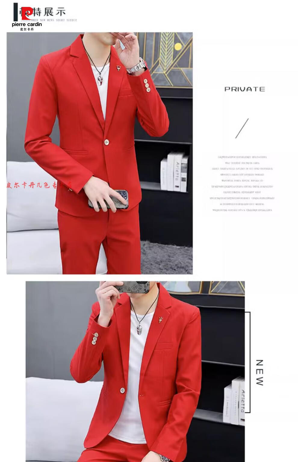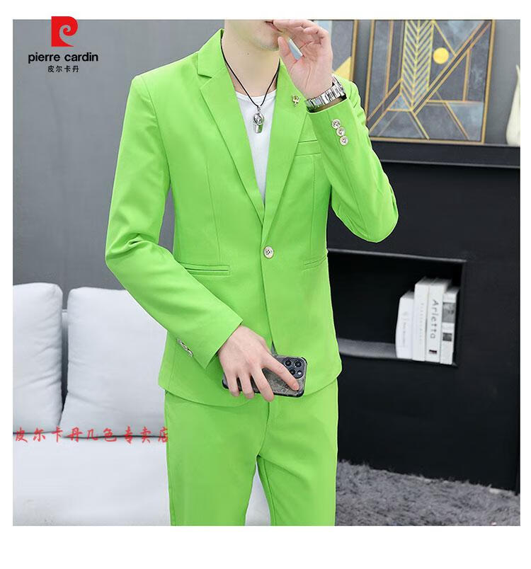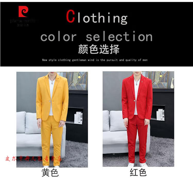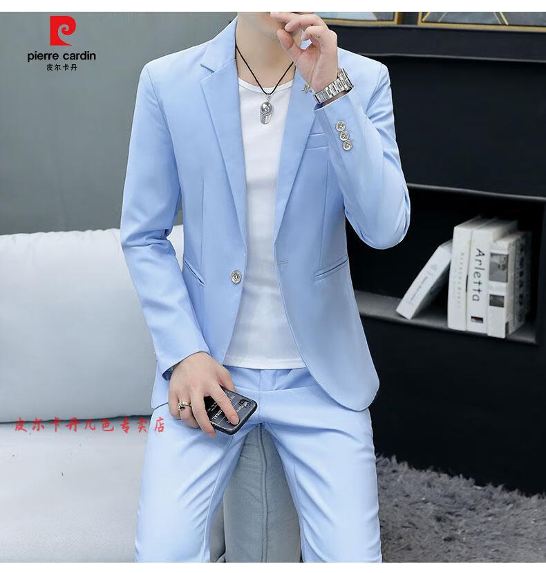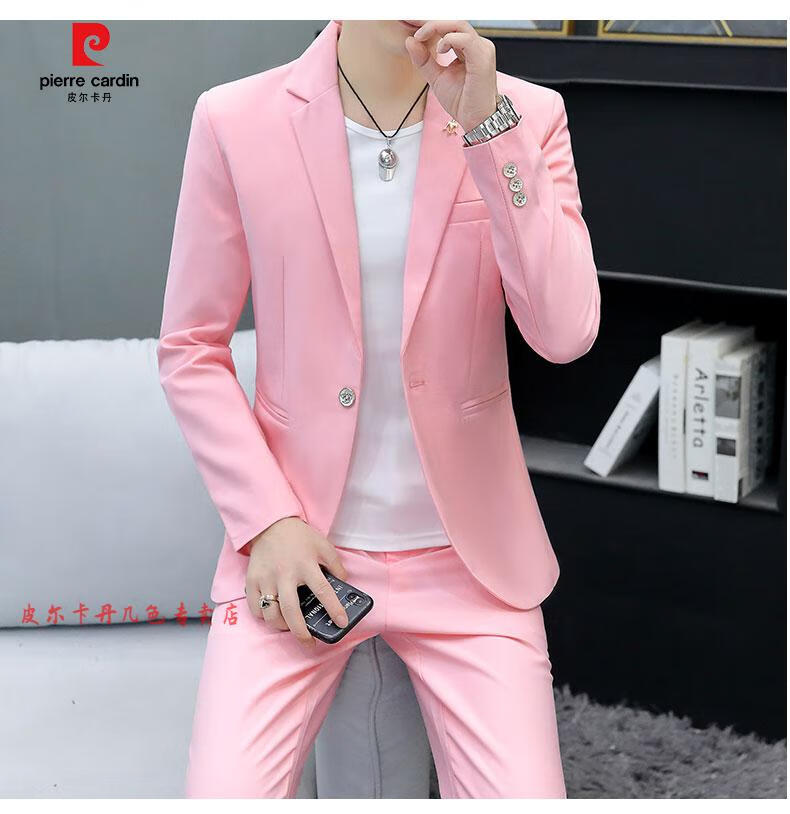 Pierre Cardin Korean style casual spring and autumn suit men's slim business formal suit groom handsome British casual small suit for men white - velvet thickened (three-piece suit - top + pants 4XL 165-175Jin Jin equals 0.5 kg