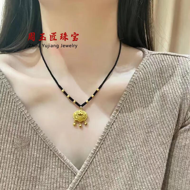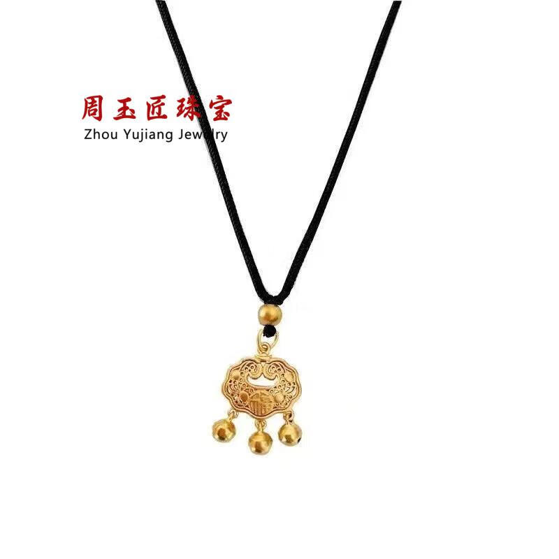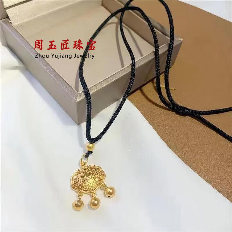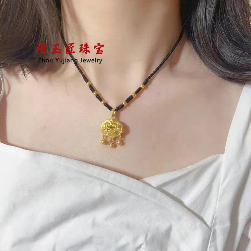 K gold safe lock 18k gold pendant women's braided rope 3D hard gold longevity lock black rope necklace festival black braided rope + gold lock