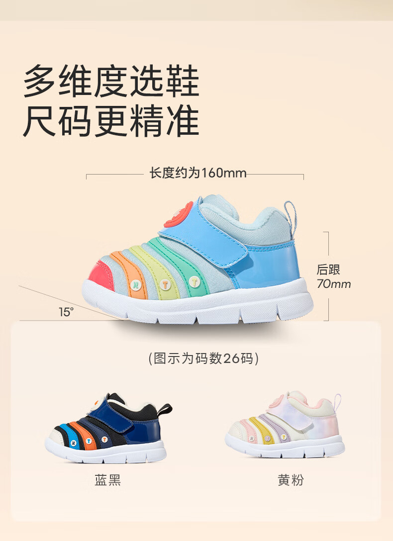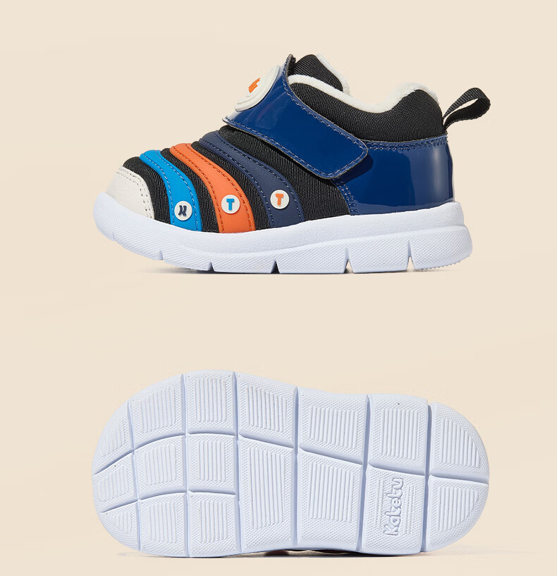 Carter Rabbit Caterpillar Children's Shoes Autumn and Winter Plus Velvet Children's Sports Shoes Soft Sole Kindergarten 1-3 Years Old Toddler Shoes Non-Slip Casual Shoes Beige Blue 24 Inner Length 14.5cm Foot Length 13.6-14.2