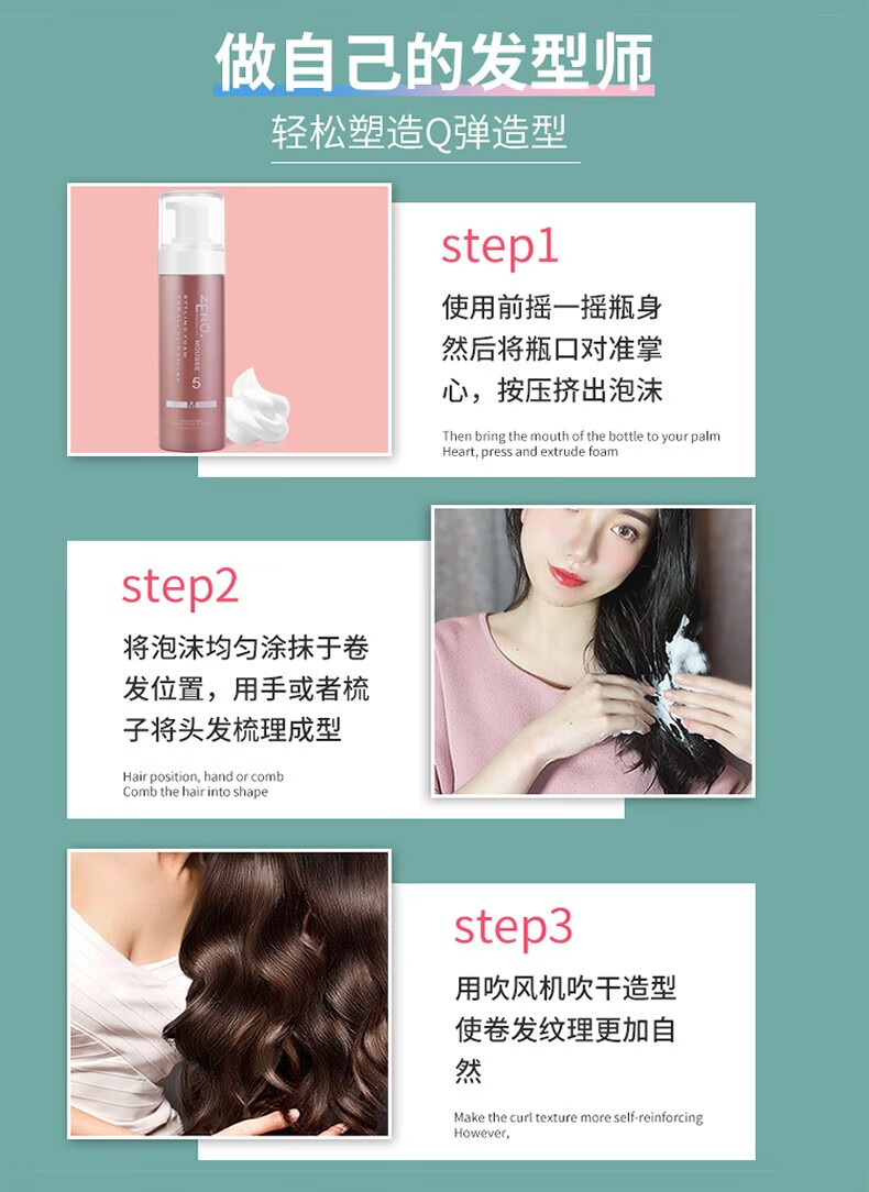 Coix Styling Foam Hair Wax Elastin Moisturizing and Fluffy French Perm Bubble Mousse Styling Women's Curly Hair Coix Foam Hair Wax 215ml