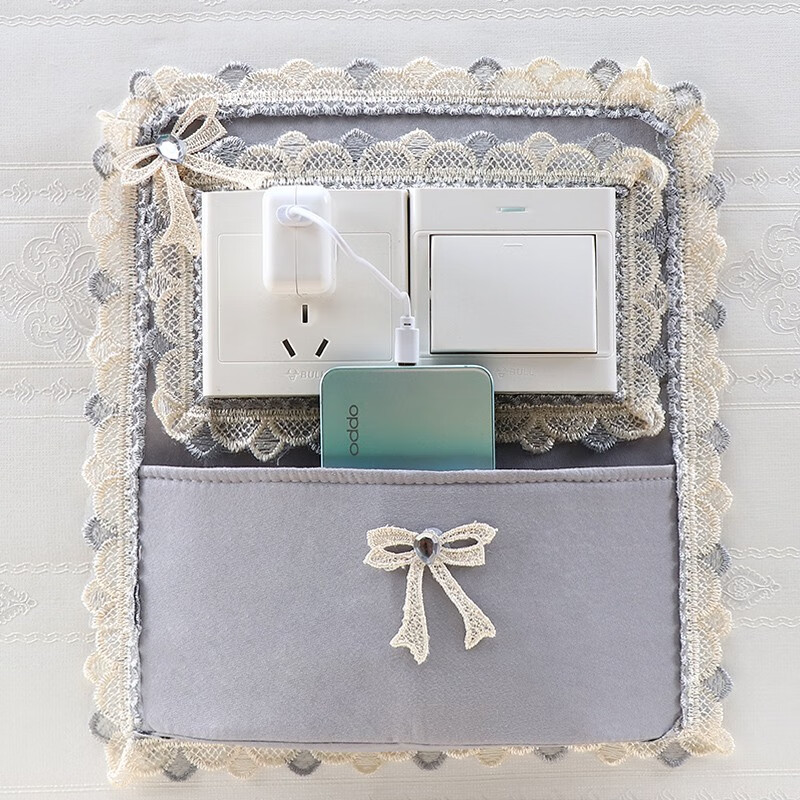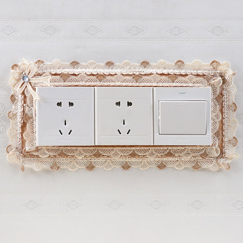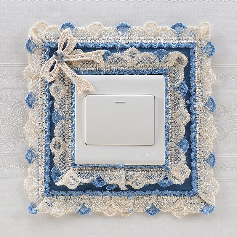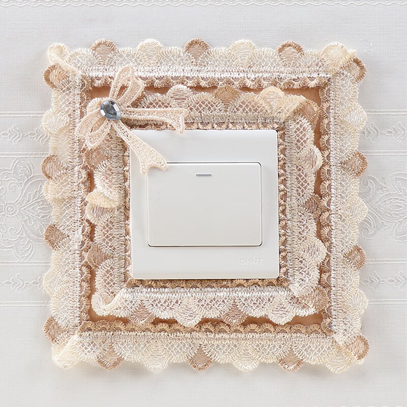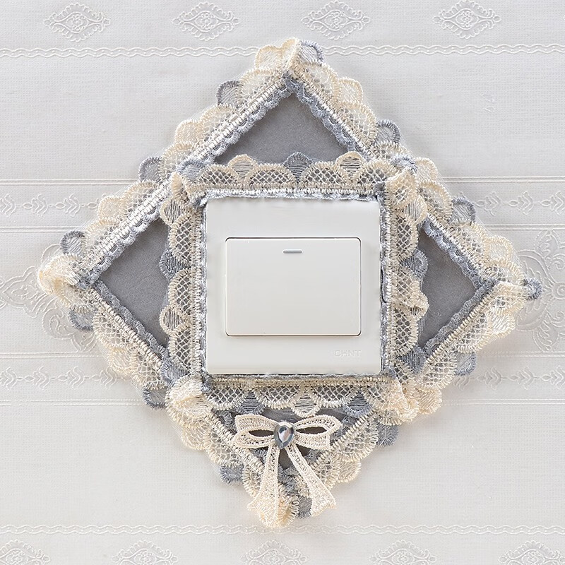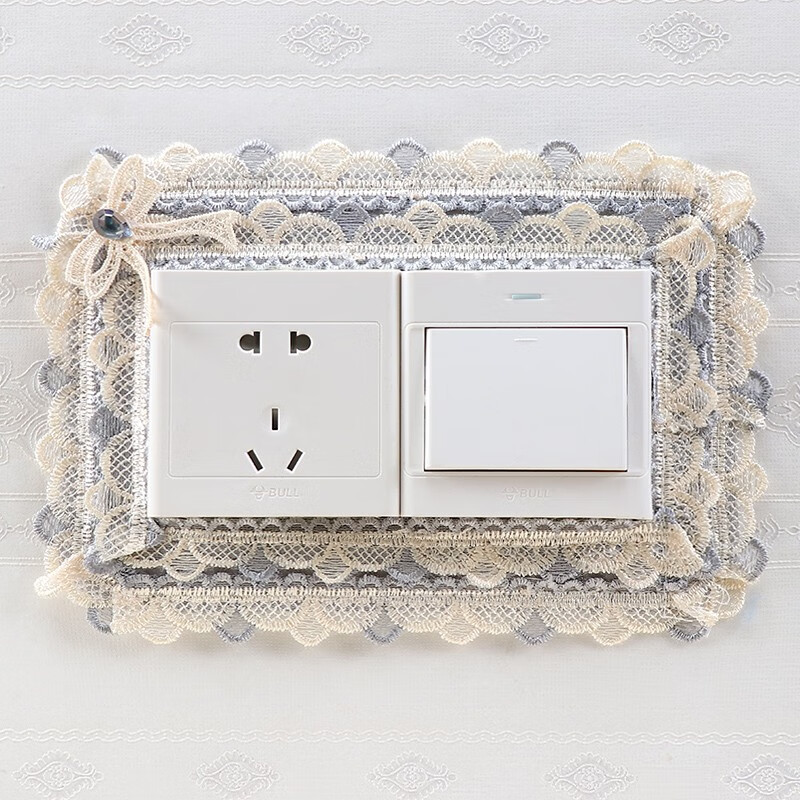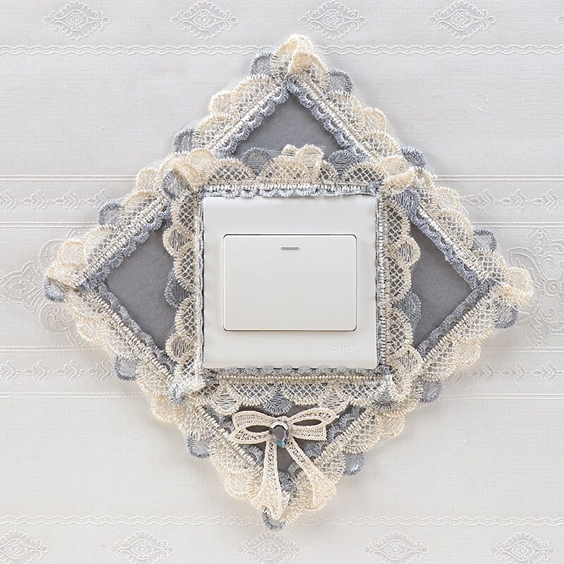 Ping Rongce switch protective cover switch frame cover wall decoration wall sticker switch sticker socket protective cover fabric lace flower gray square