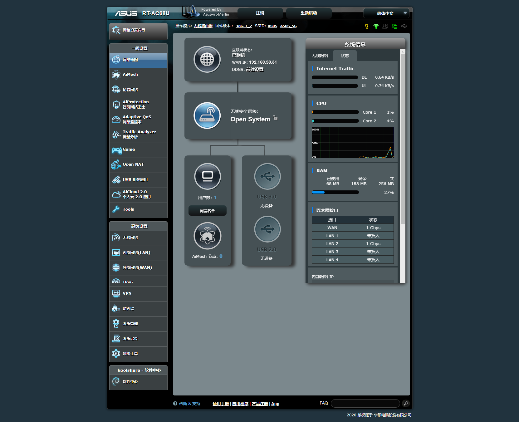 ASUS RT-68U dual-band Gigabit through-the-wall high-speed wifi6 broadband RT-AX68U RT-AX68U