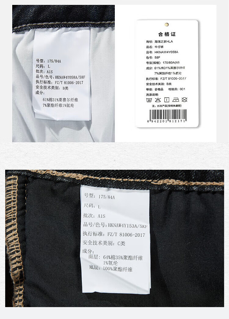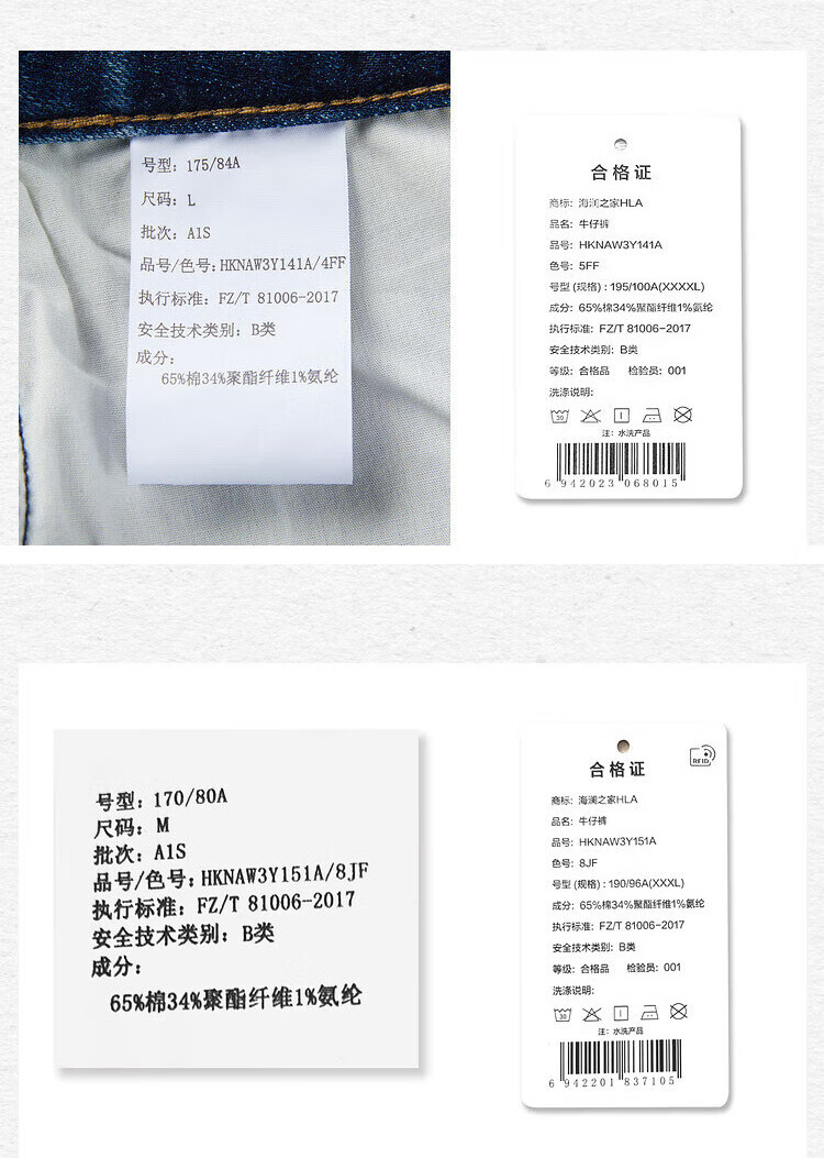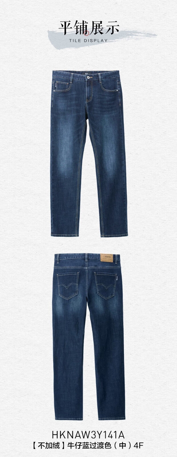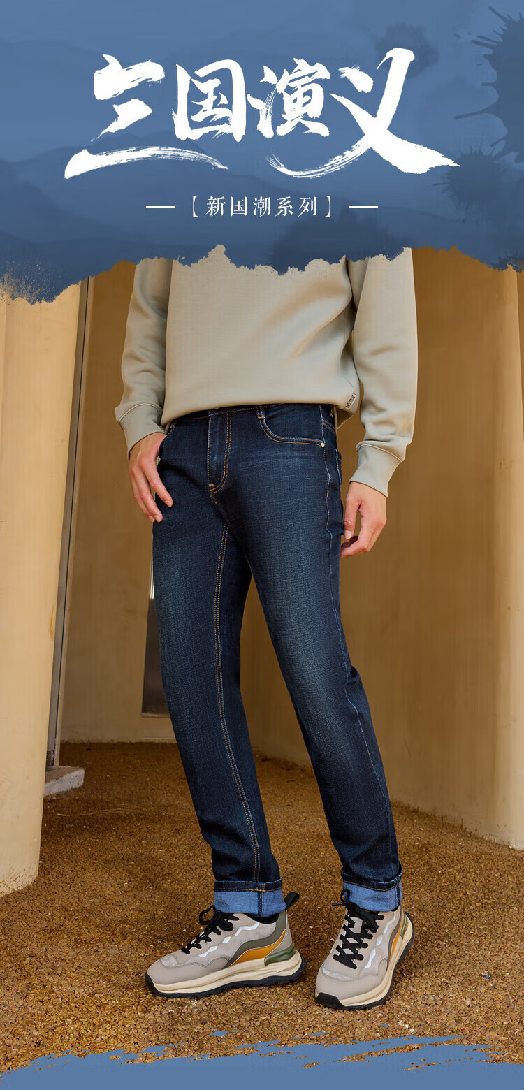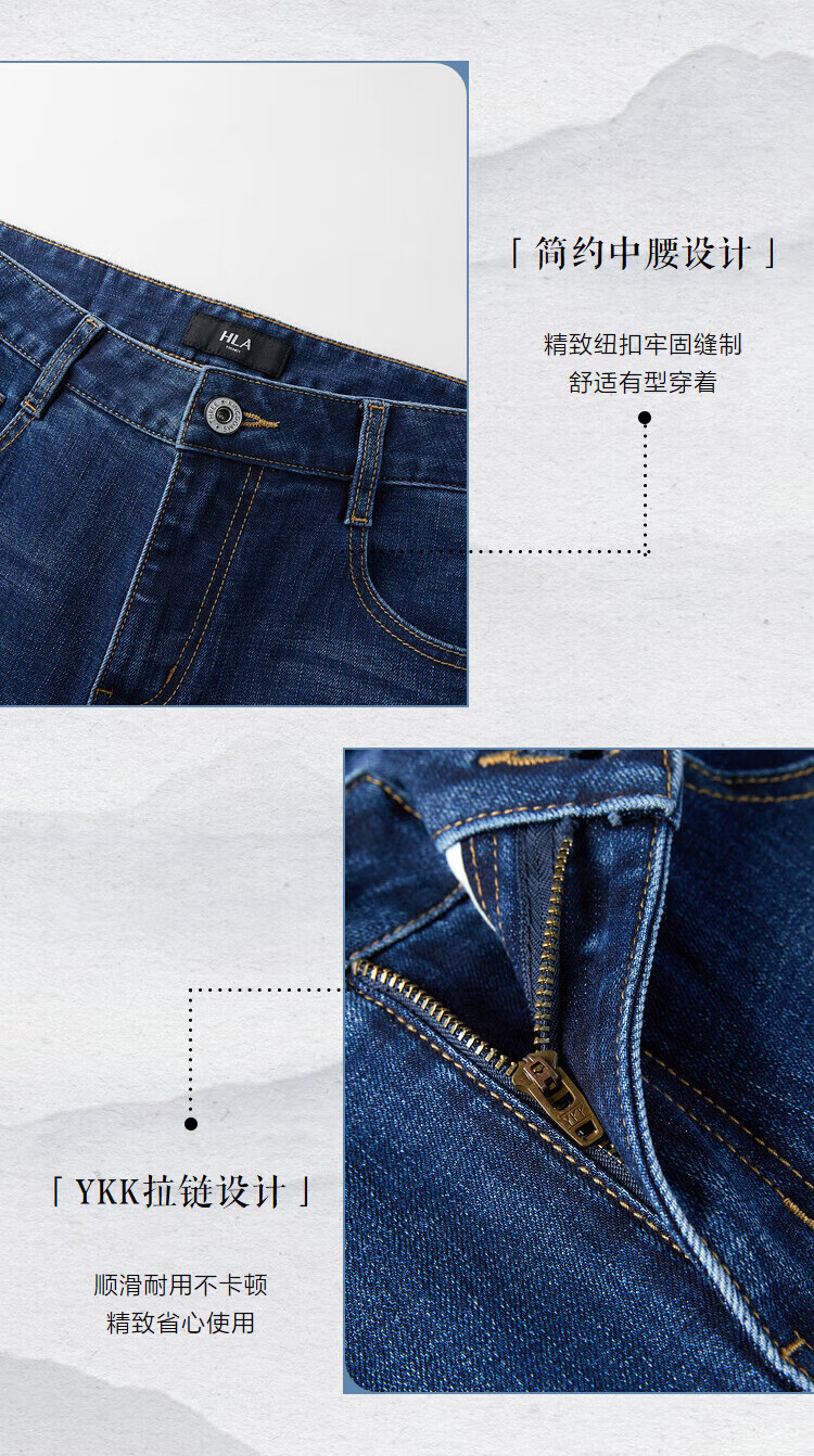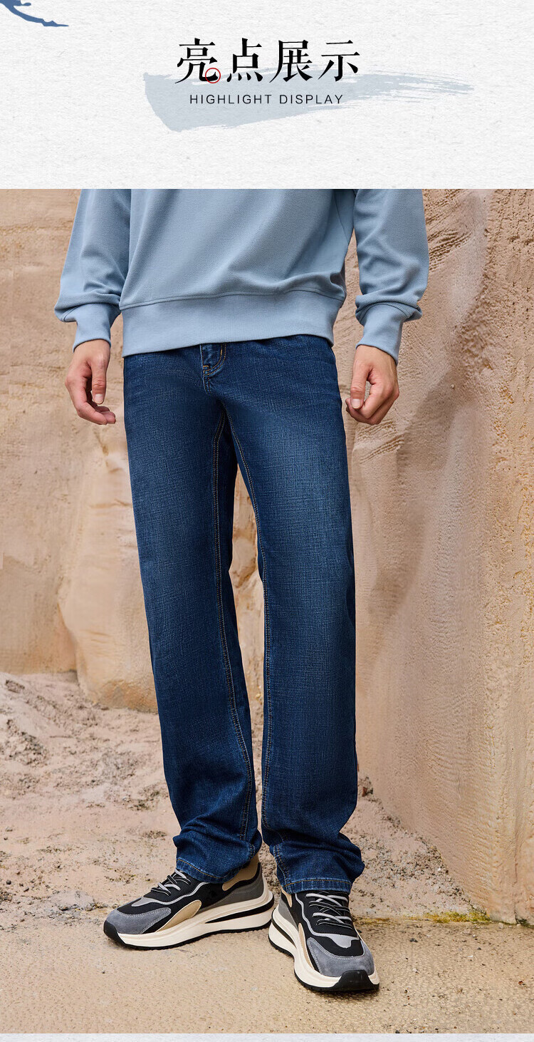 HLA Hai Lan House Jeans Men's Romance of the Three Kingdoms Large Size Straight Pants Five Pocket Pants Men Denim Blue Transition Color (Medium) 4F XL 180/88A (XL) Recommended 72-78kg