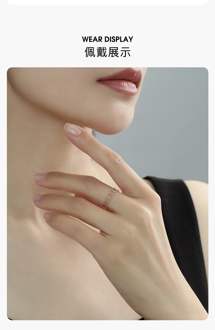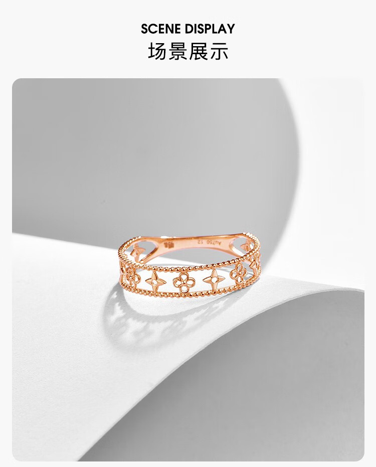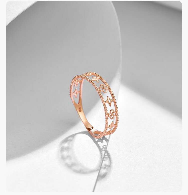 Ming brand jewelry 18K gold color gold rose gold four-leaf clover cross flower ring gift for women CSM0097 pricing about 0.80-1.03 grams size 15