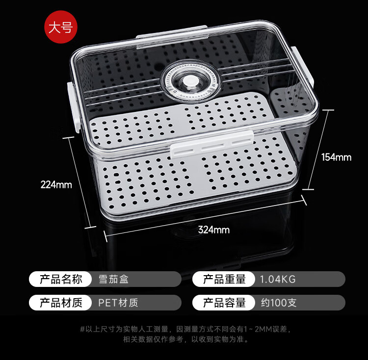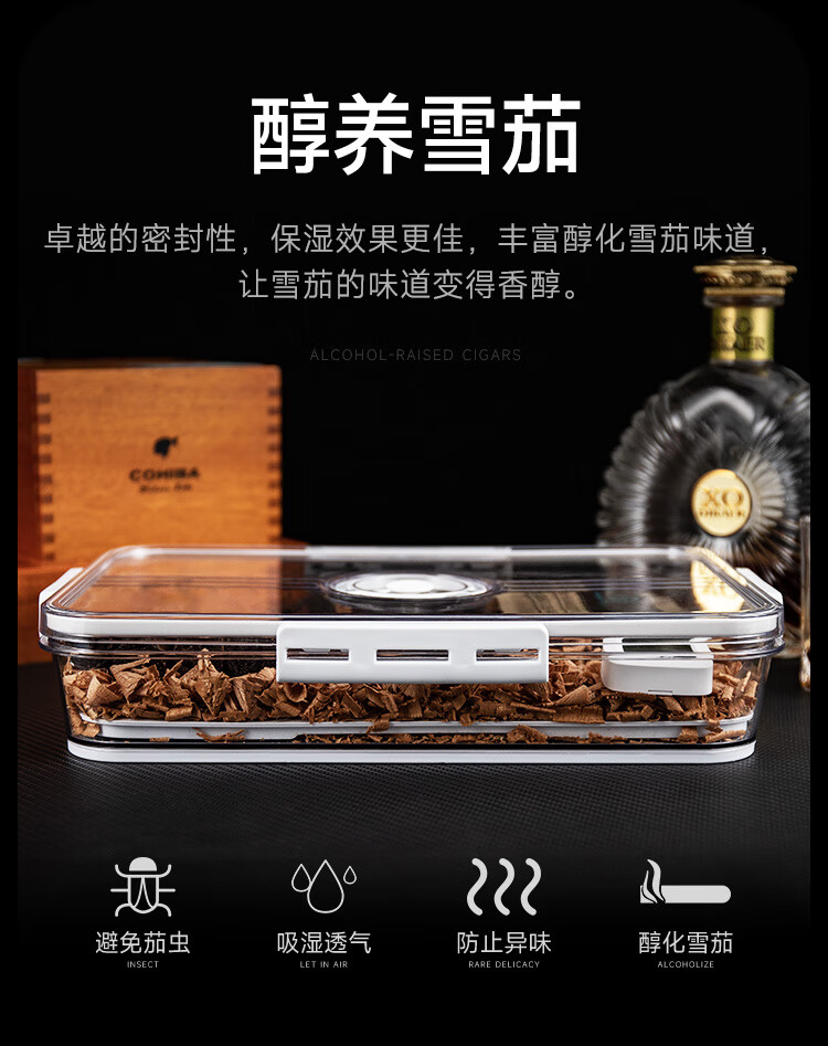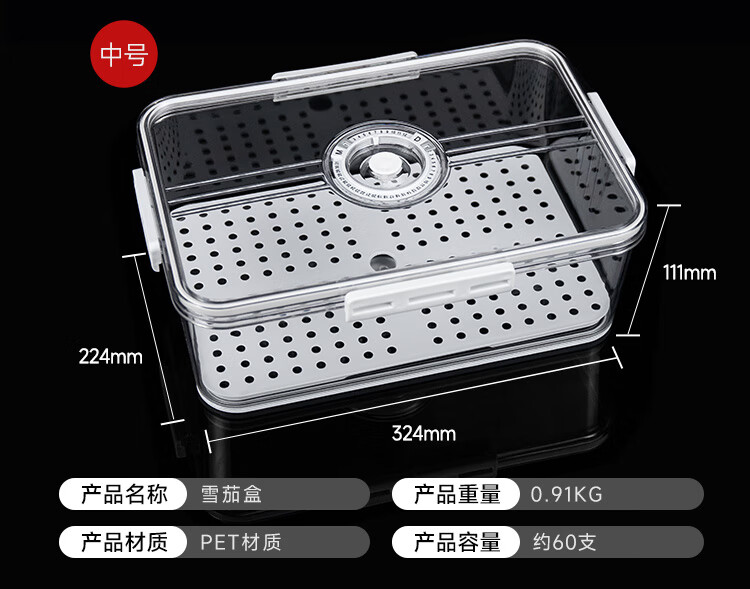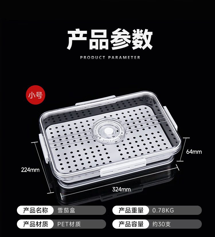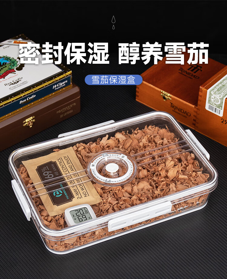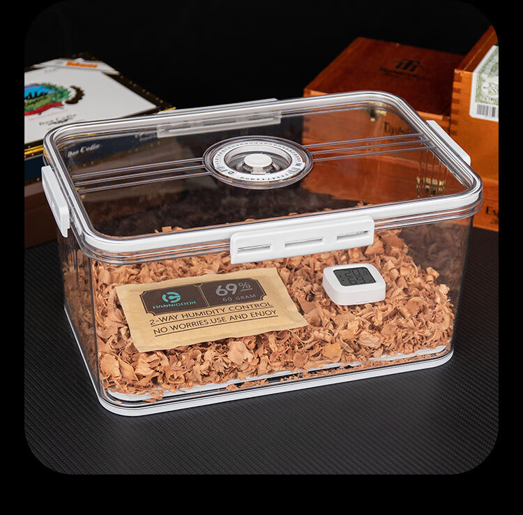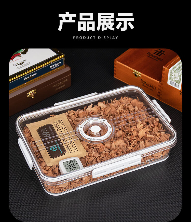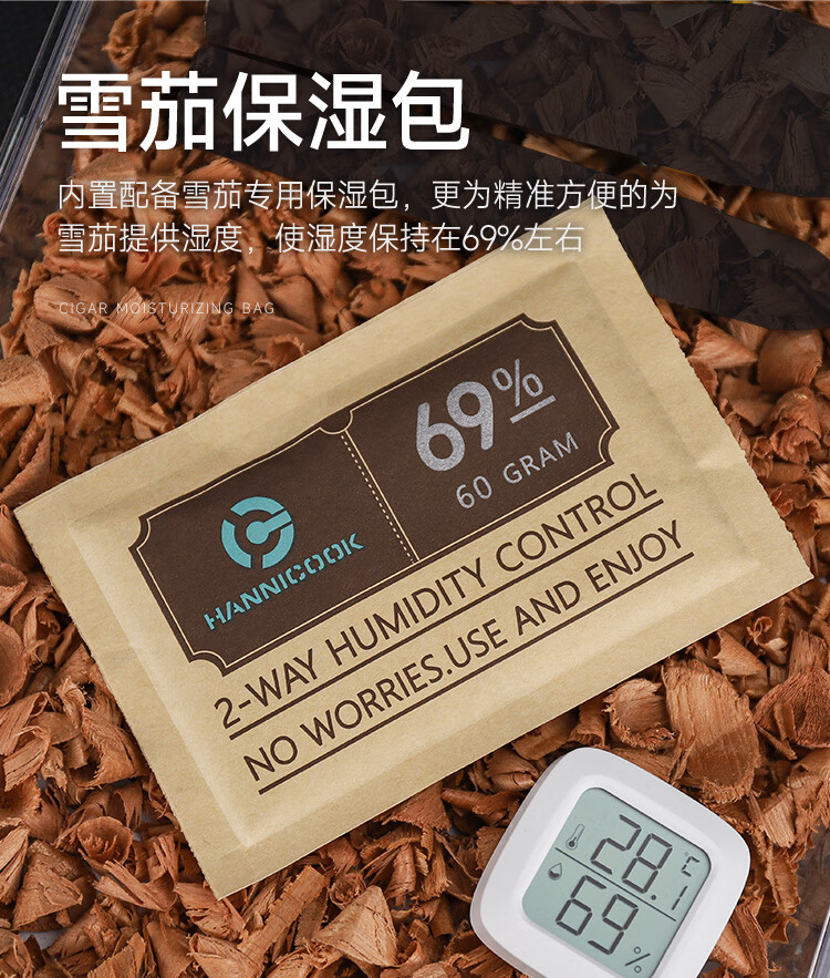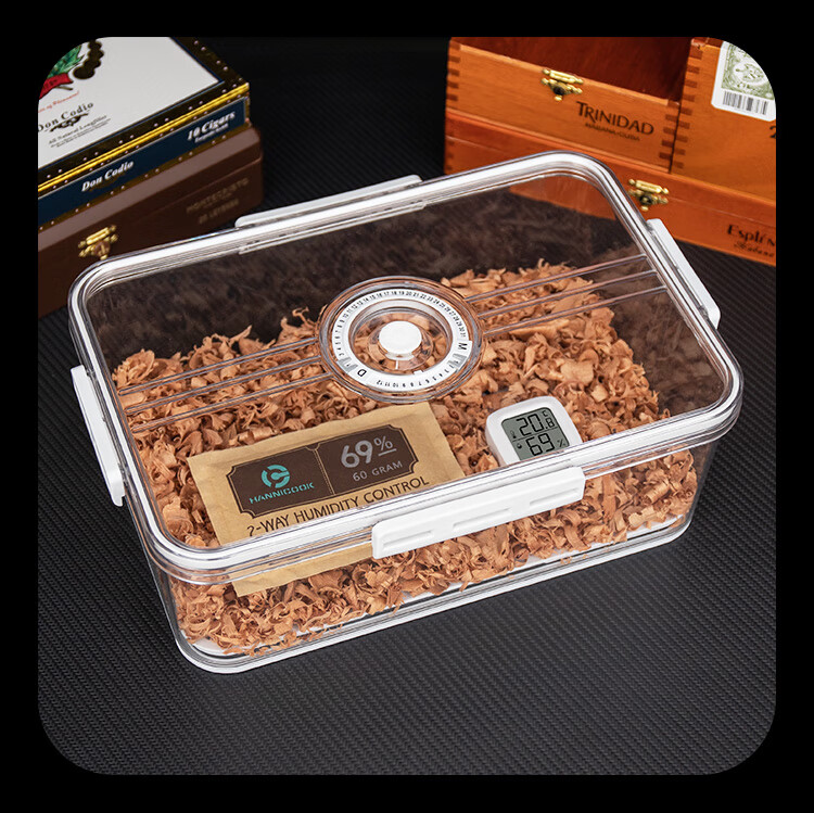 汉尼库克 雪茄盒 古巴雪茄保湿盒便携式雪茄柜密封乐扣盒雪松木透明雪茄箱 小号