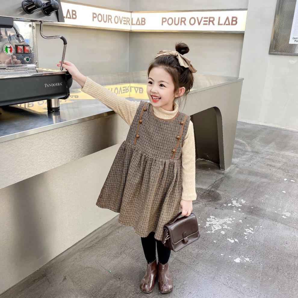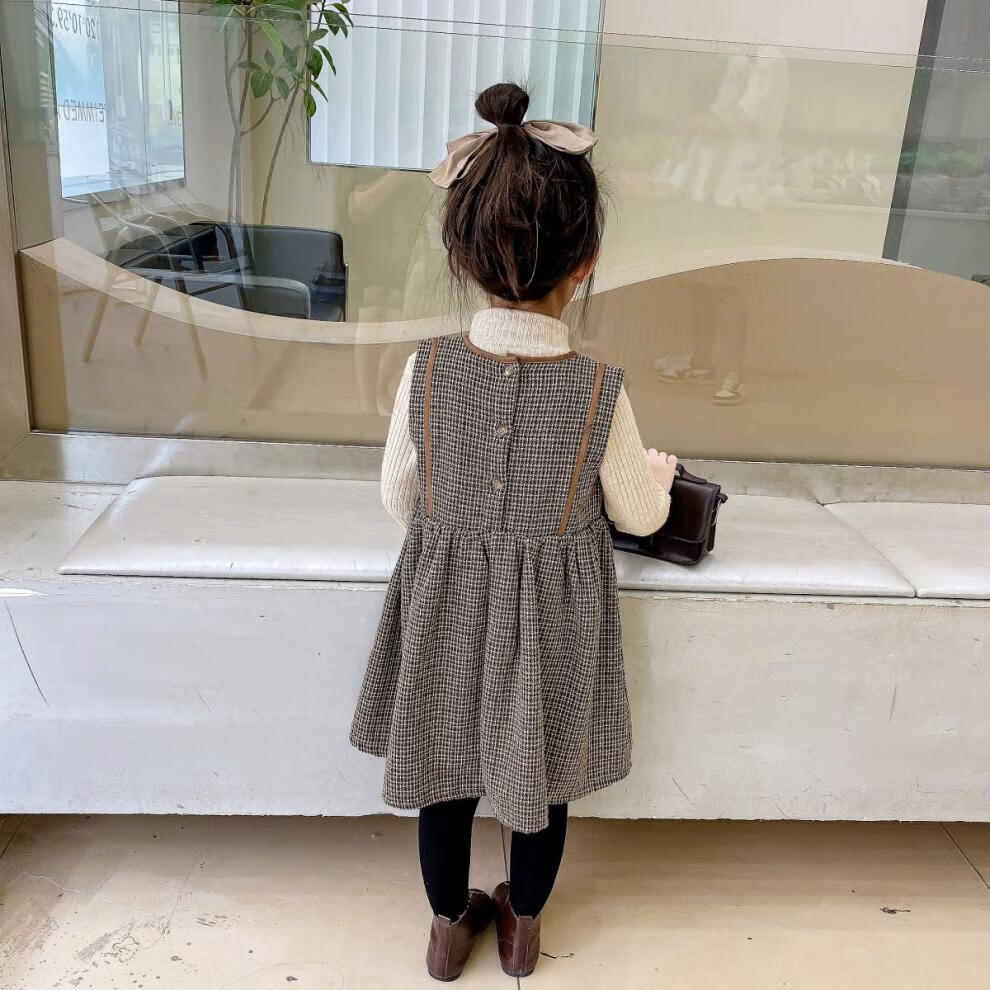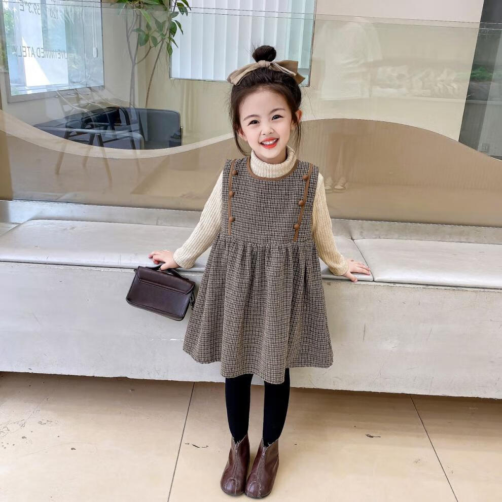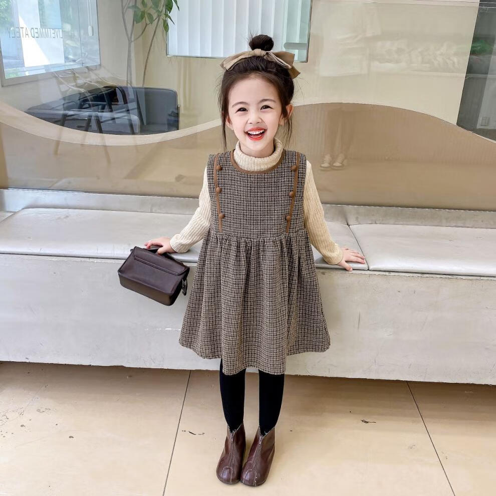 G.duck2025 New Children's Clothing Autumn and Winter Girls' Velvet Plaid Suspender Skirt Female Baby Western-style Tank Top Skirt Children's Skirt Skirt + Sweater Suit 120 cm Recommended height is about 110 cm