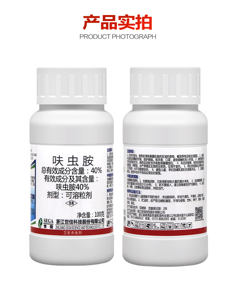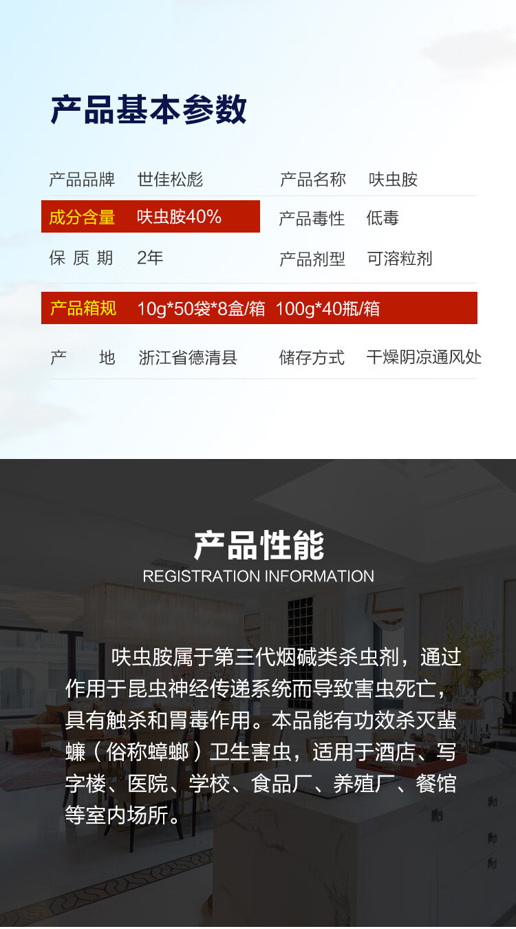 世佳松彪40%呋虫胺 蟑螂蜚蠊家用室内蟑螂药卫生害虫杀虫剂 100克/瓶 送喷壶量勺 可喷200㎡