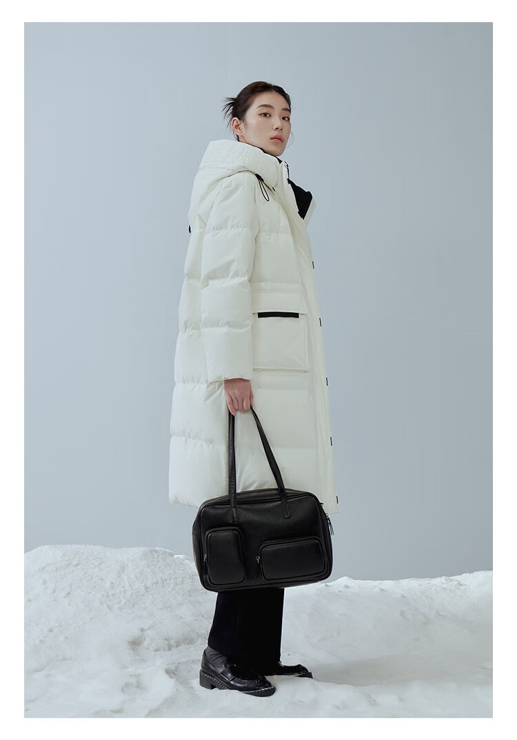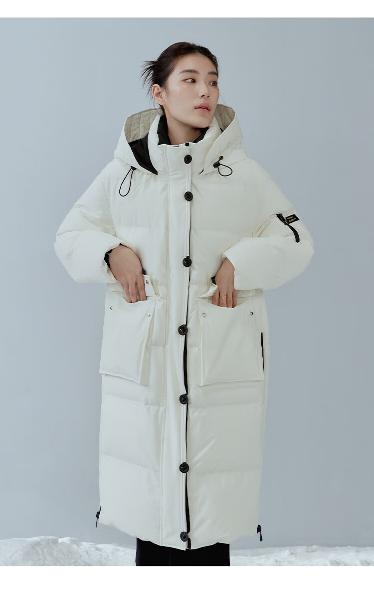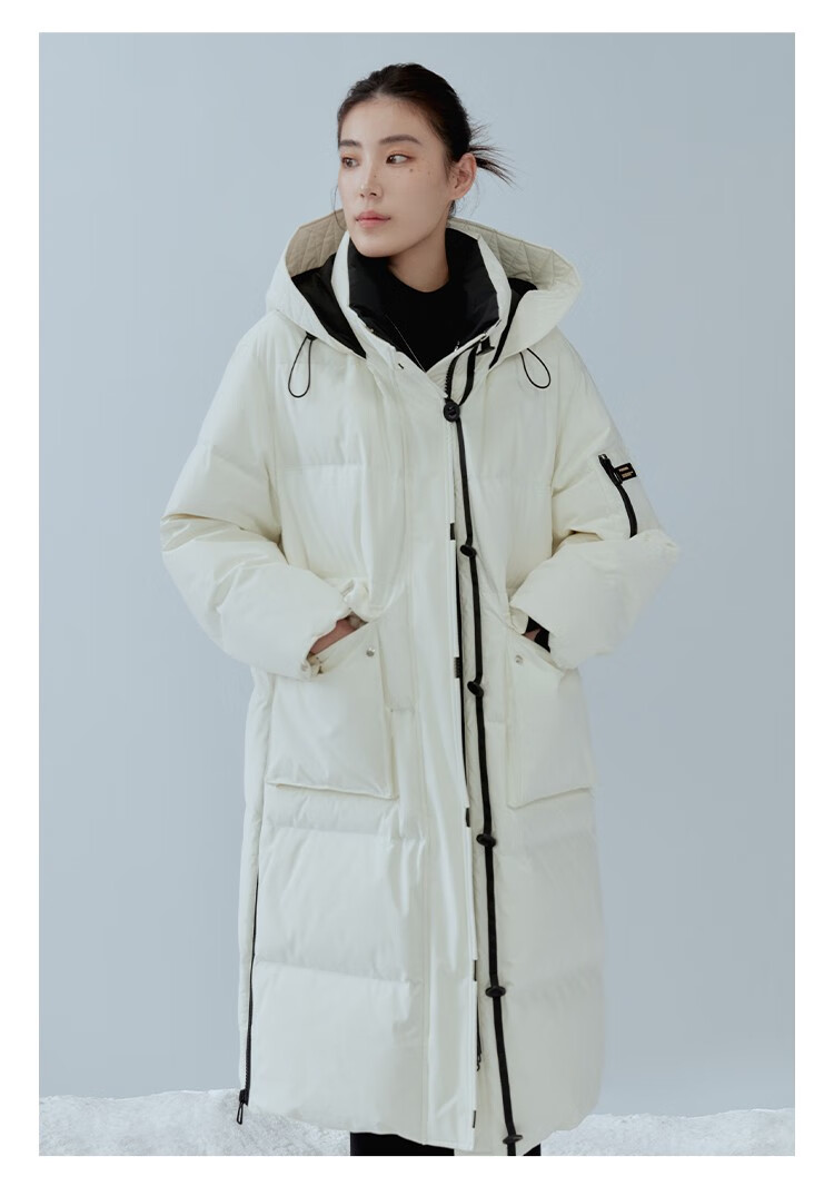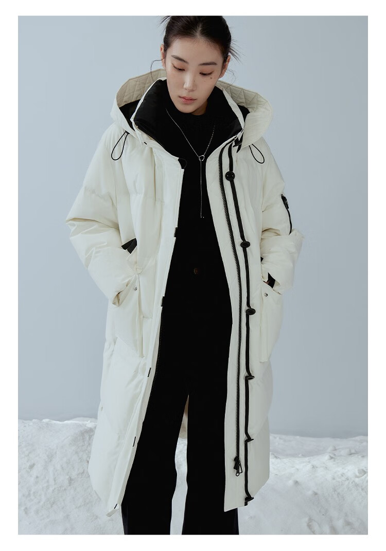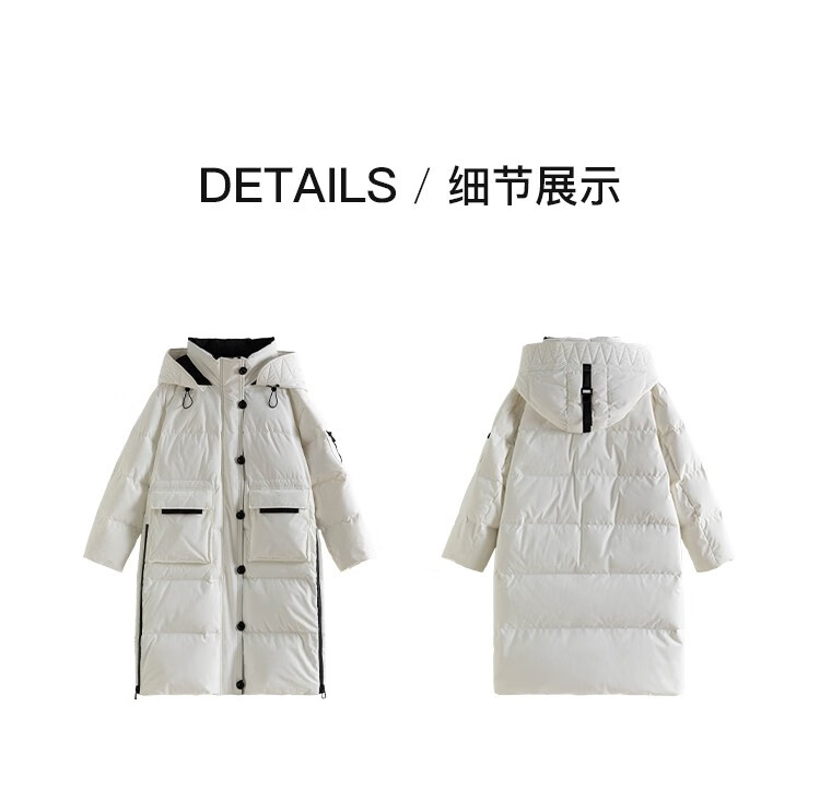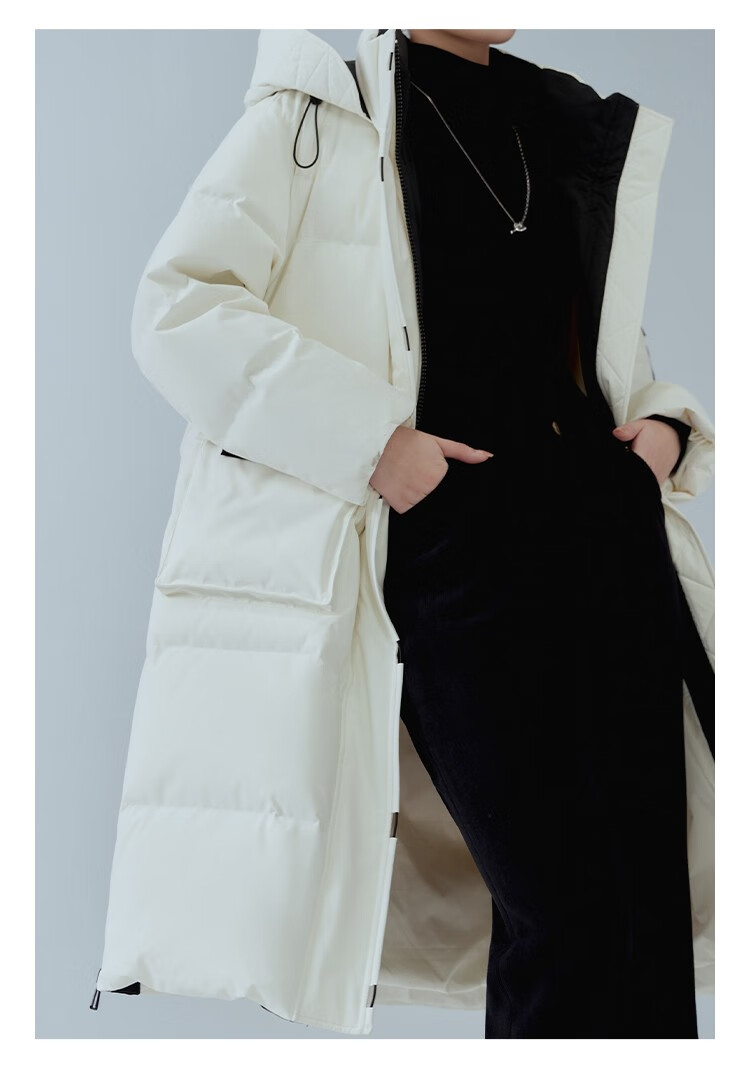 Single bundle large size women's mid-length age-reducing stand collar hooded down jacket for women with slightly fat mm winter new warm down jacket black and white M (size 1)