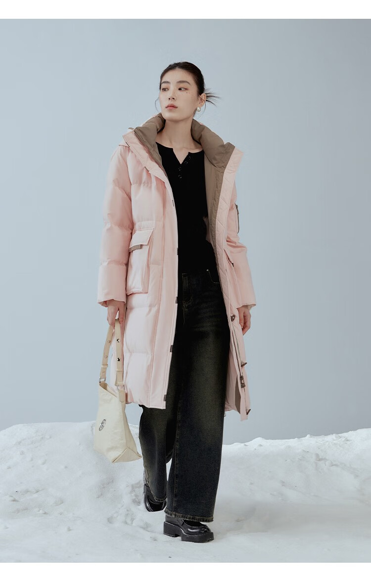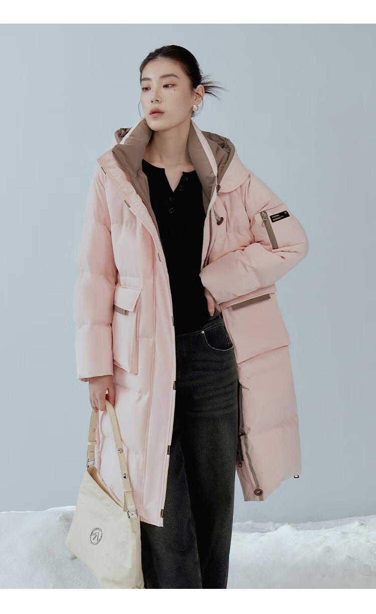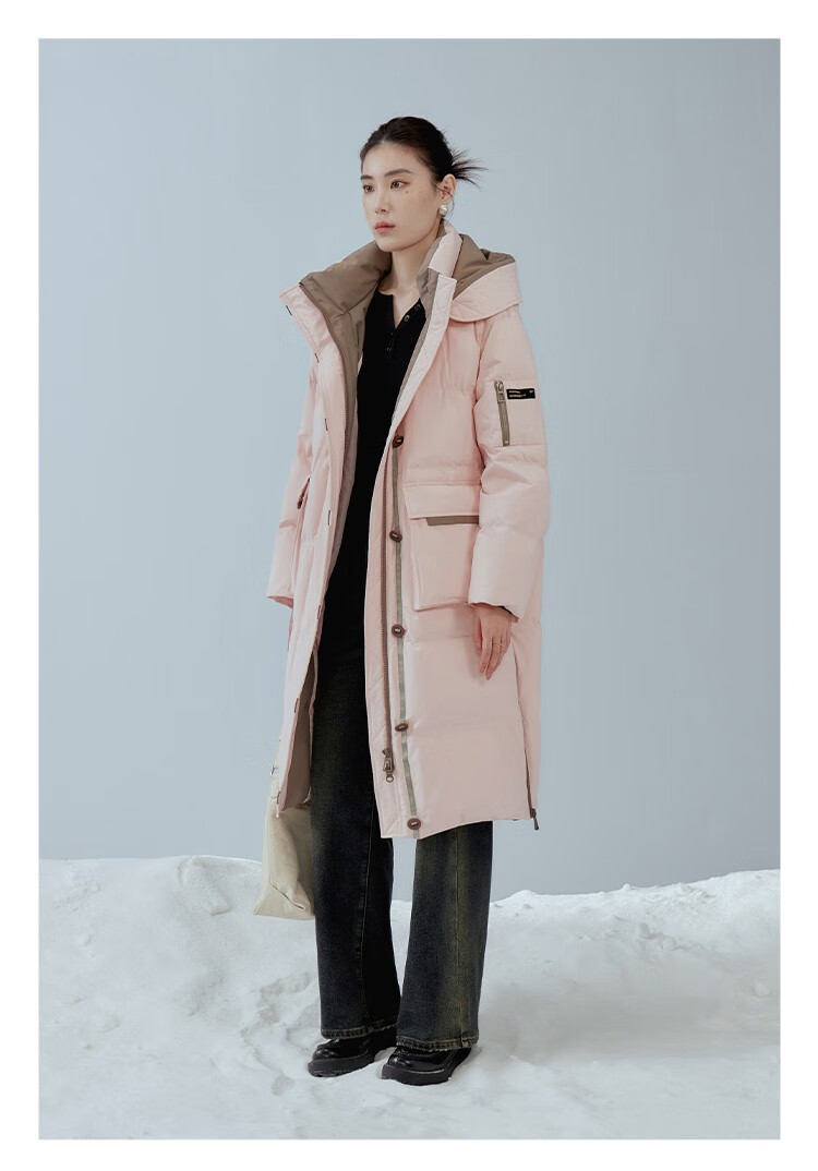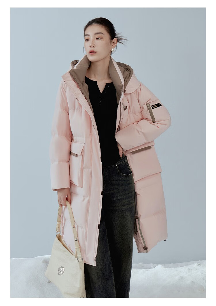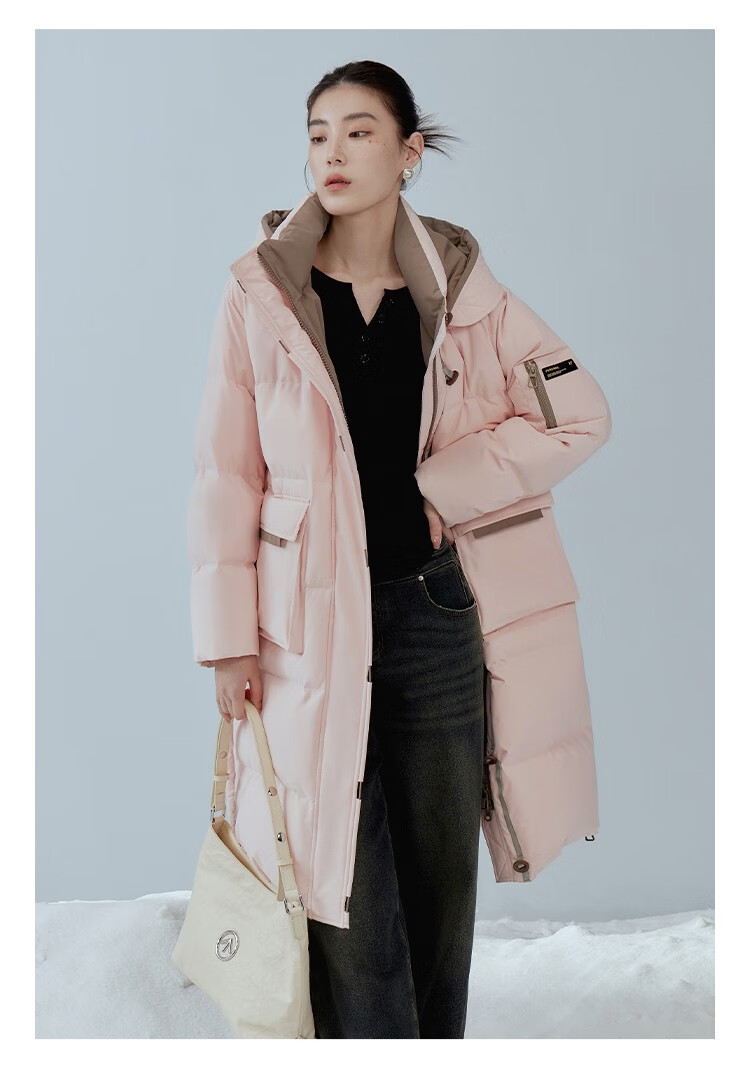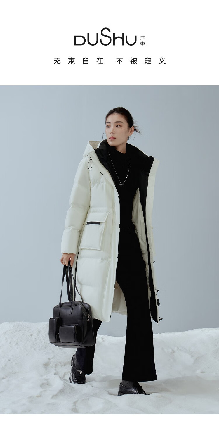 Single bundle large size women's mid-length age-reducing stand collar hooded down jacket for women with slightly fat mm winter new warm down jacket black and white M (size 1)