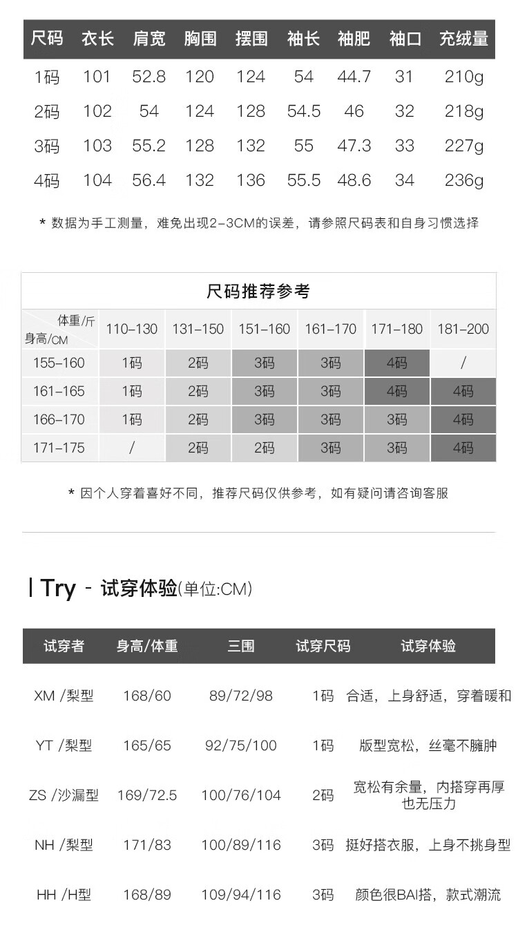 China (cm) 160-165/84-86 165-170 / 88-90 167-172 / 92-96 168-173 / 98-102 170-176 / 106-110