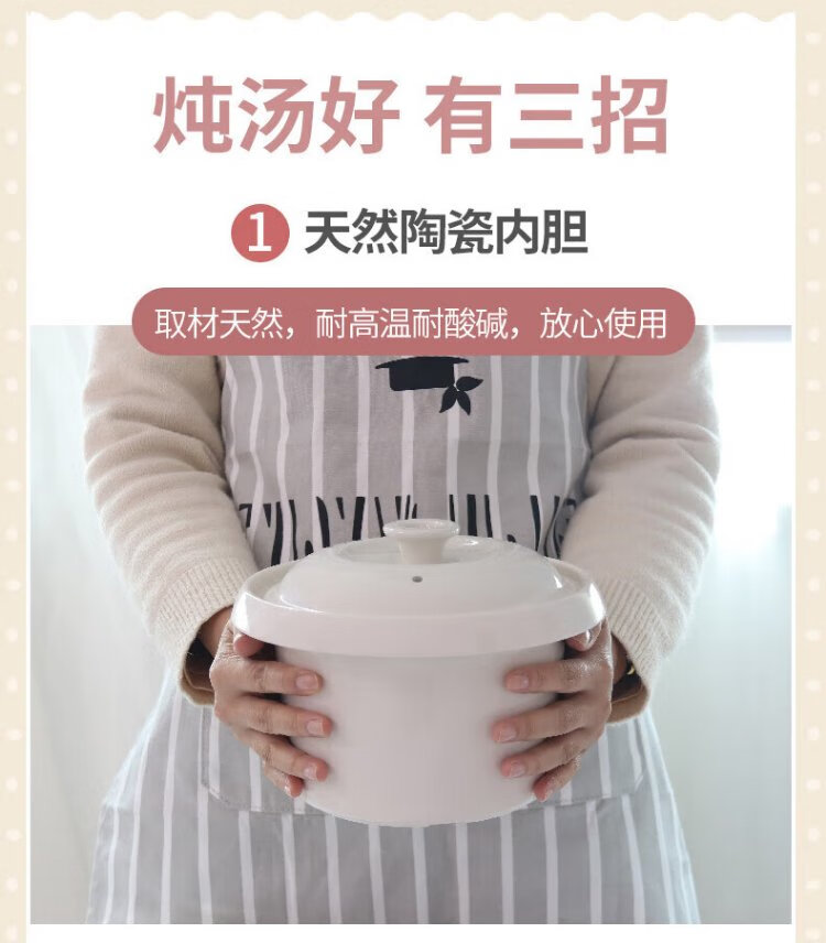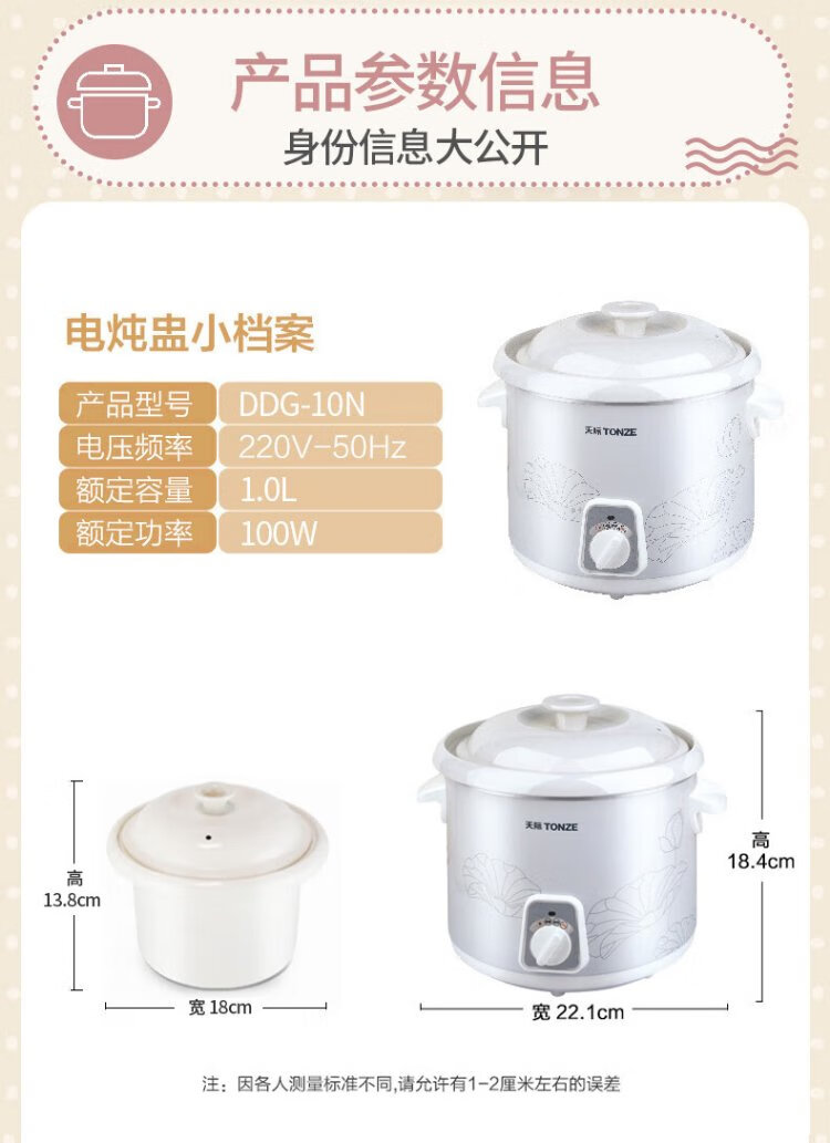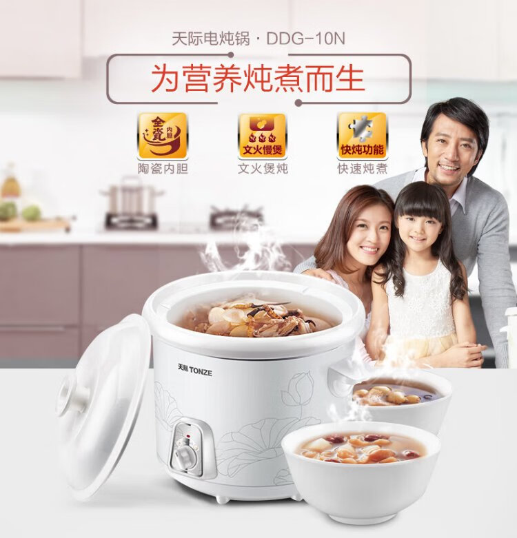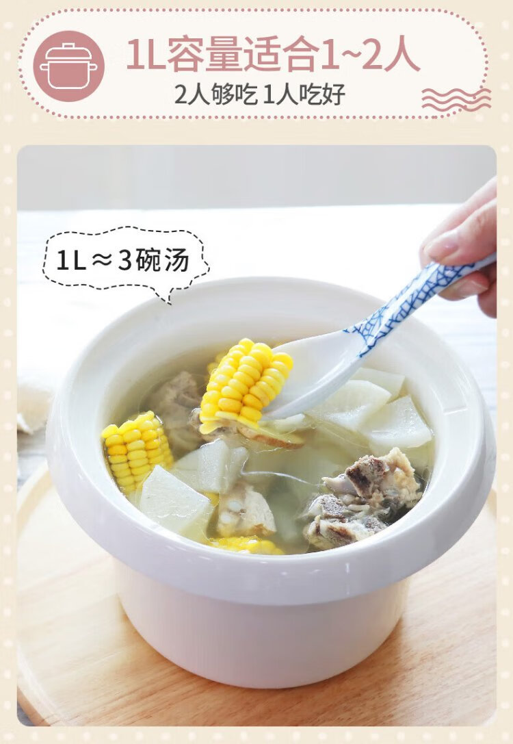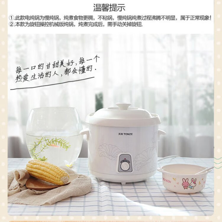 Tianji Electric Stew Pot Ceramic Liner Electric Stew Cup Porridge Pot Porridge Pot Stewing Soup Pot Electric Casserole 1-2-3-4-5 Household Approximately 6 Bowls Recommended for 2-3 People Capacity 2L