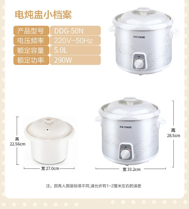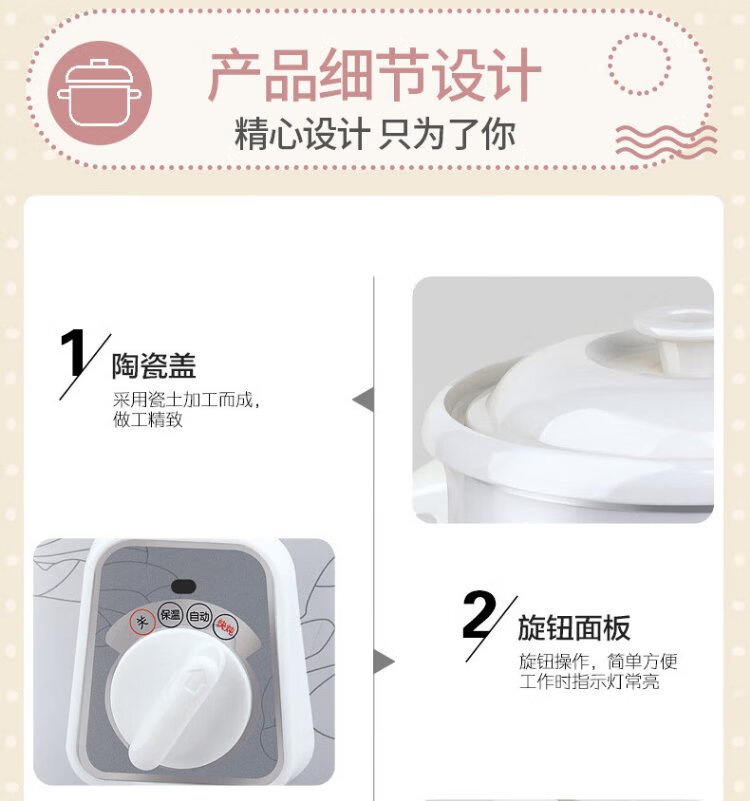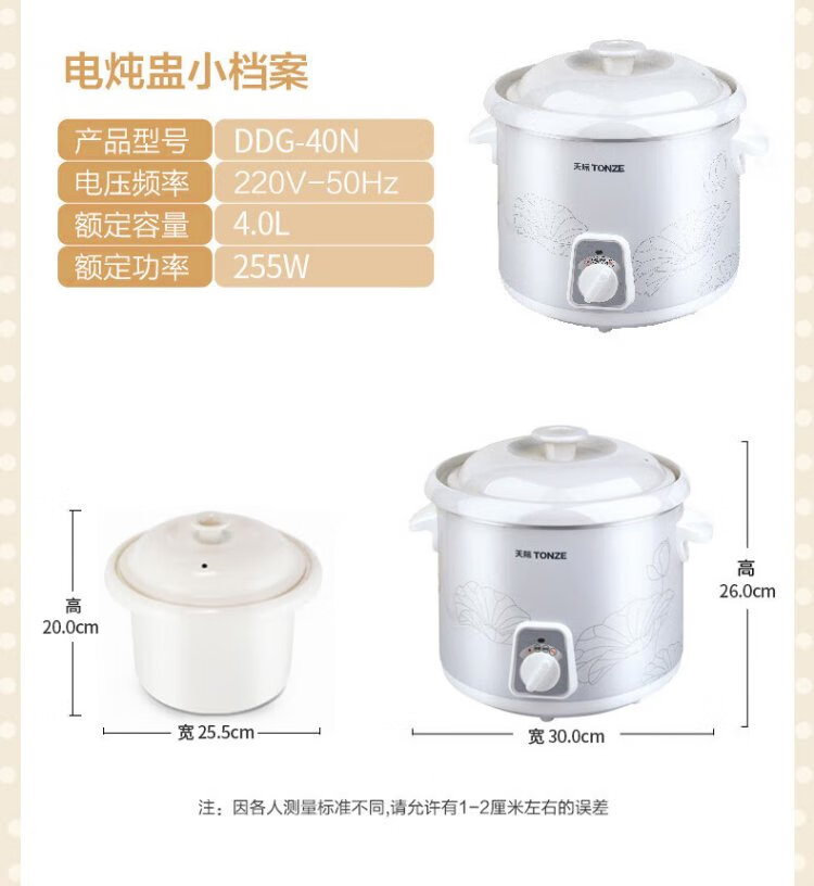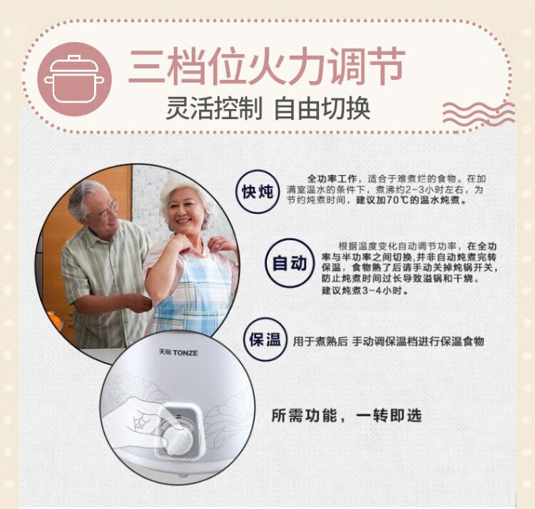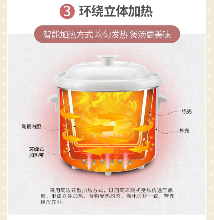Tianji Electric Stew Pot Ceramic Liner Electric Stew Cup Porridge Pot Porridge Pot Stewing Soup Pot Electric Casserole 1-2-3-4-5 Household Approximately 6 Bowls Recommended for 2-3 People Capacity 2L